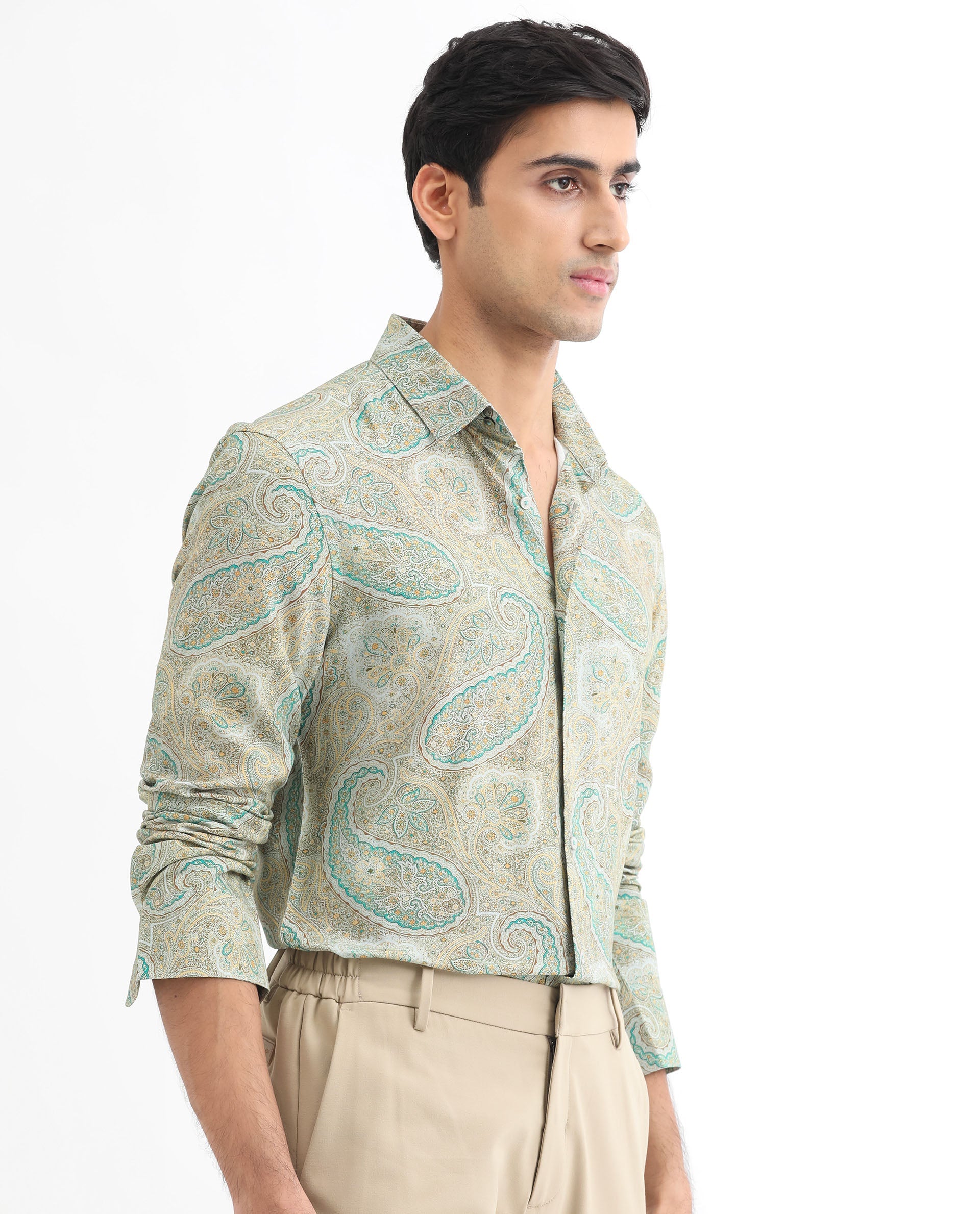 Rare Rabbit Men's Rego Pastel Green Paisley Print Full Sleeves Shirt
