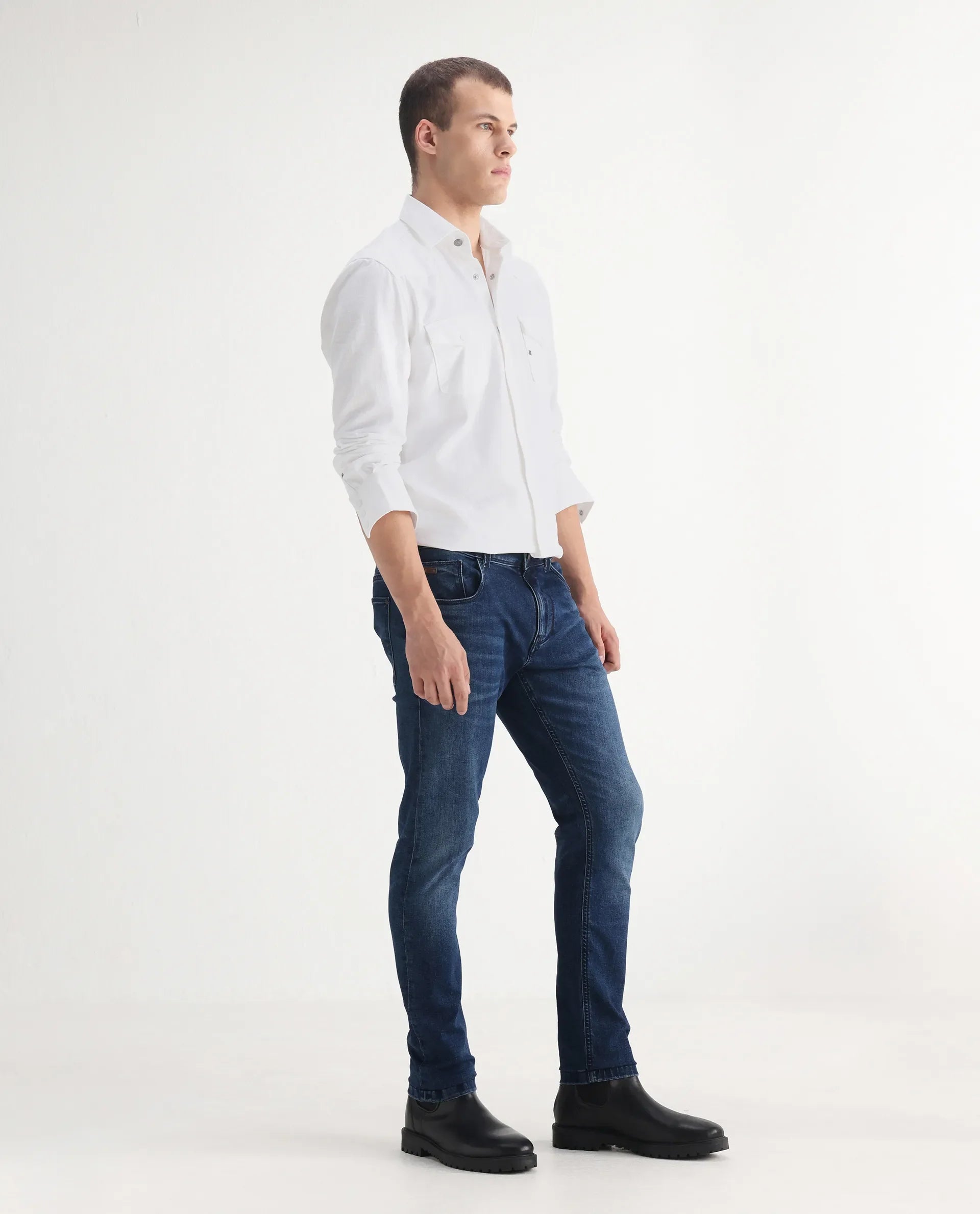 These mid-wash slim-fit jeans offer a clean, modern look that flatters your build. The premium denim with a touch of stretch ensures all-day comfort and freedom of movement. The versatile mid-wash pairs effortlessly with your favorite tees, shirts, or jackets. From workdays to weekend adventures, these jeans are your go-to for a sharp and confident look.