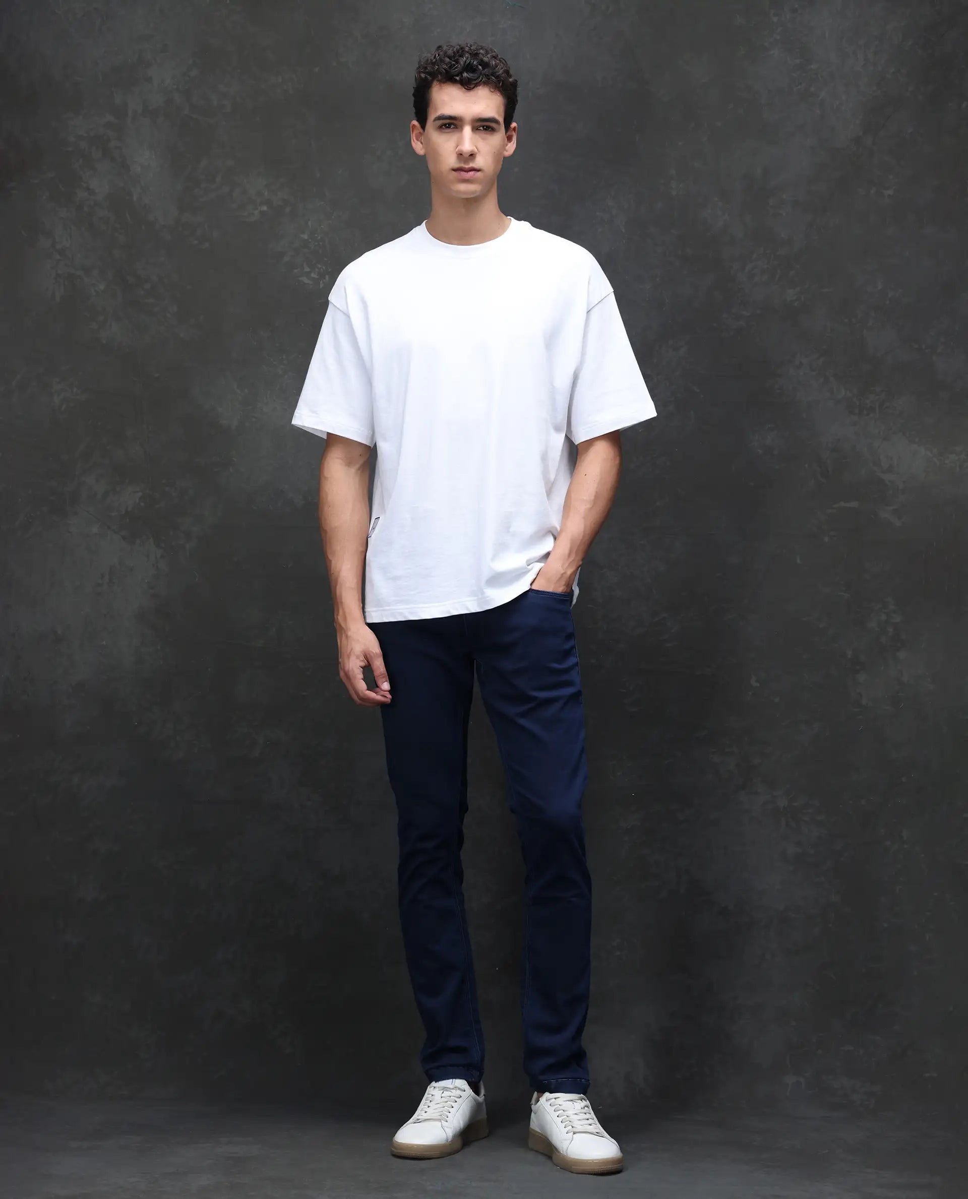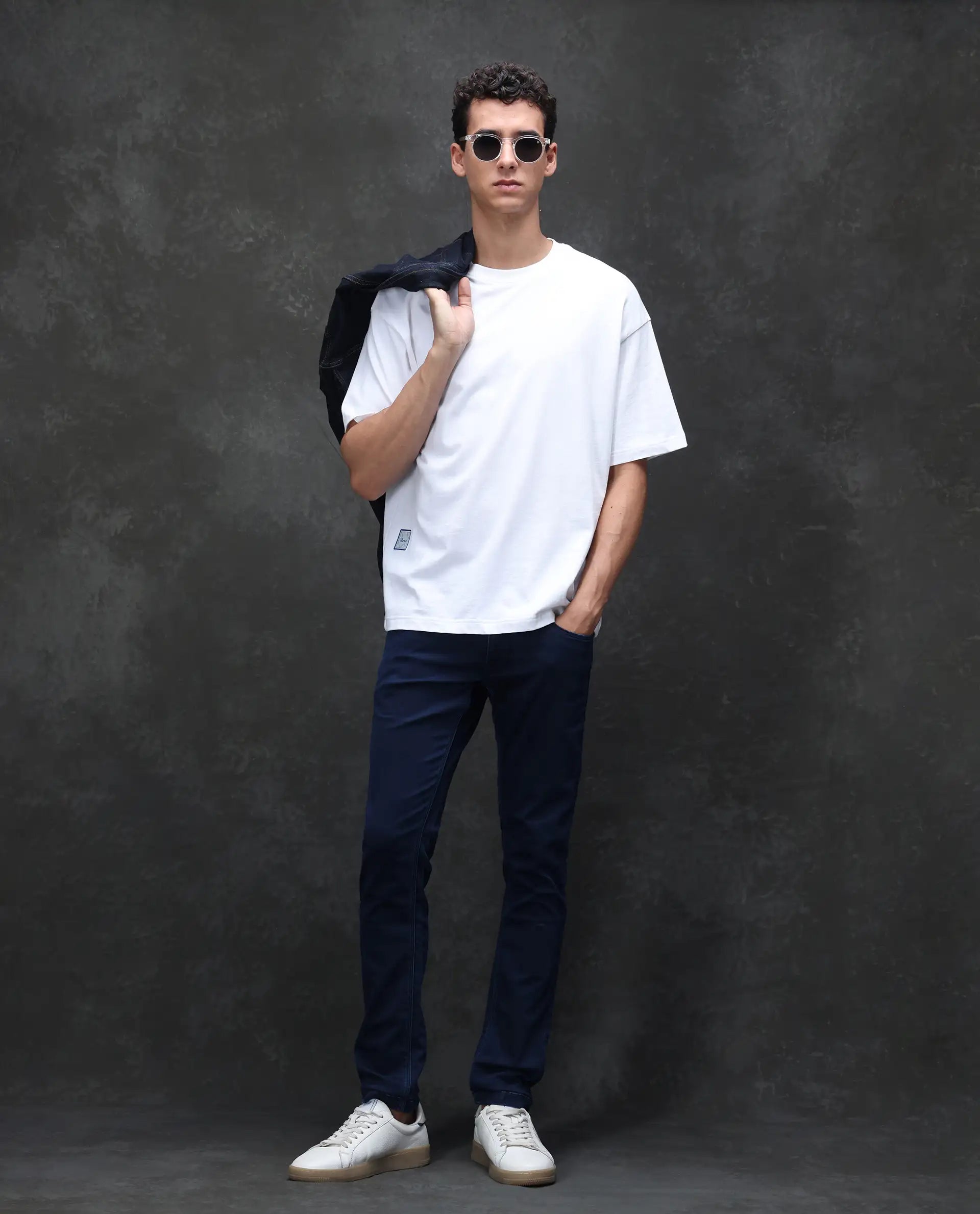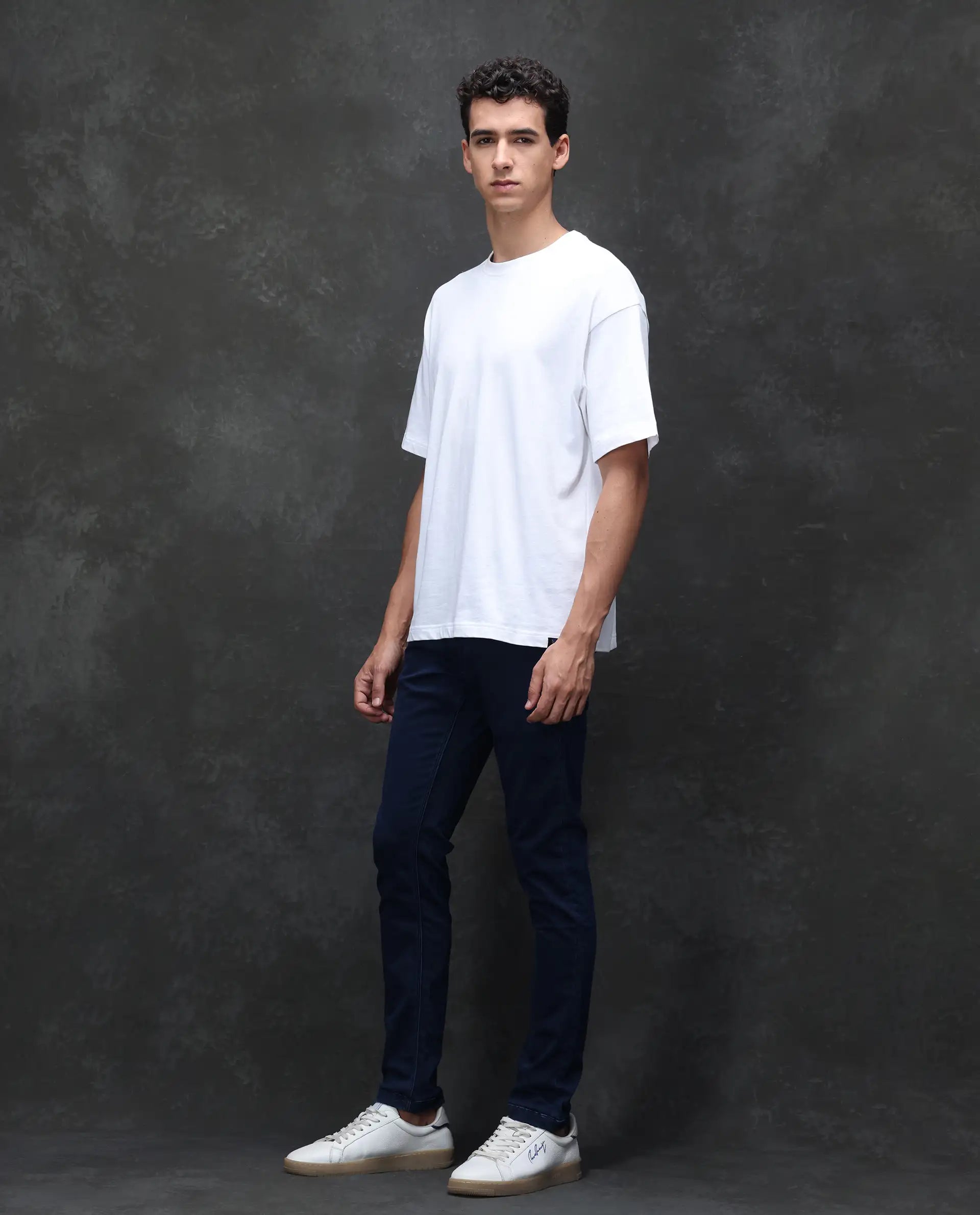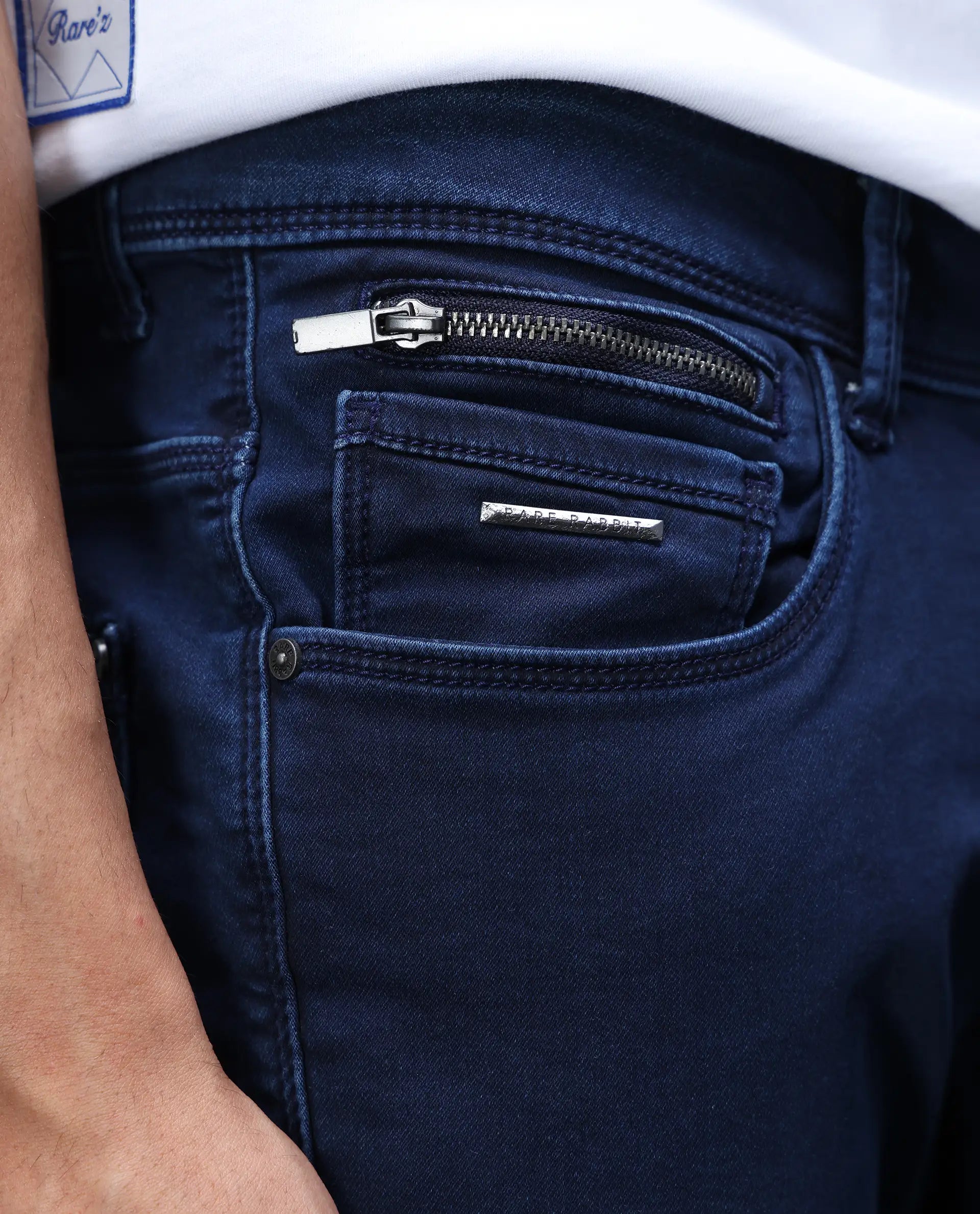 Rare Rabbit Men's Radley Blue Dark Wash Mid-Rise Regular Fit Jeans