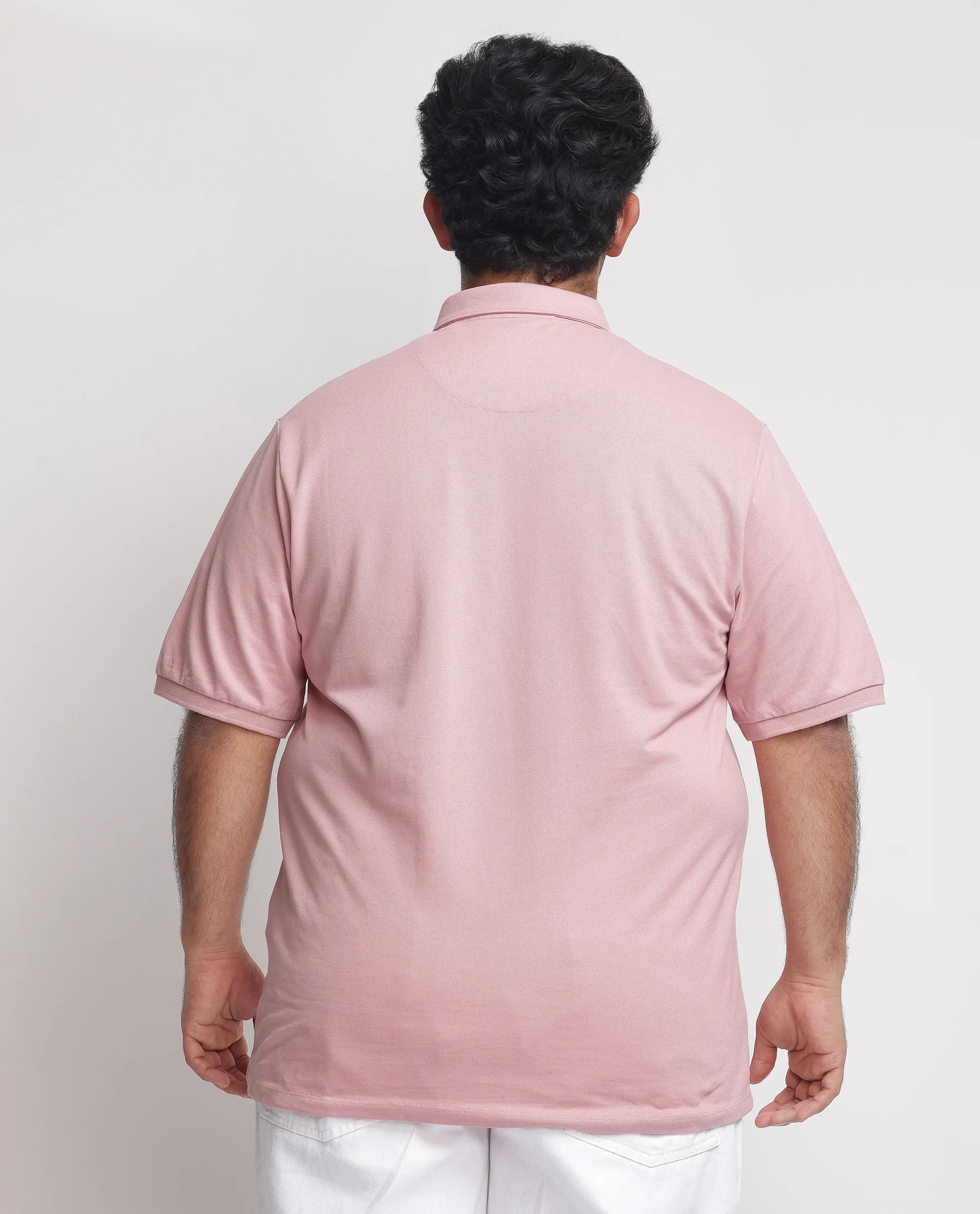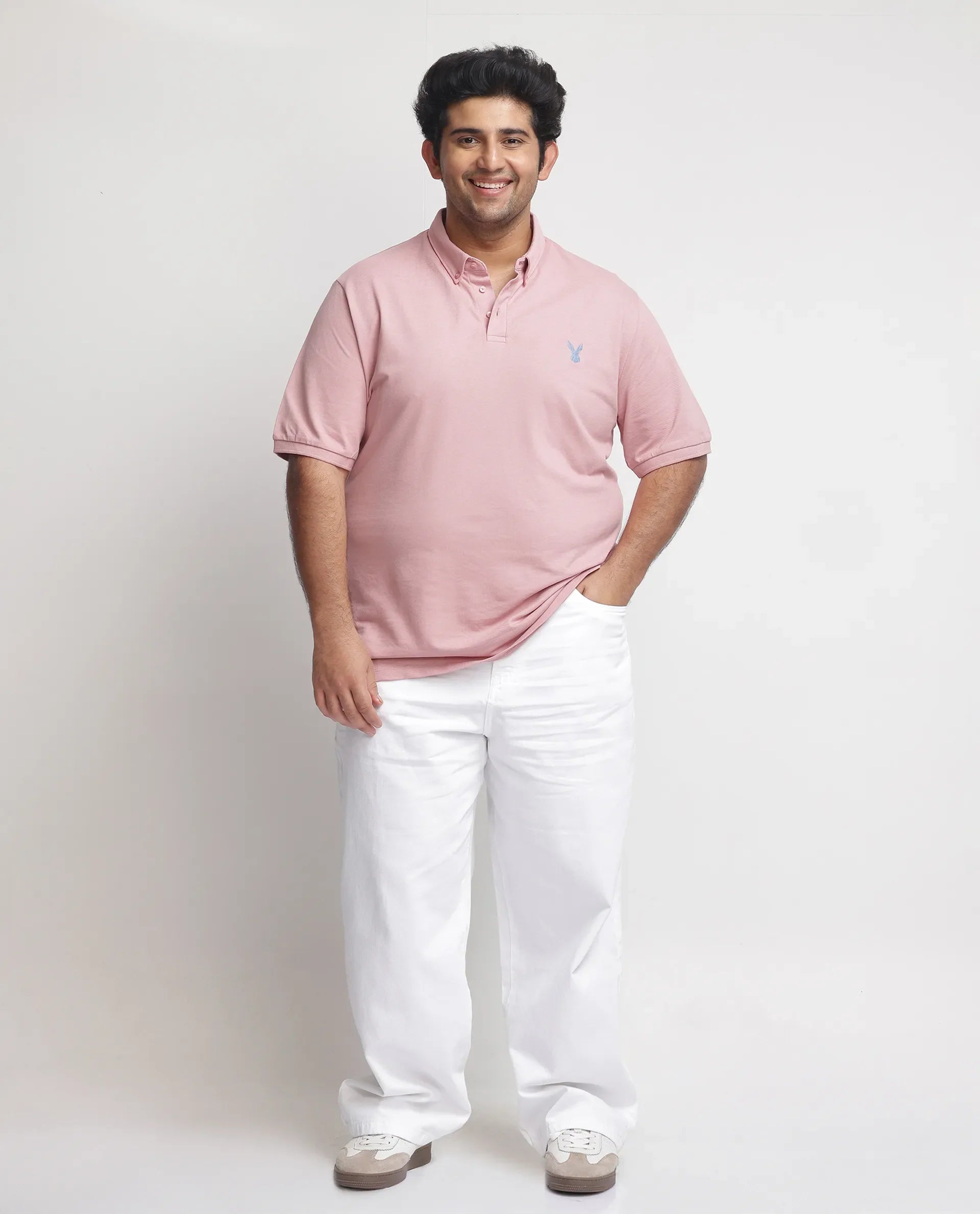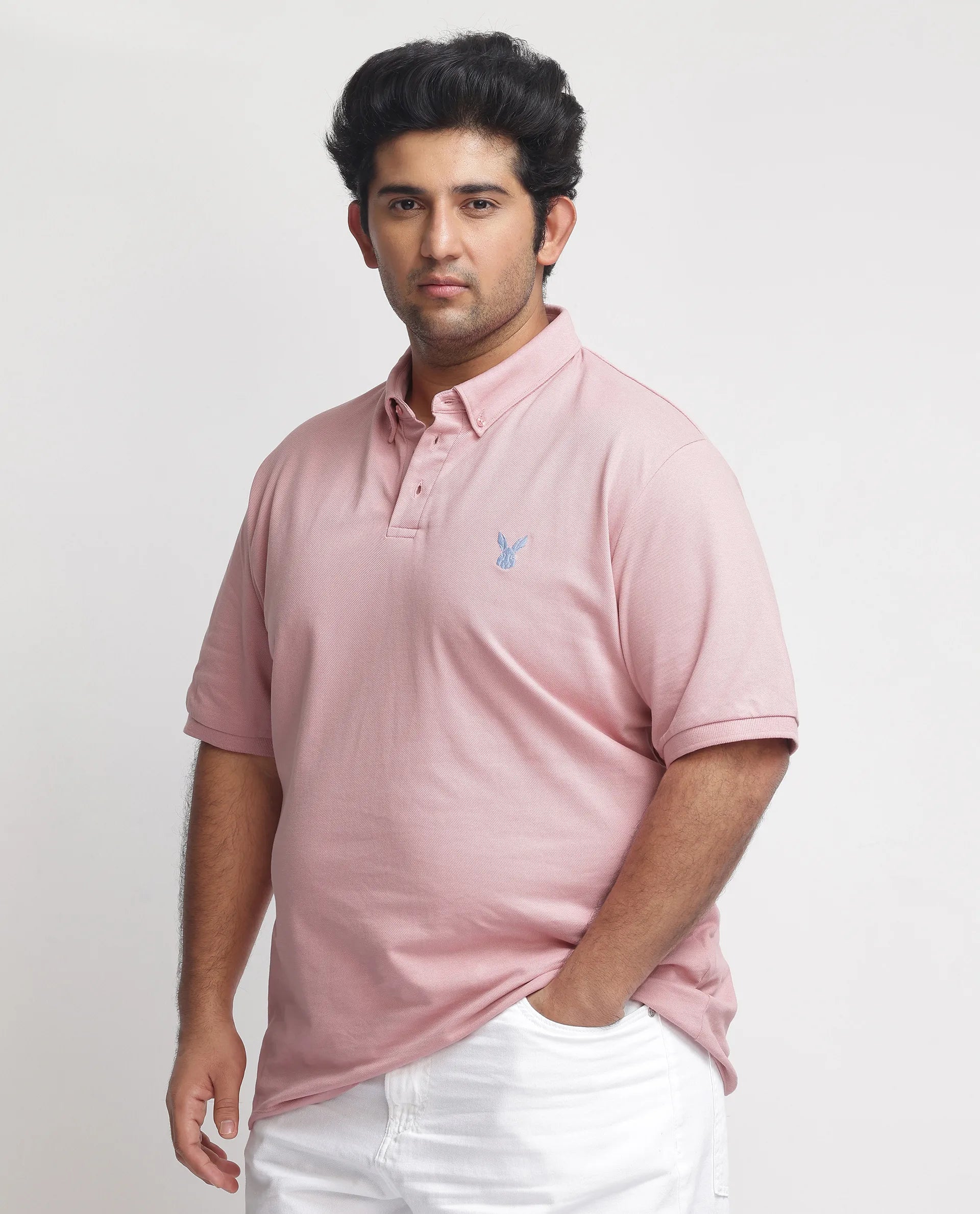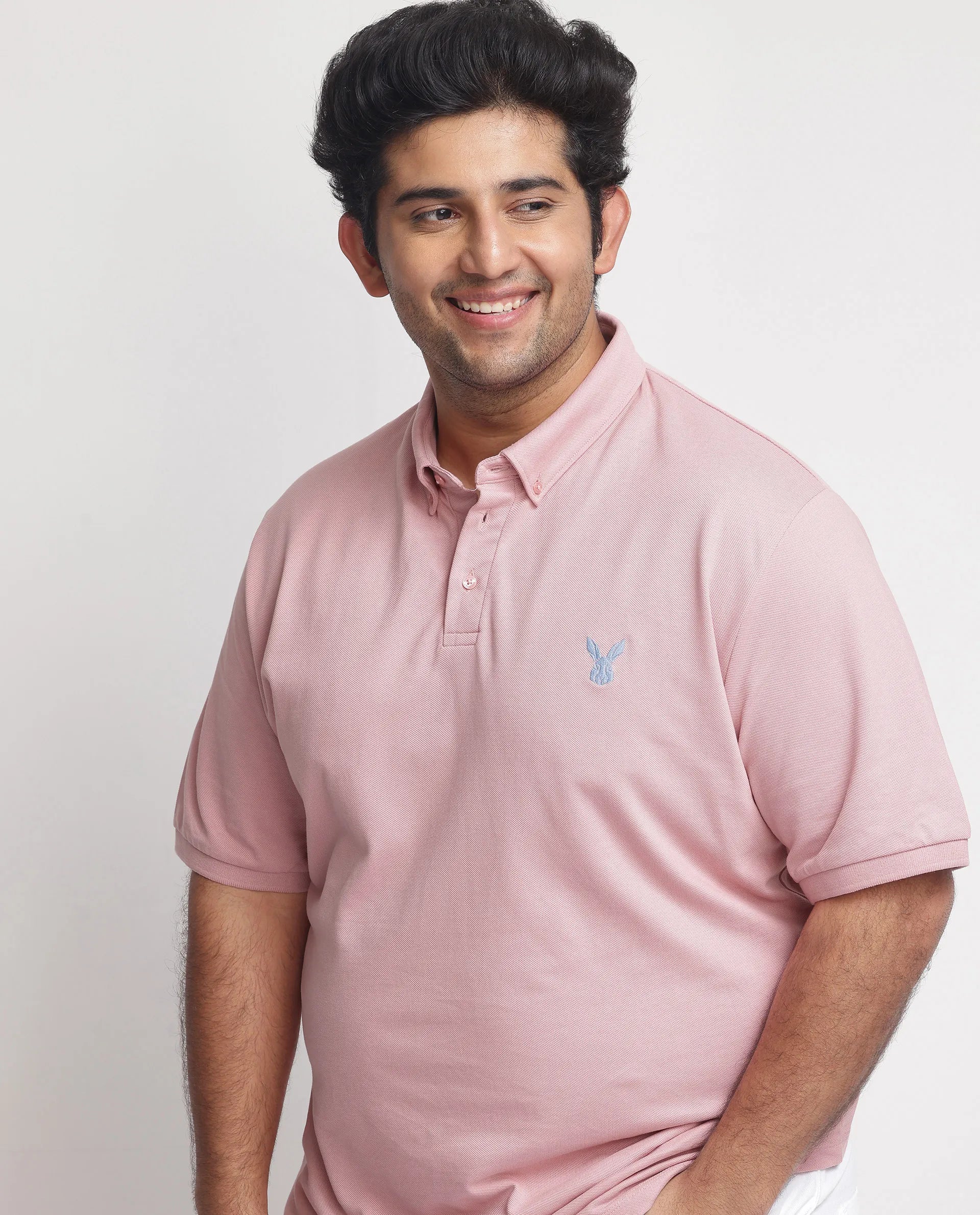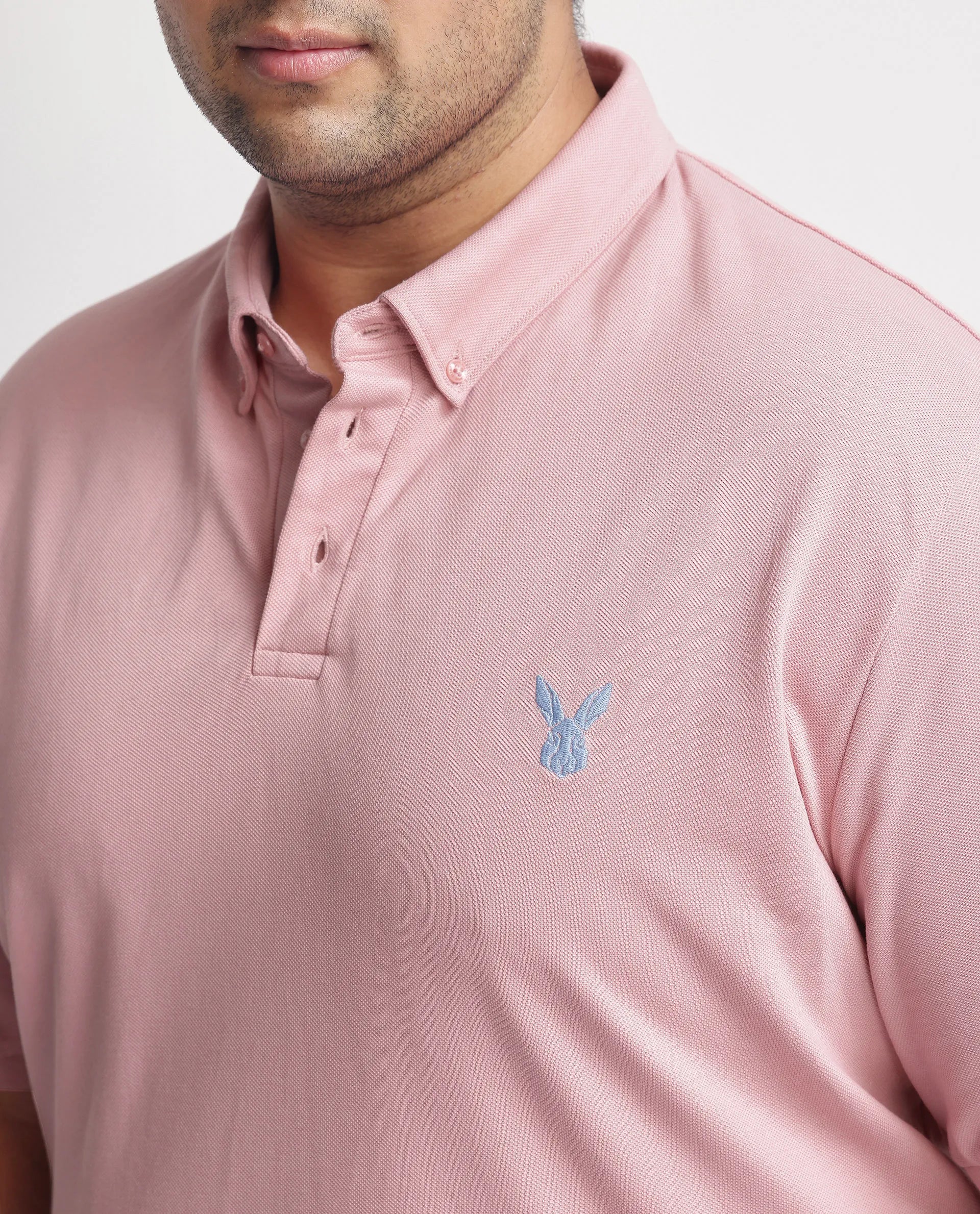 Rare Rabbit Men's Face Light Pink Cotton Fabric Short Sleeves Button Down Collar Embroidered Logo Plain Polo T-Shirt Plus Size