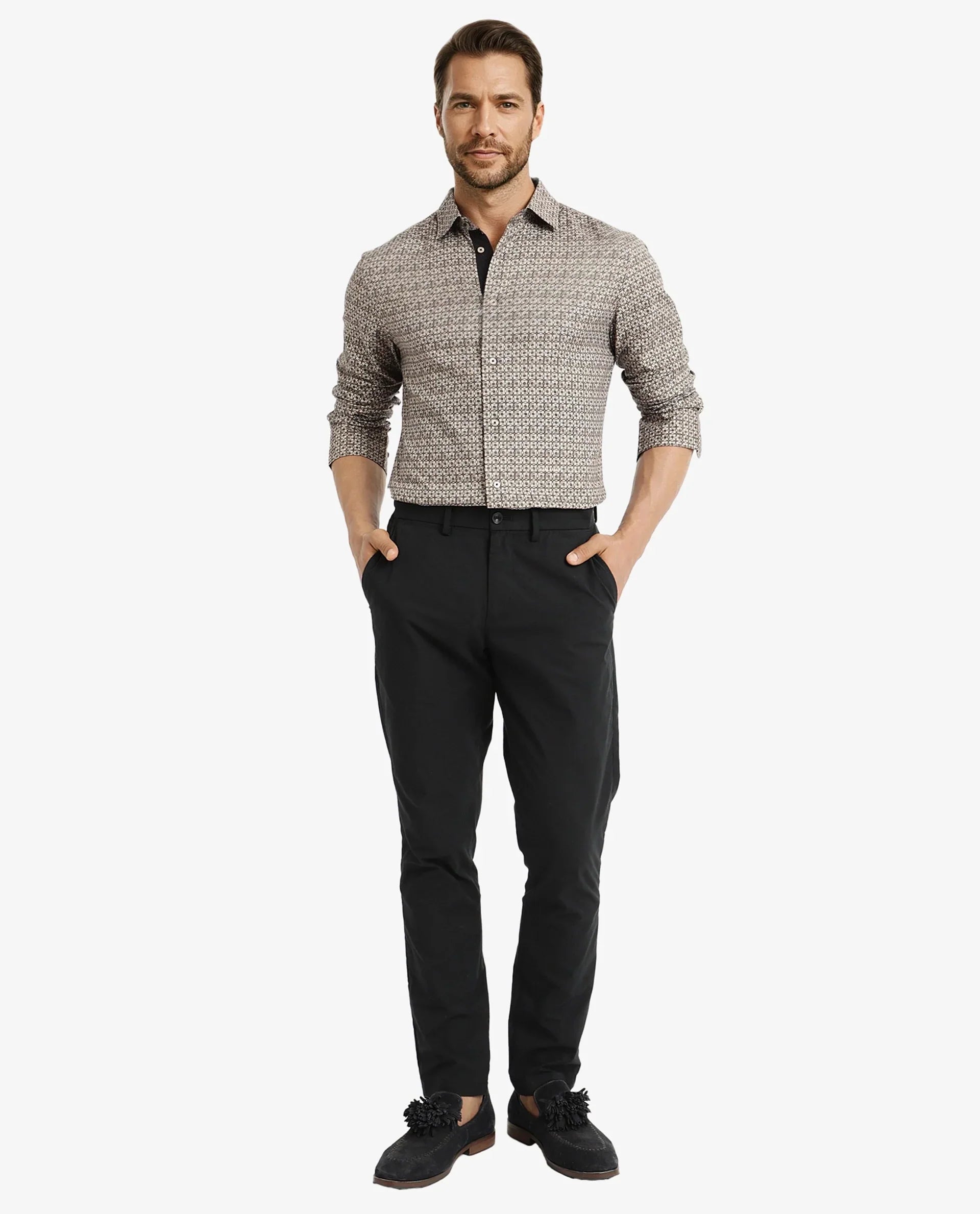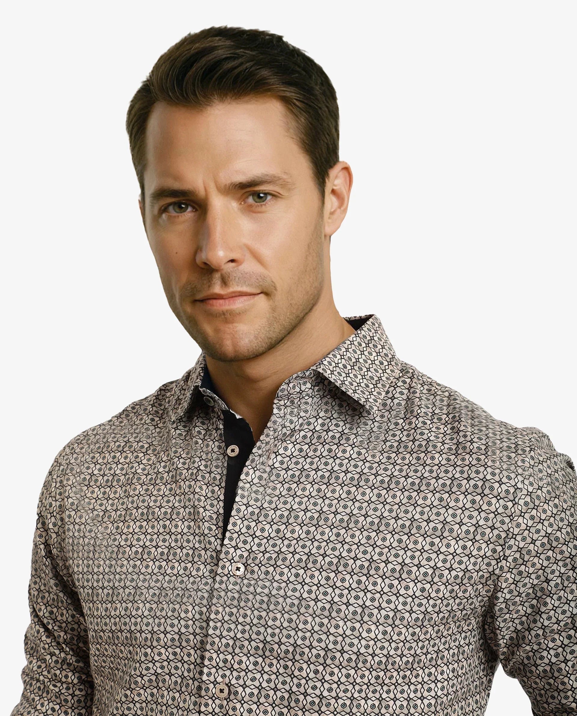 Discover the perfect blend of style and comfort with our men's geometric print shirt. Crafted from a premium cotton blend fabric, this casual shirt features a spread collar and button closure, ensuring a sleek and modern look. Designed for a regular fit, it offers both versatility and ease of movement, making it ideal for any occasion. The full sleeves add a touch of sophistication, while the unique geometric print sets you apart with a contemporary flair. Elevate your wardrobe with this must-have piece that seamlessly transitions from day to night. Perfect for casual outings or smart-casual events, this shirt is a staple for the modern man. Shop now and redefine your style.