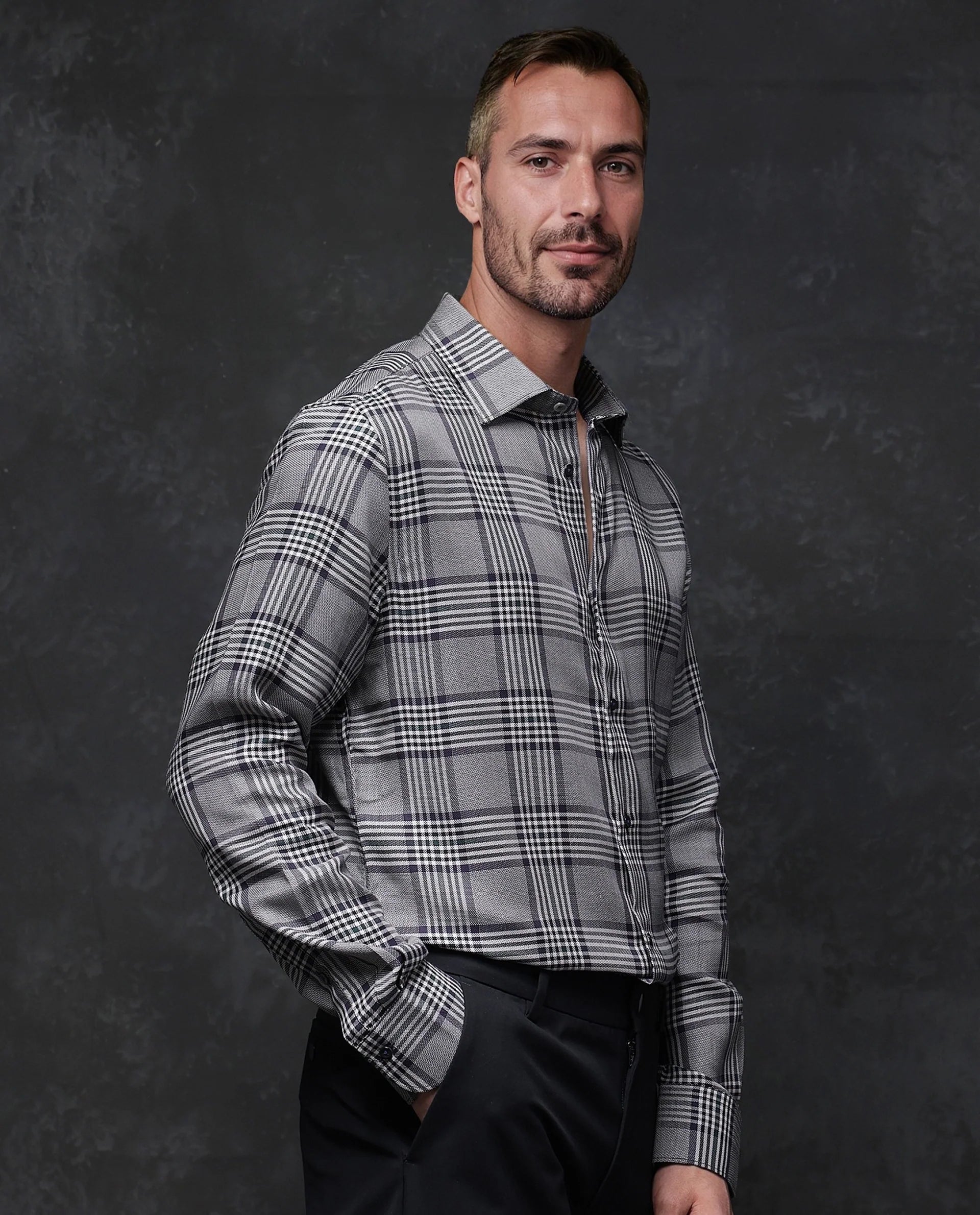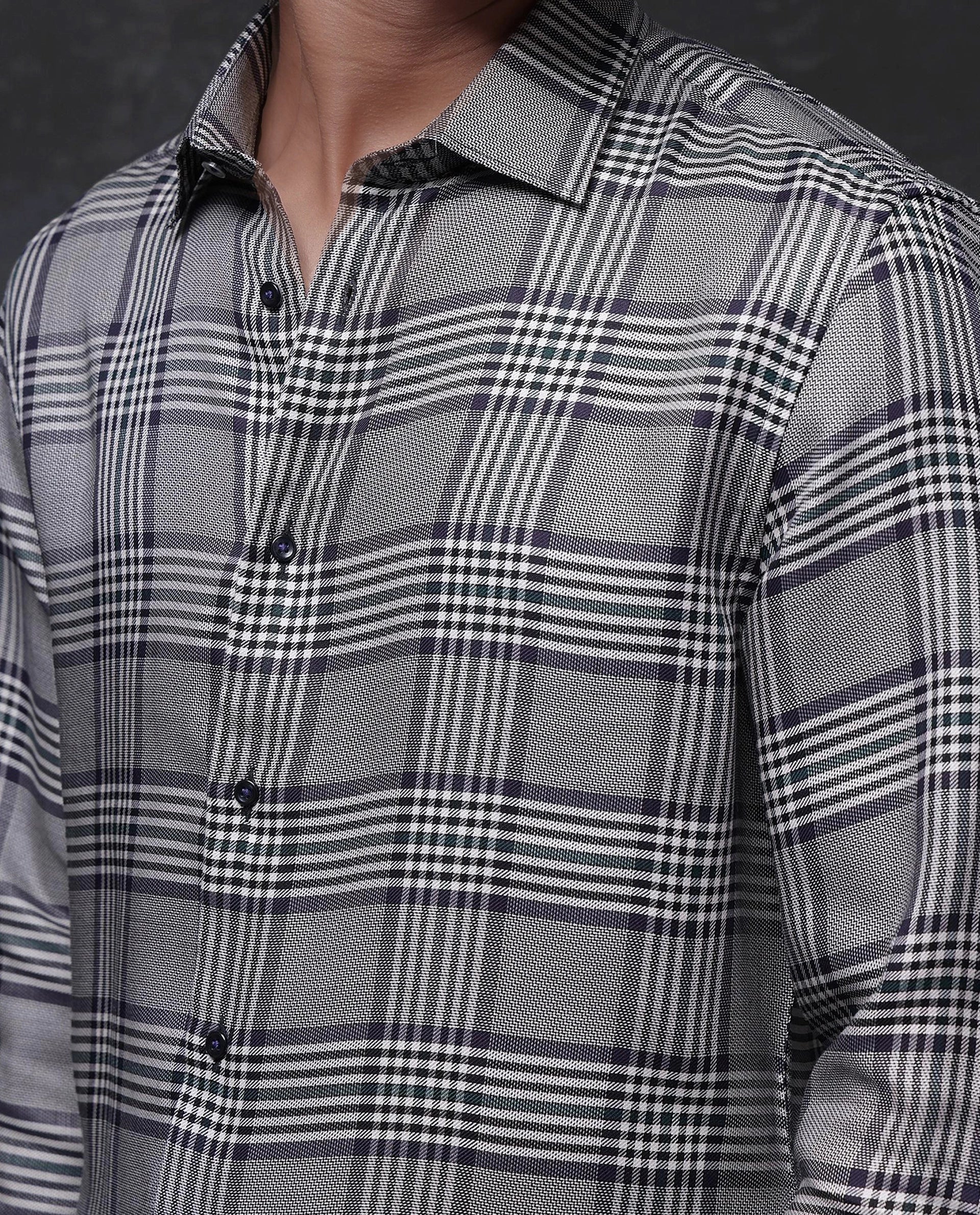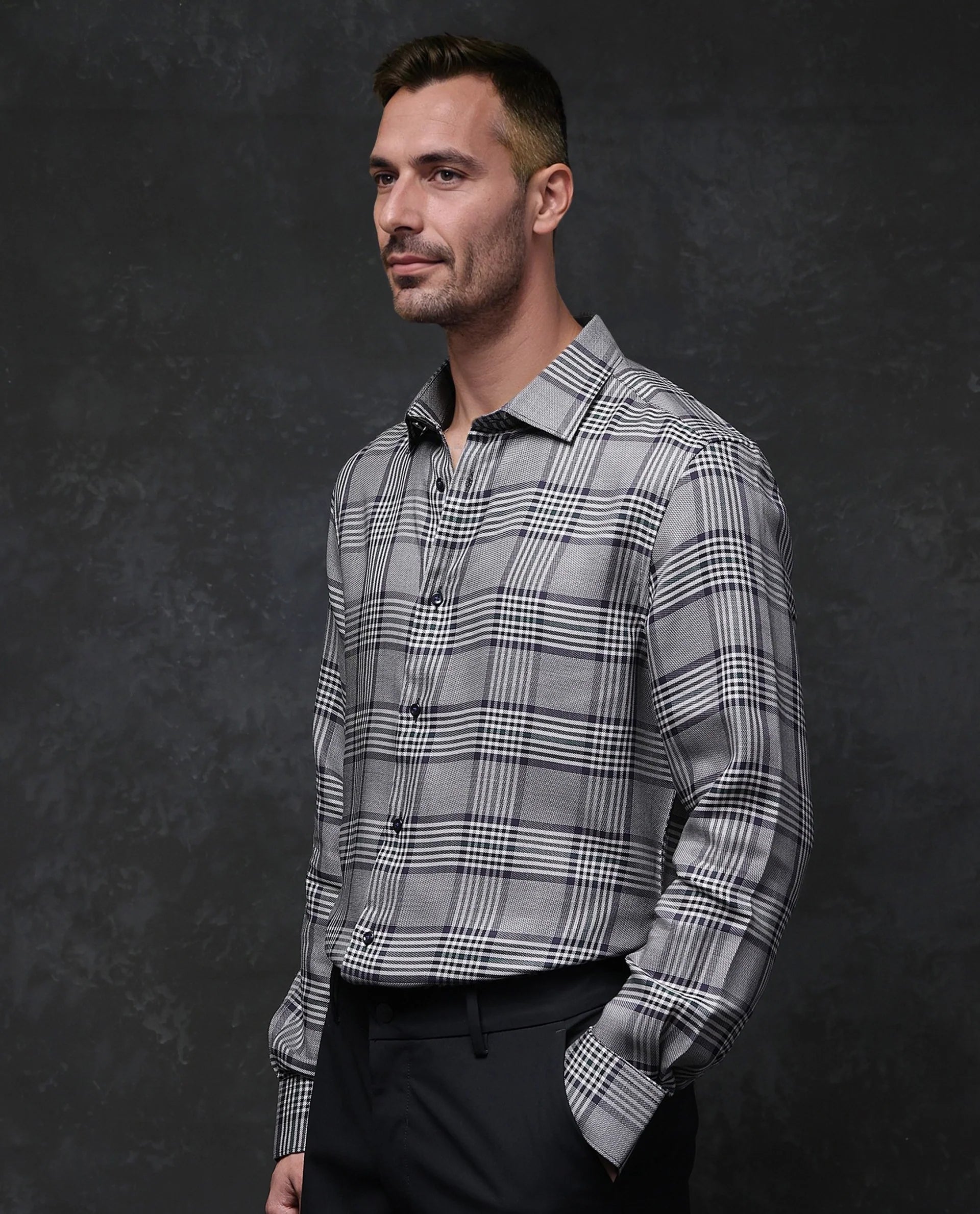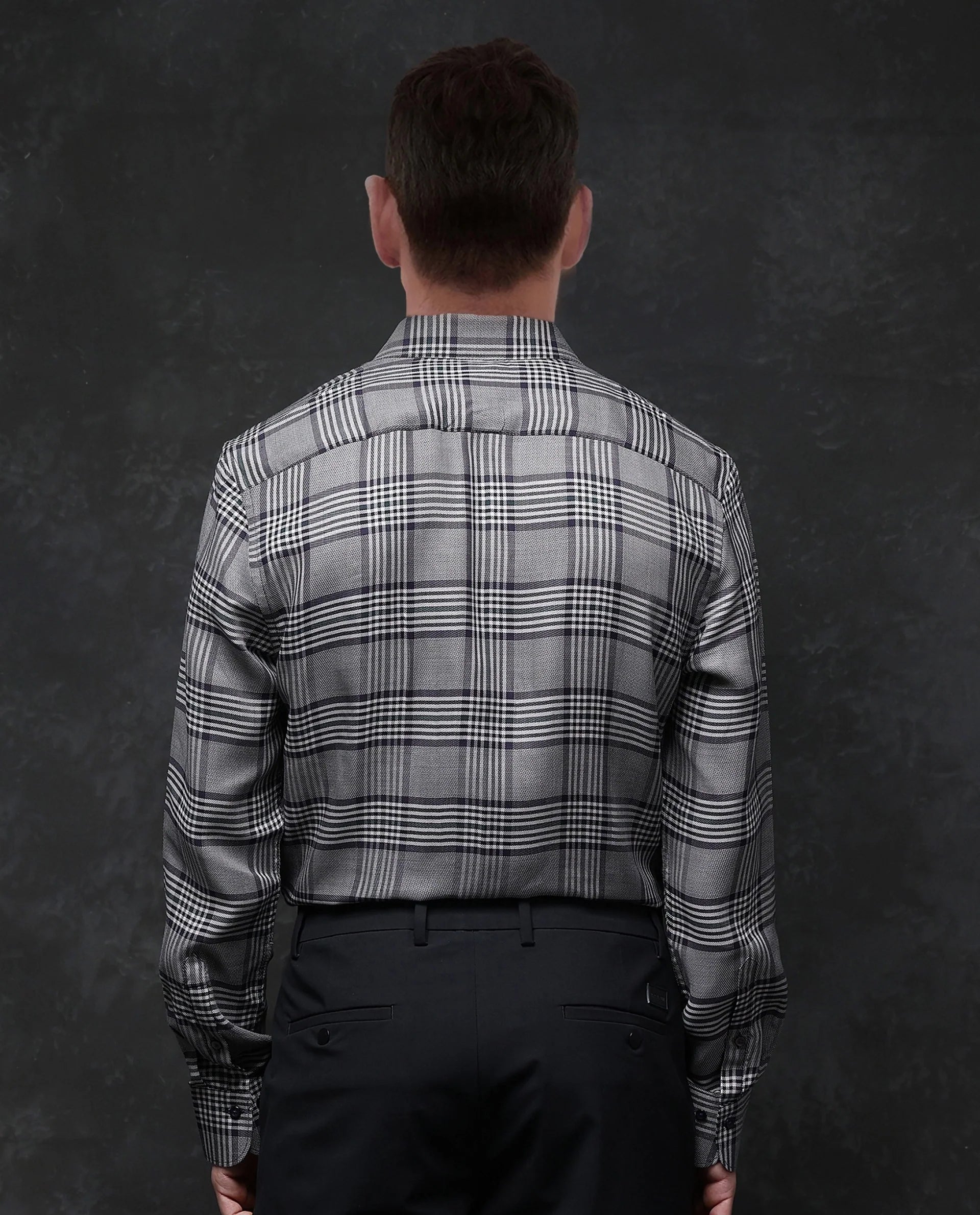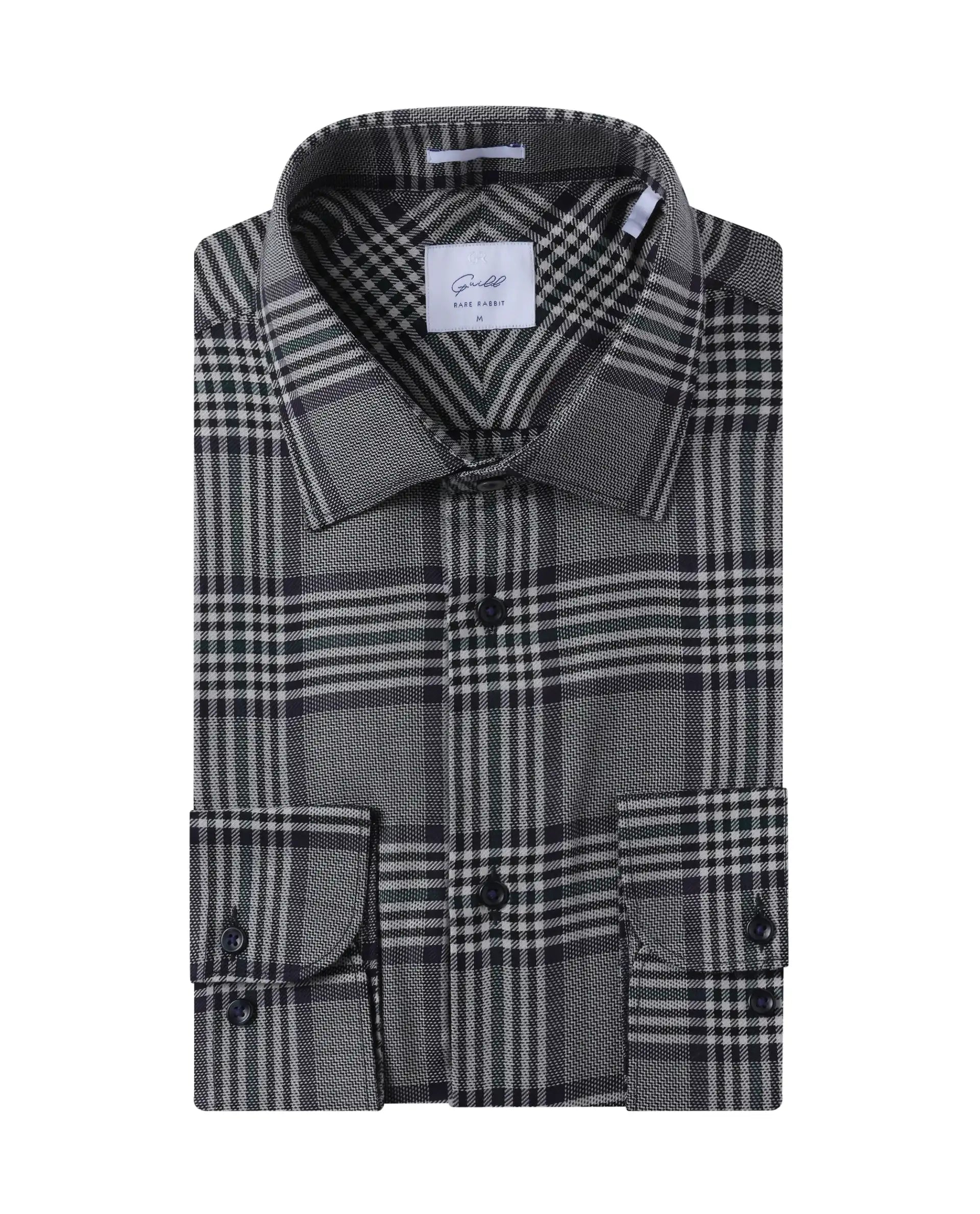 Rare Rabbit Men Fredo-2 Grey Tencel Fabric Full Sleeve Regular Fit Premium Check Print Shirt