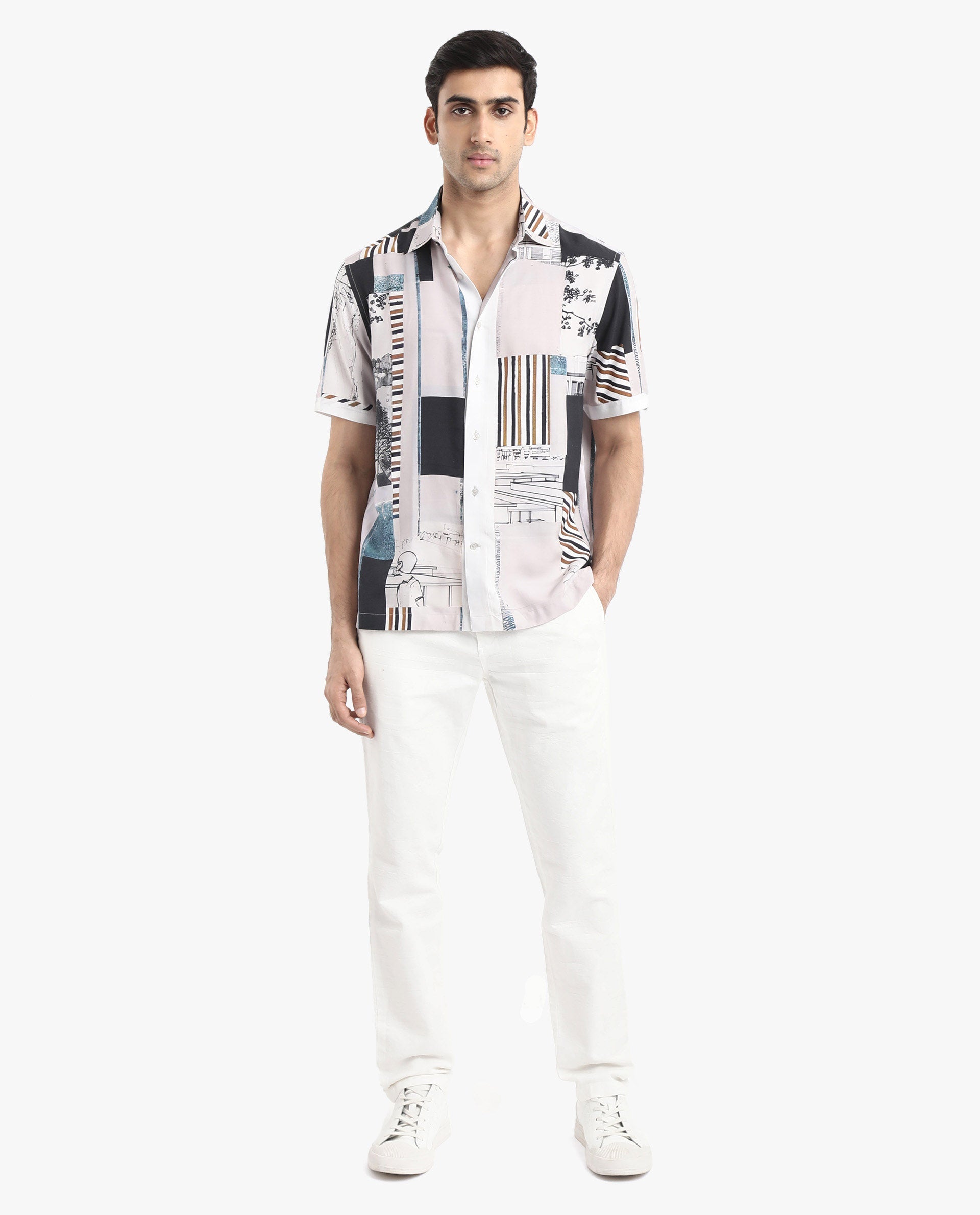 Discover the ultimate in casual fashion with our abstract print boxy shirt. Crafted from high-quality viscose, this shirt offers a comfortable and stylish boxy fit, perfect for any laid-back occasion. Featuring a classic spread collar and convenient button closure, it combines functionality with modern design. The half sleeves add a relaxed vibe, making it an ideal choice for warm weather. Elevate your wardrobe with this versatile piece that pairs effortlessly with jeans or shorts. Whether you're heading to a casual outing or a weekend getaway, this abstract print shirt ensures you stand out with its unique pattern. Shop now and embrace effortless style and comfort.