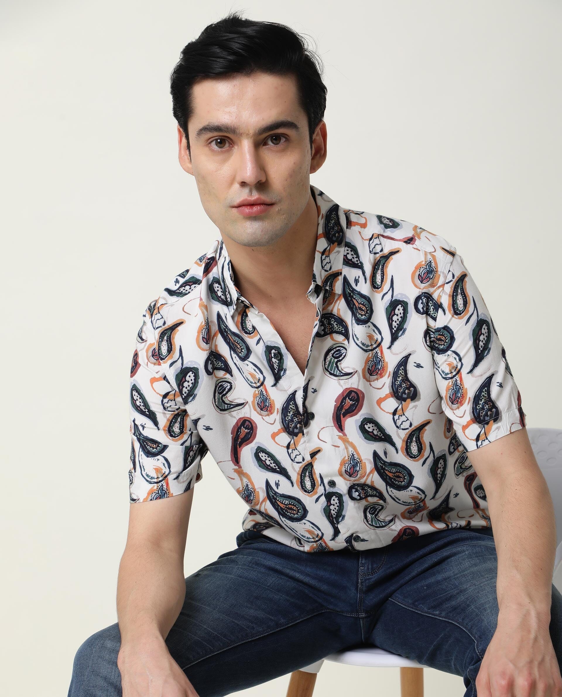 Discover the ultimate in casual fashion with our vibrant paisley print shirt. Crafted from premium viscose, this regular fit shirt offers unmatched comfort and style. Featuring a classic spread collar and convenient button closure, it's perfect for any laid-back occasion. The eye-catching paisley design adds a touch of flair, making it a standout piece in your wardrobe. Ideal for warm weather, the half sleeve design ensures you stay cool and stylish. Whether you're heading to a casual outing or a relaxed weekend gathering, this printed shirt is your go-to choice. Elevate your fashion game and make a statement with this must-have paisley print shirt. Shop now for effortless style and comfort.