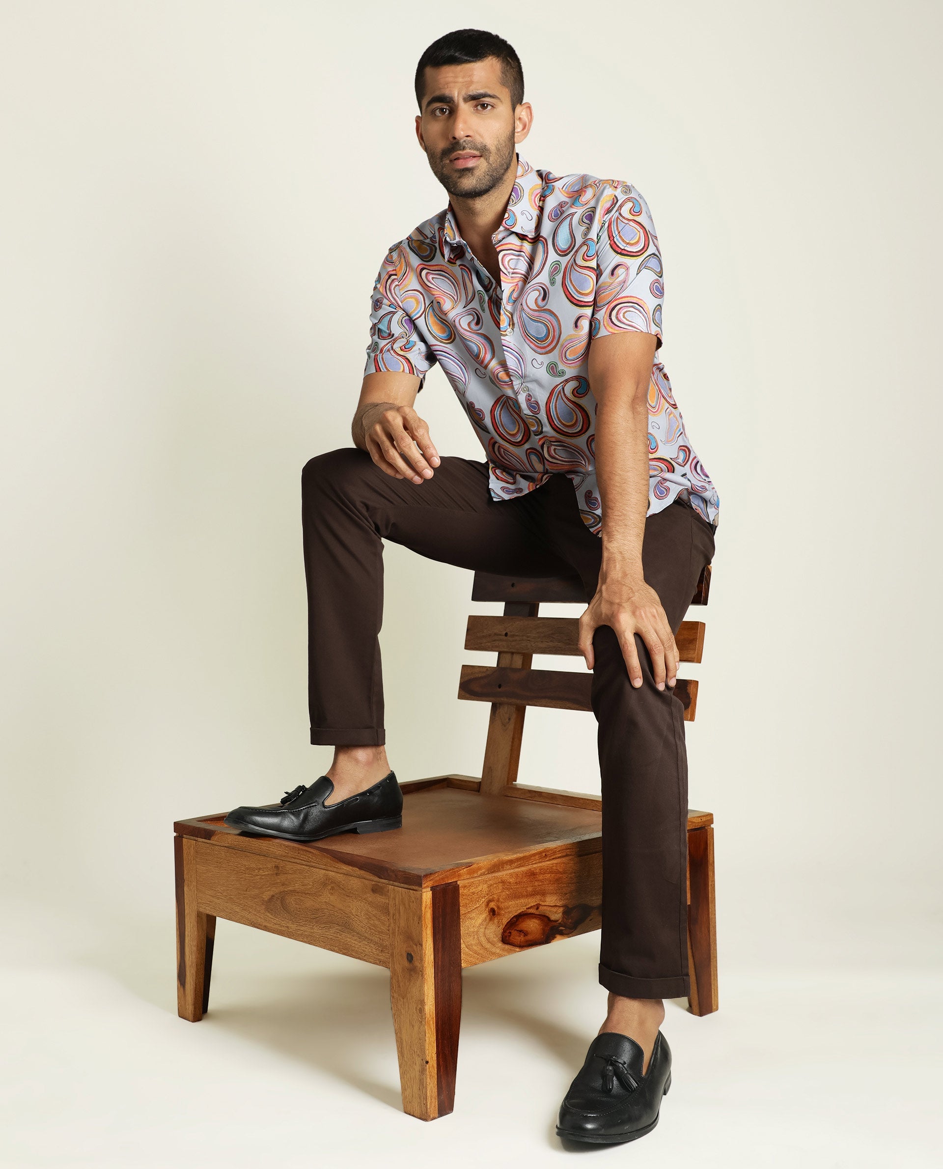 Rare Rabbit Men's Marsh Ss Blue Viscose Fabric Paisley Print Half Sleeves Shirt