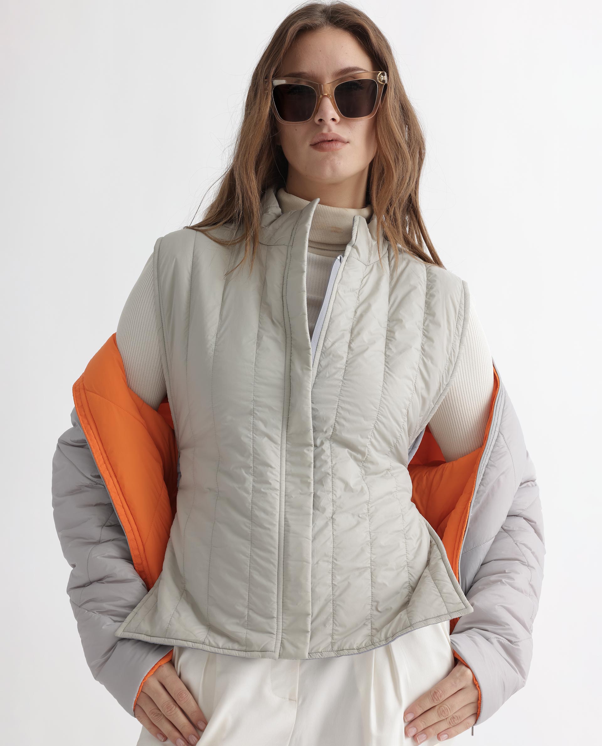 REVERSIBLE SLIT PADDED SLEEVELESS JACKET