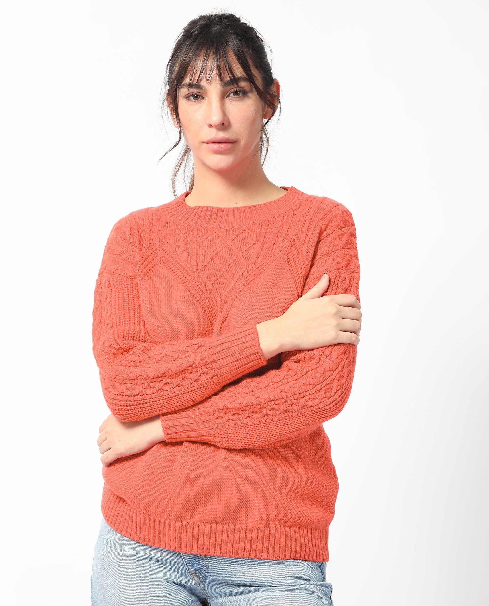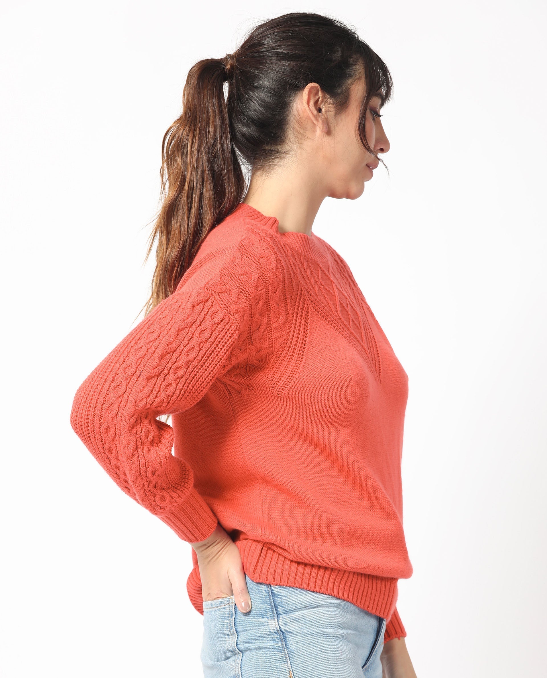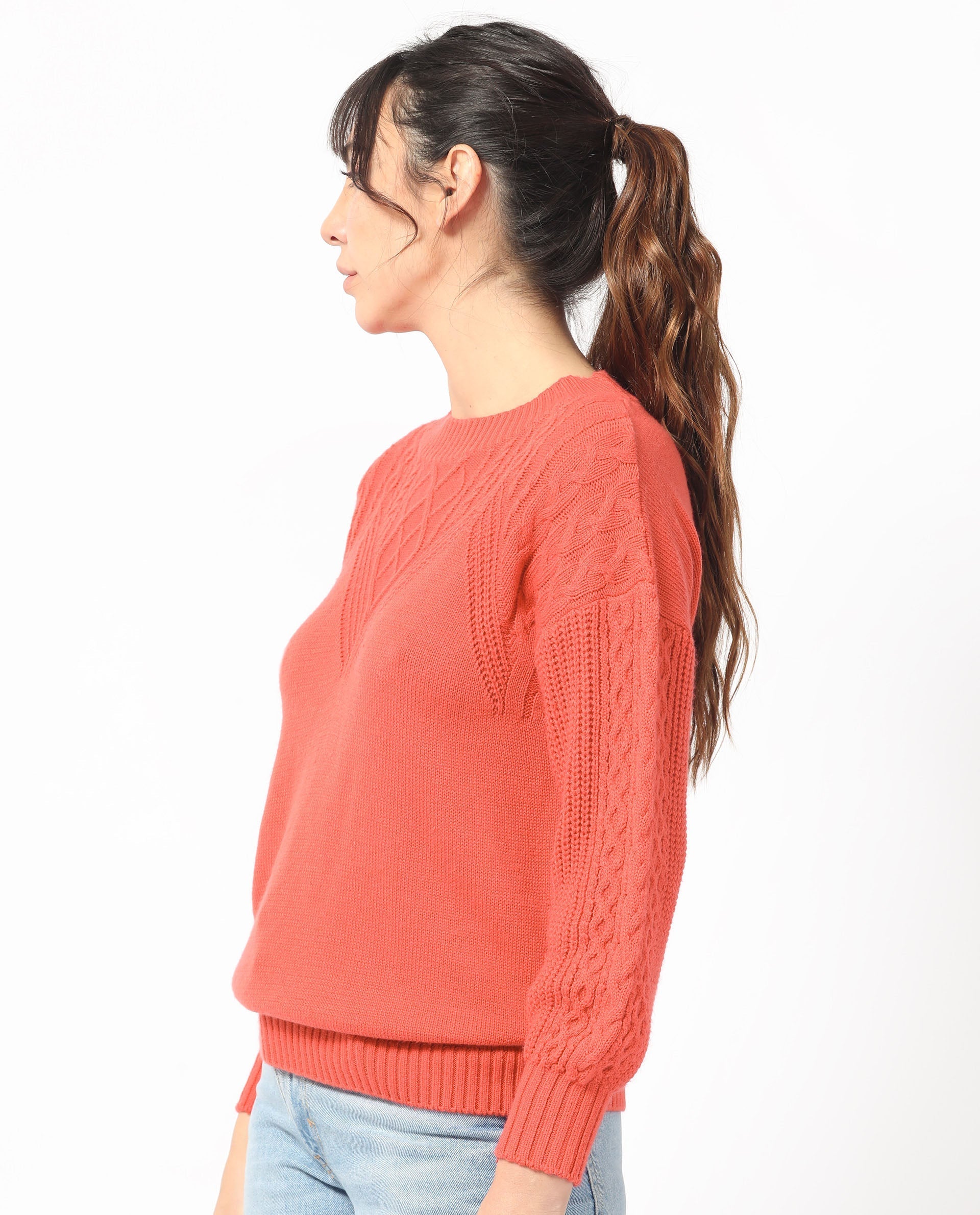 CLASSIC CABLE KNIT ROUND NECK SWEATER