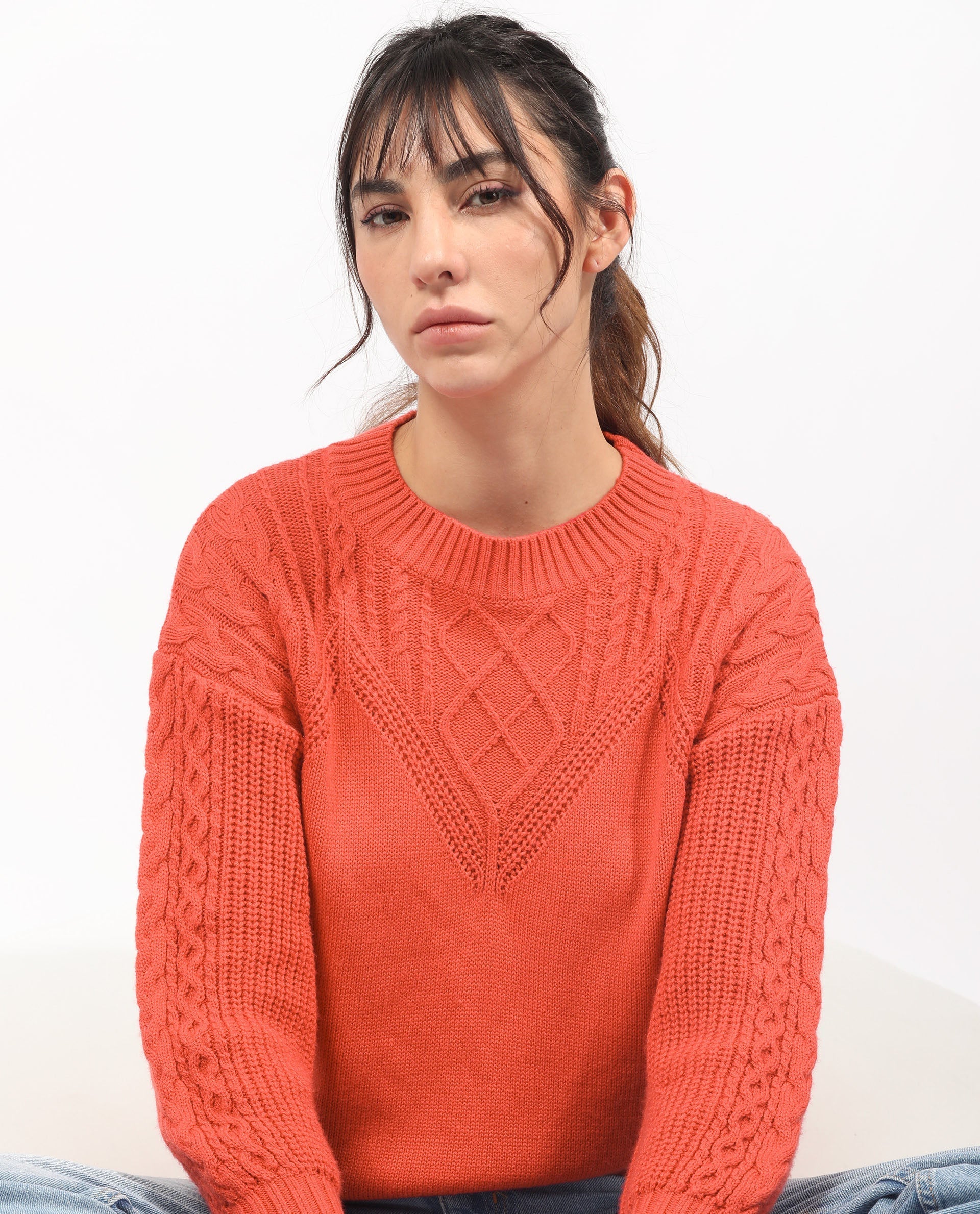 - Cable knit sweater.