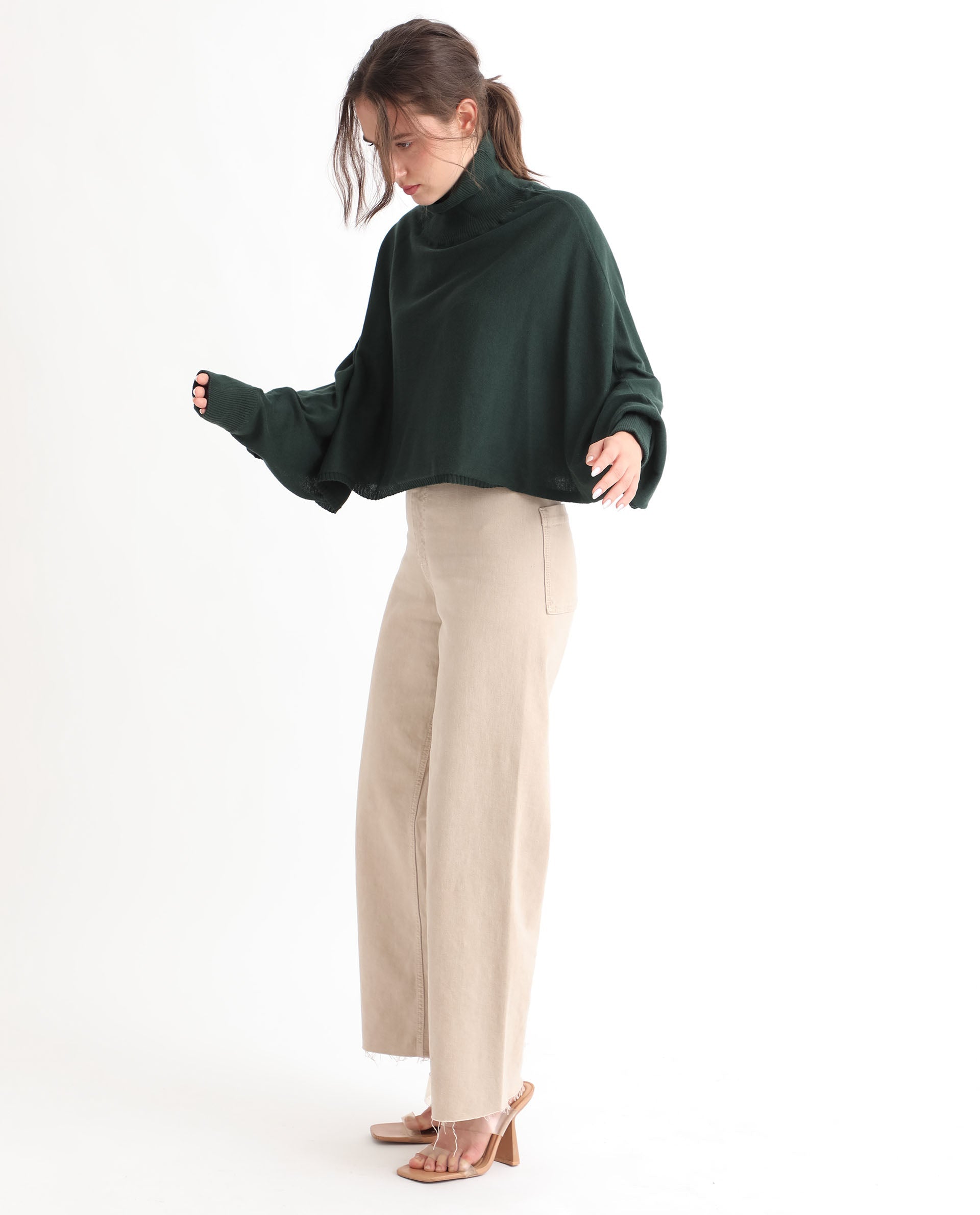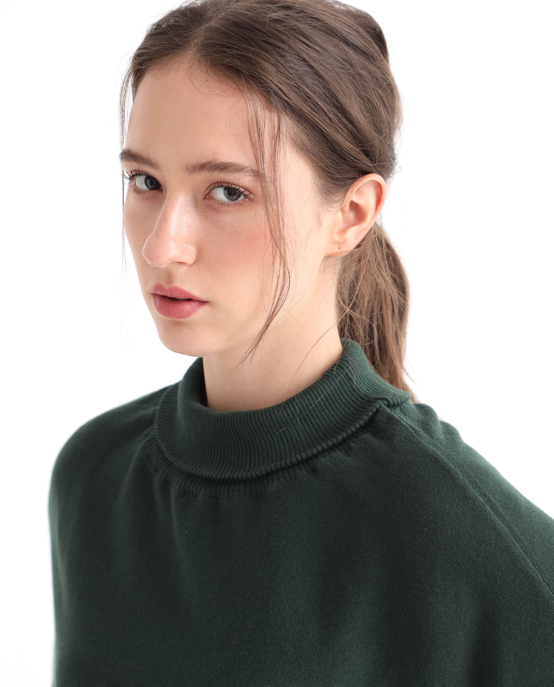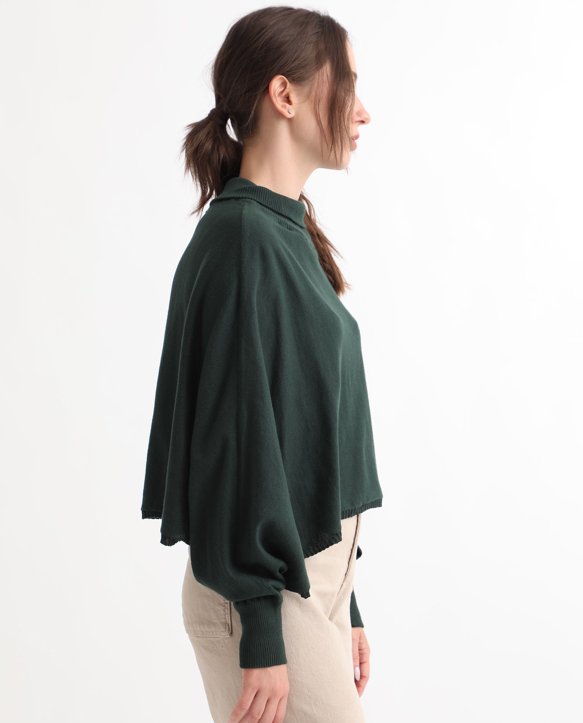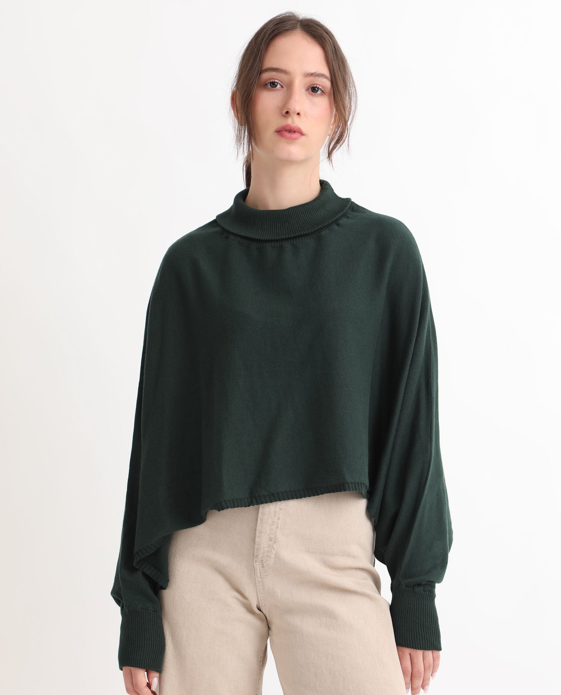 AN URBAN-STYLE SWEATER WITH A HIGH NECK AND BATWING SLEEVES.