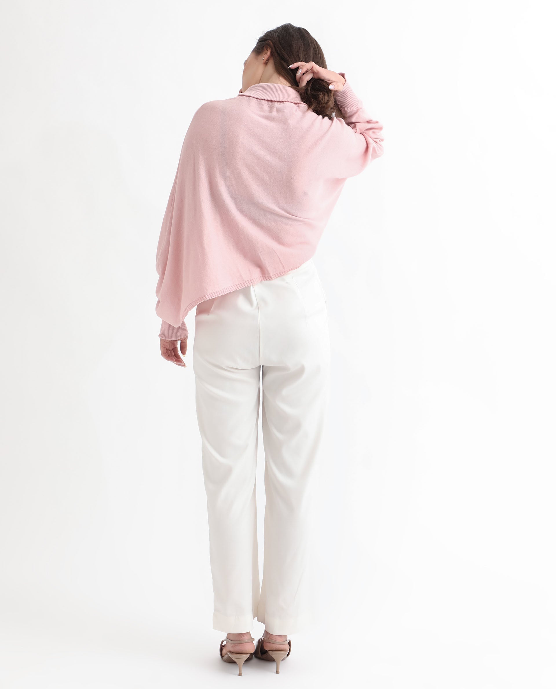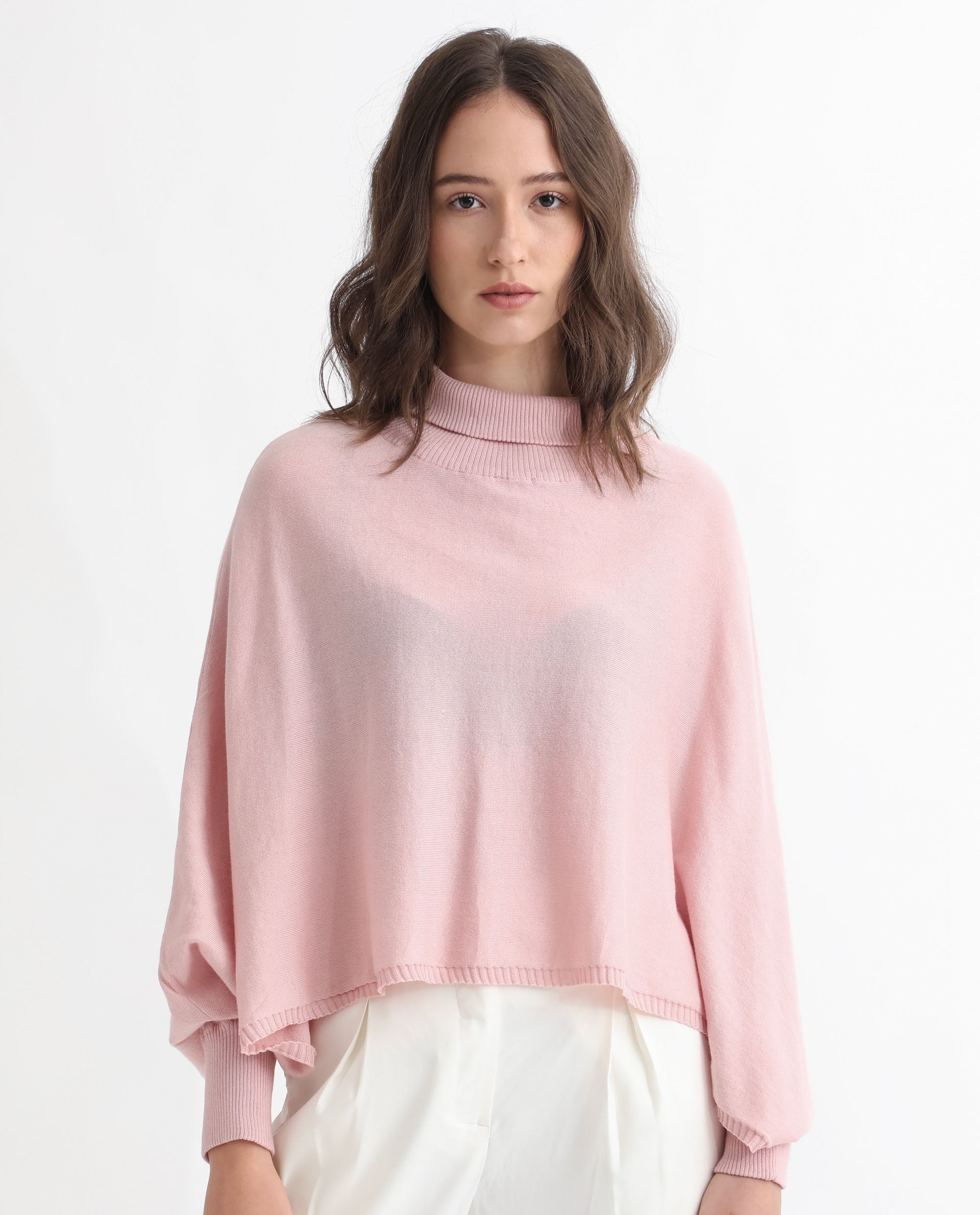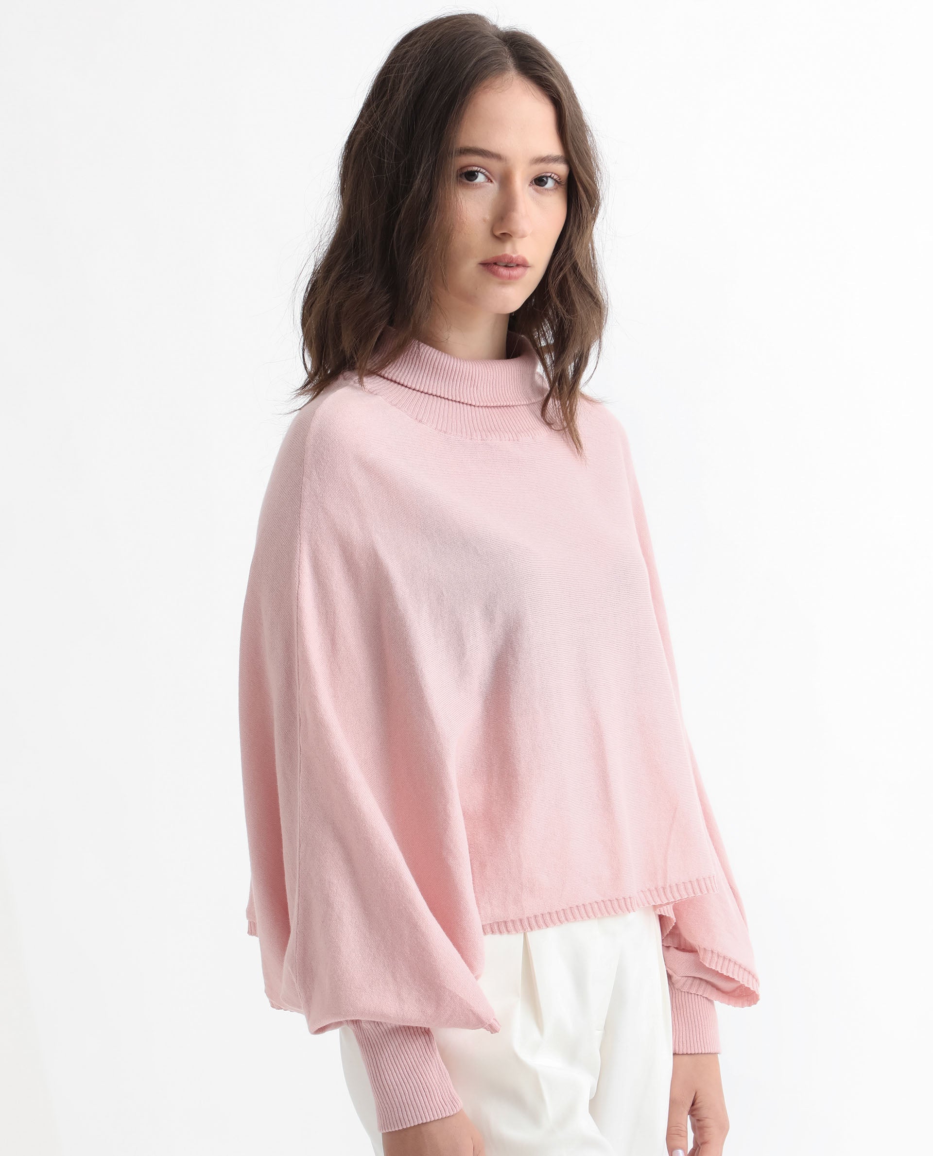 AN URBAN-STYLE SWEATER WITH A HIGH NECK AND BATWING SLEEVES.