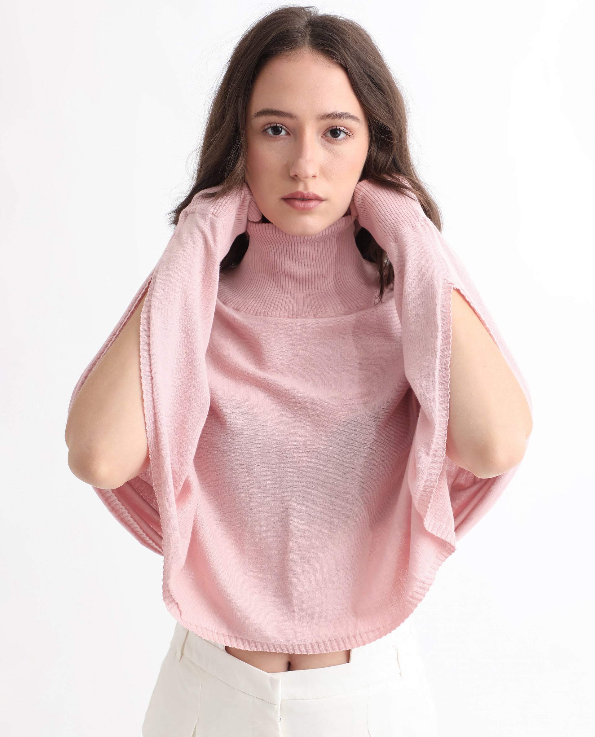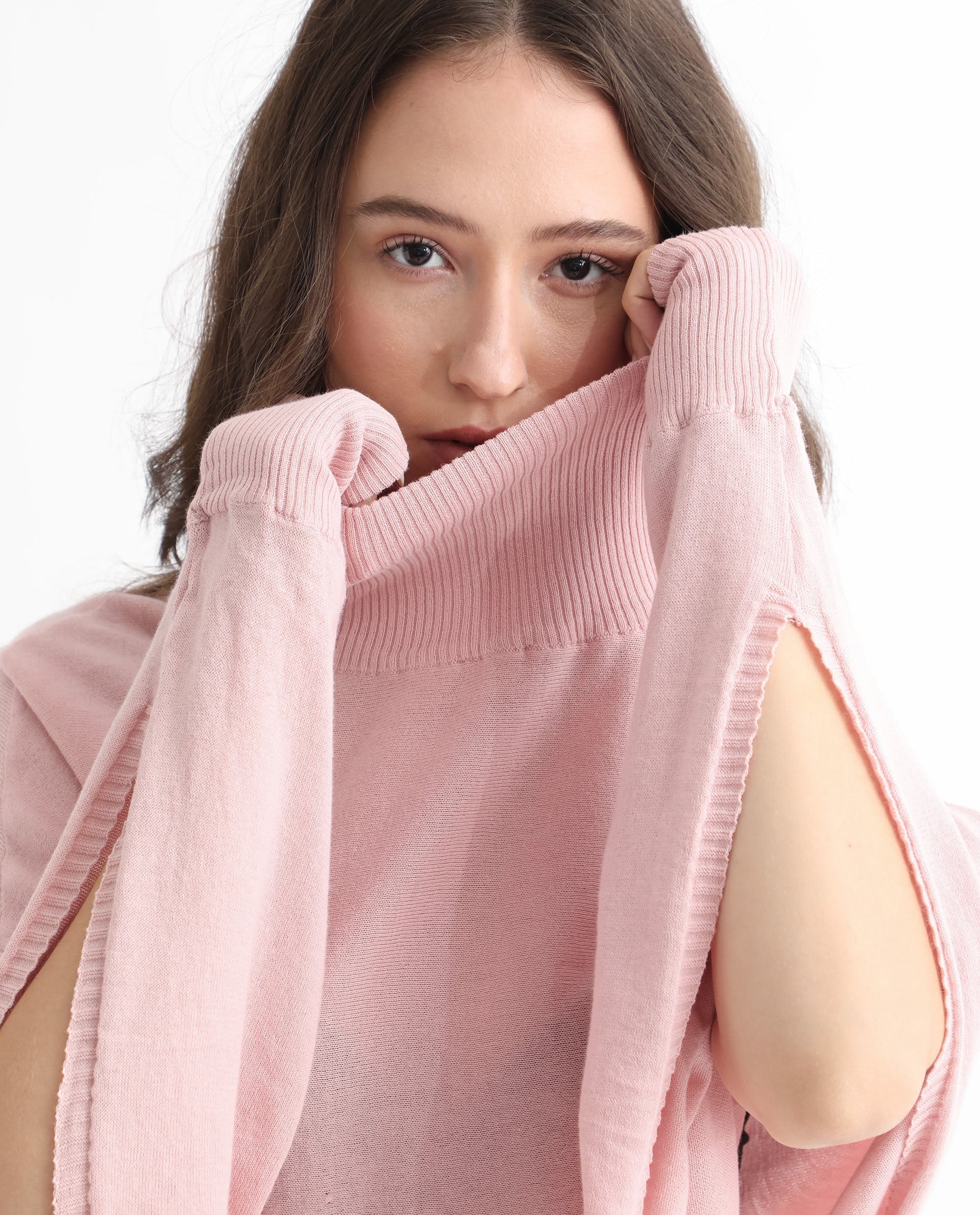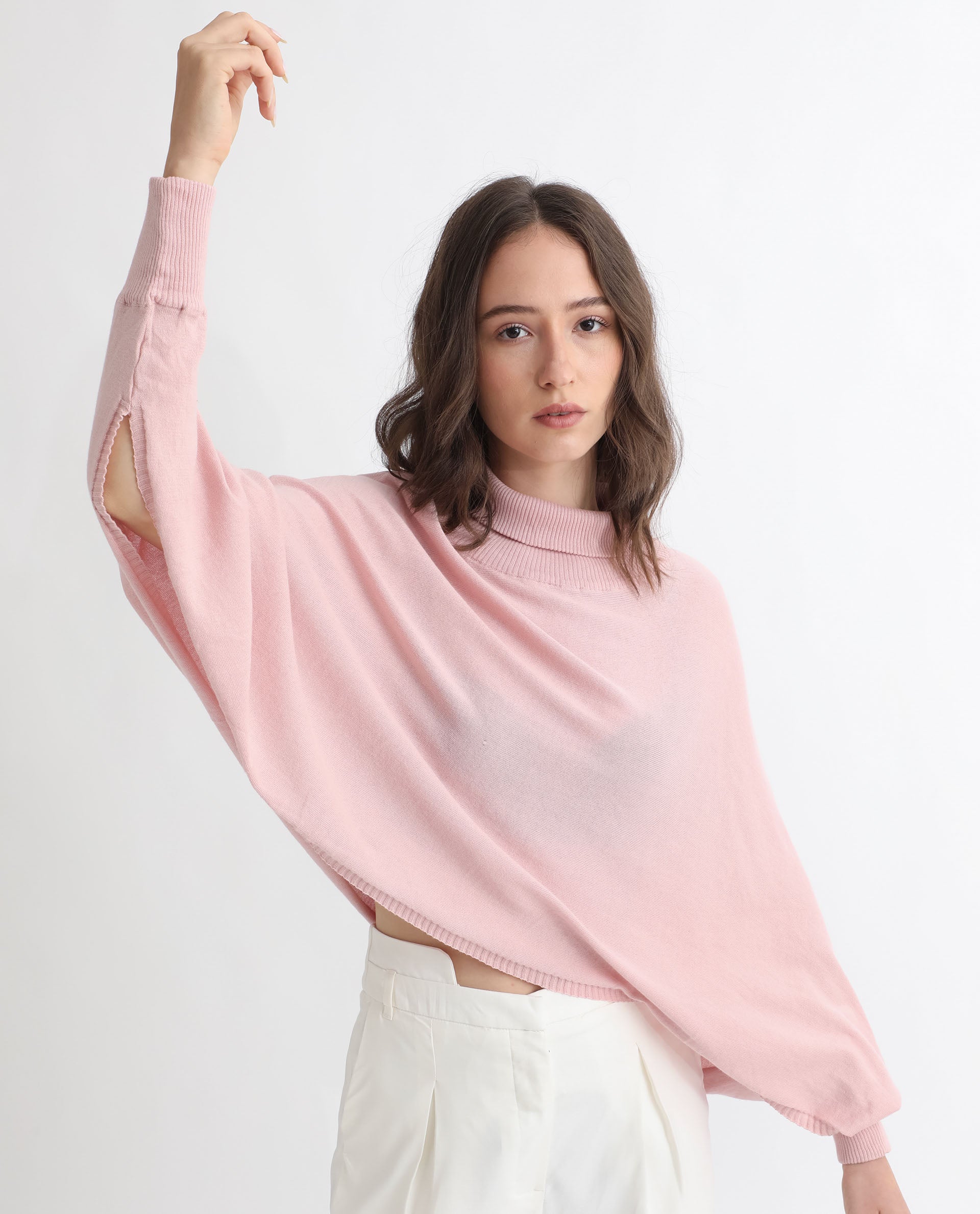 Rareism Women Modem Pink Cotton Fabric Full Sleeves Regular Fit Solid High Neck Sweater