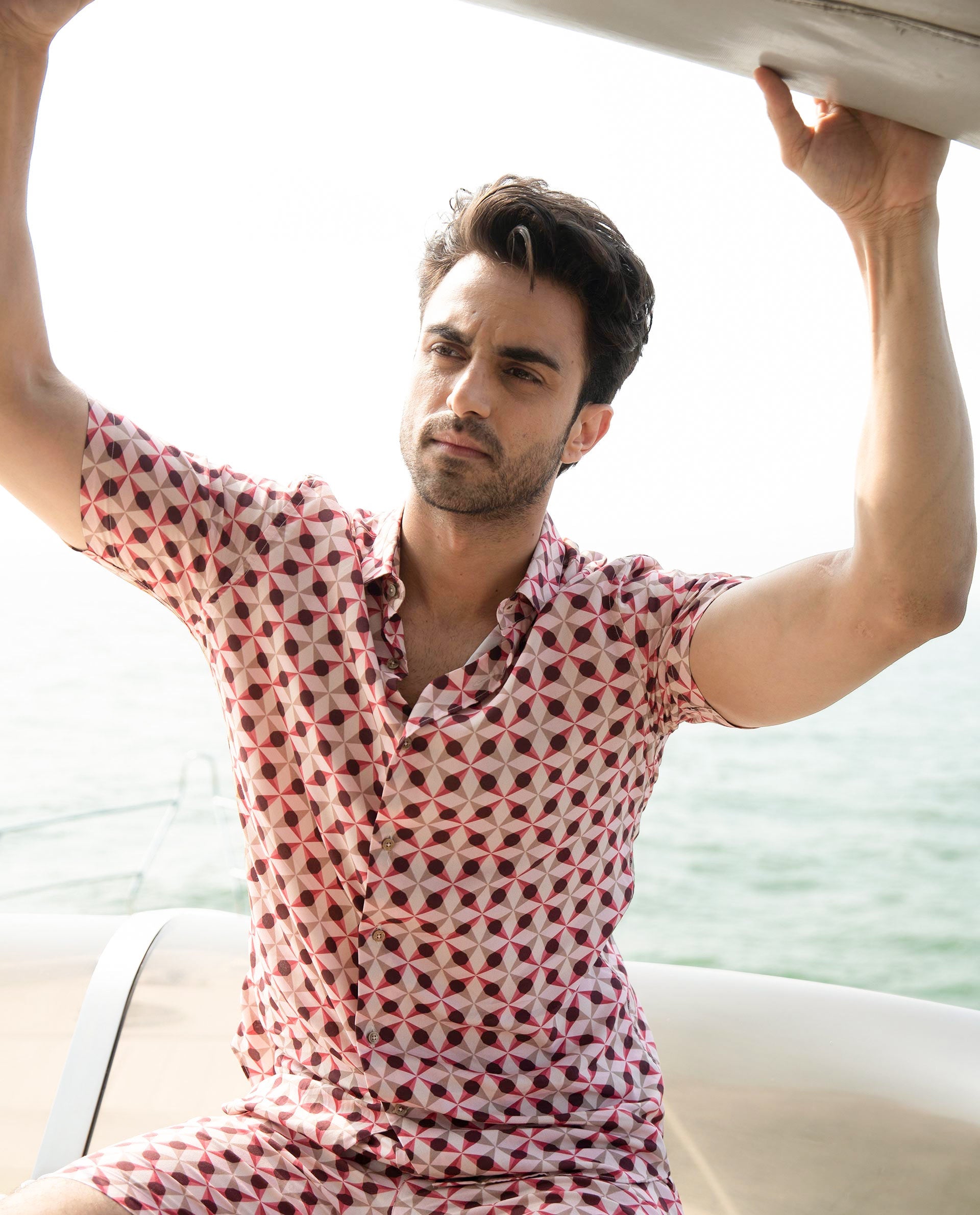 Rare Rabbit Men's Stanet Pink Cotton Fabric Half Sleeves Geometric Print Shirt