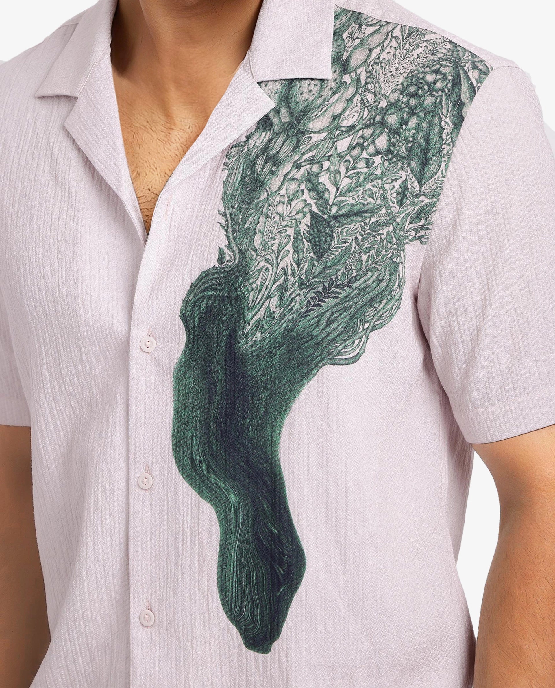 ABSTRACT PRINT CUBAN COLLARED SHIRT