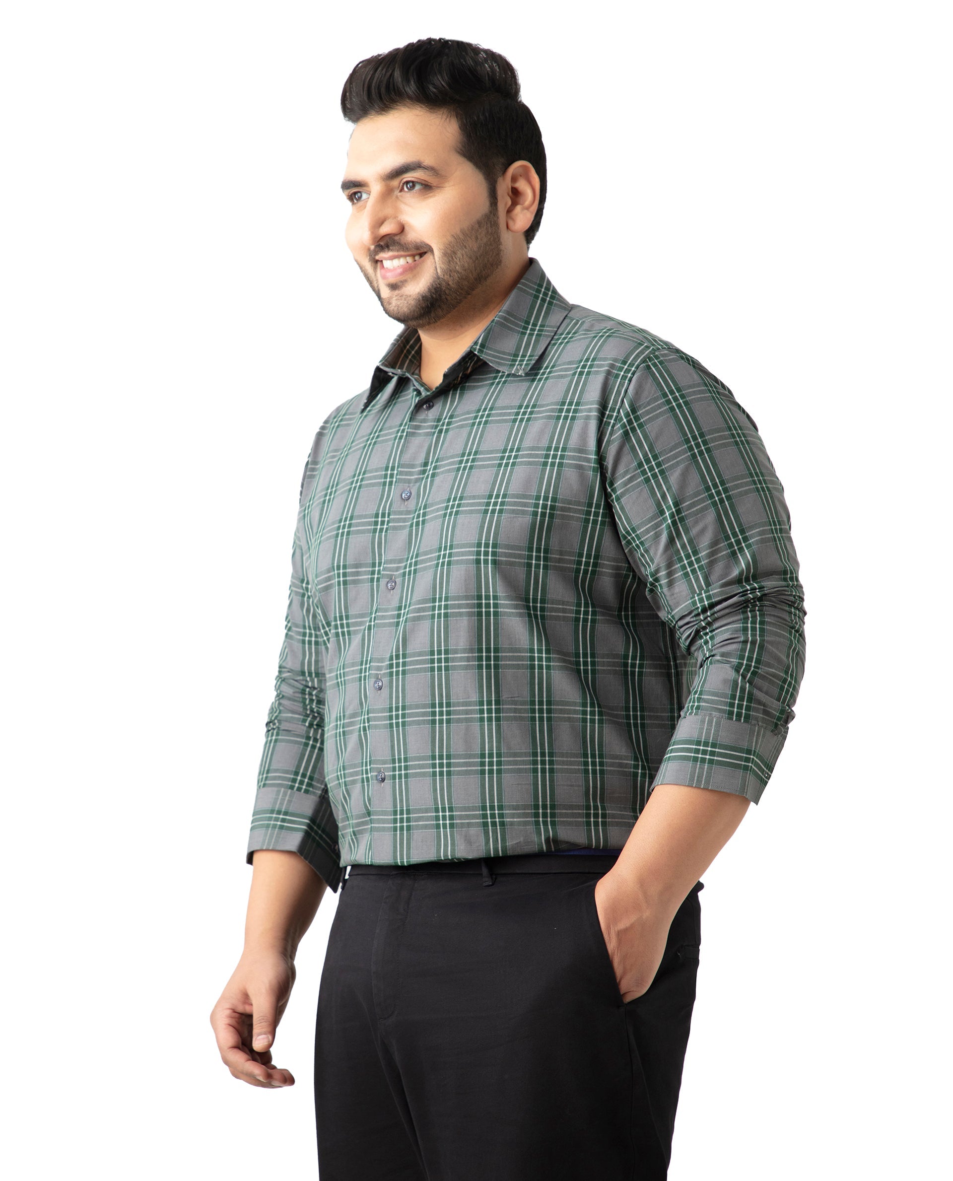 Introducing our stylish Green Checkered Shirt, perfect for casual outings and everyday wear. Crafted from premium cotton, this Plus Size fit shirt ensures comfort and breathability. Featuring a classic Button-down collar and full sleeves, it offers a timeless look. The green button closure adds a touch of elegance, making it a versatile addition to any wardrobe. Ideal for those seeking a blend of style and comfort, this checkered shirt is a must-have for fashion-forward individuals. Elevate your casual attire with this essential piece today.