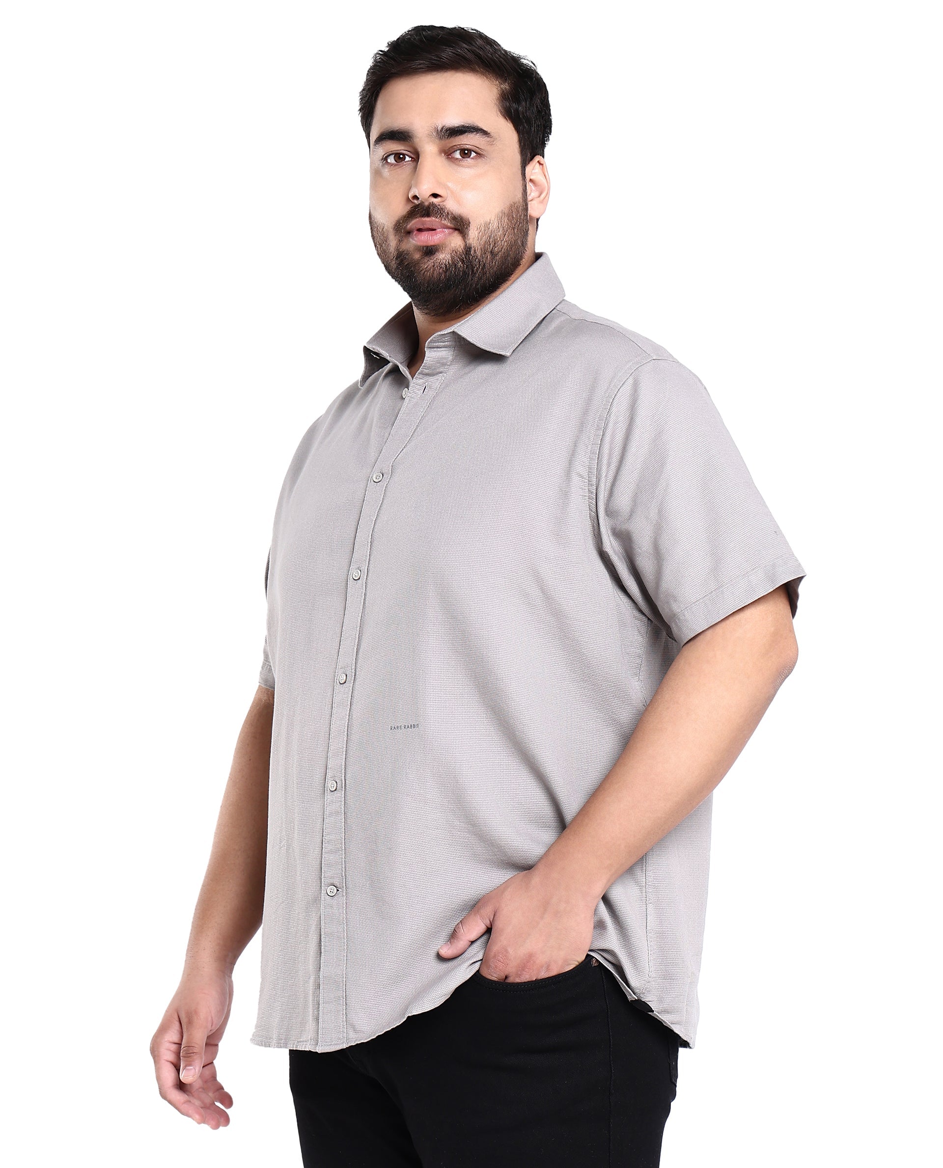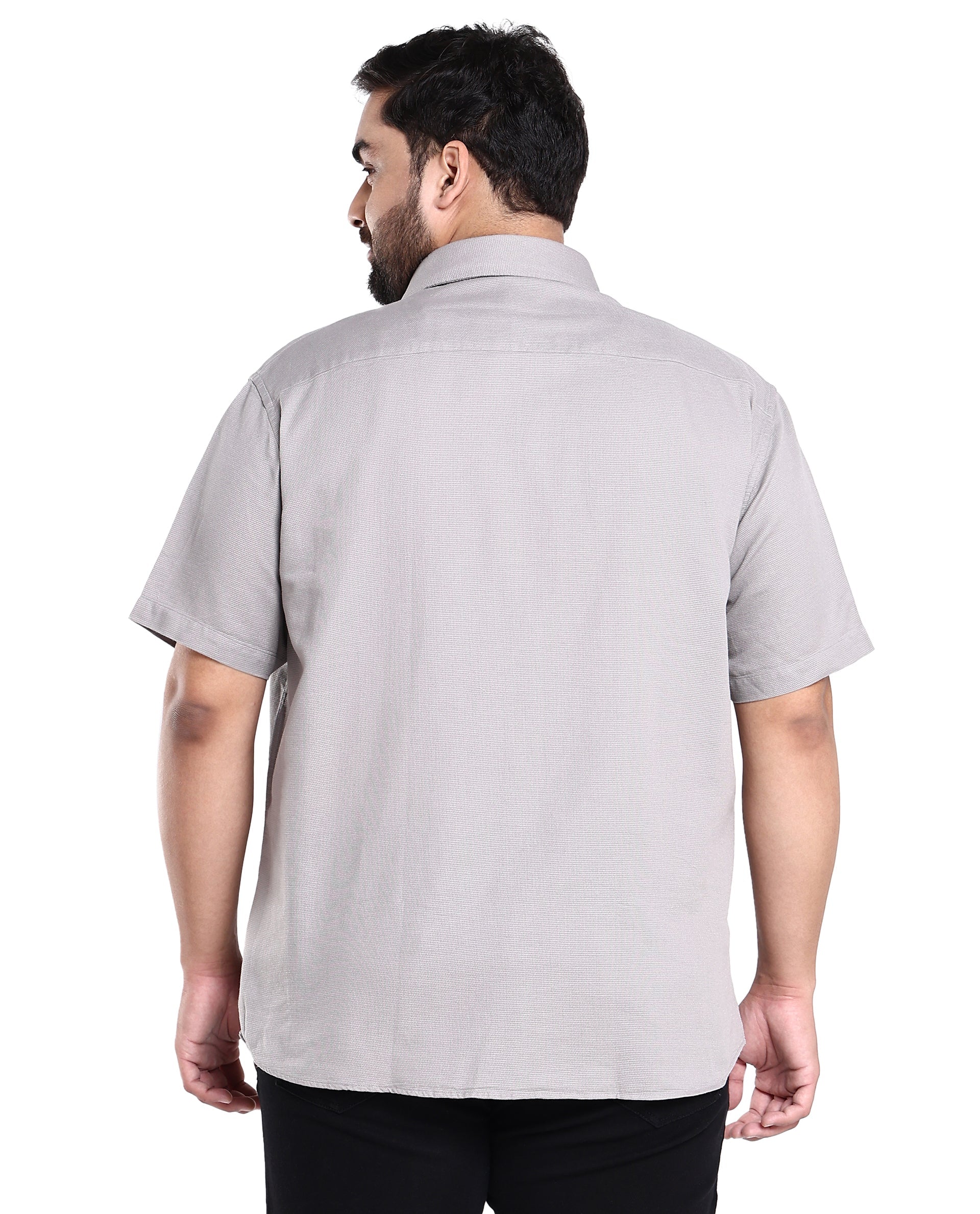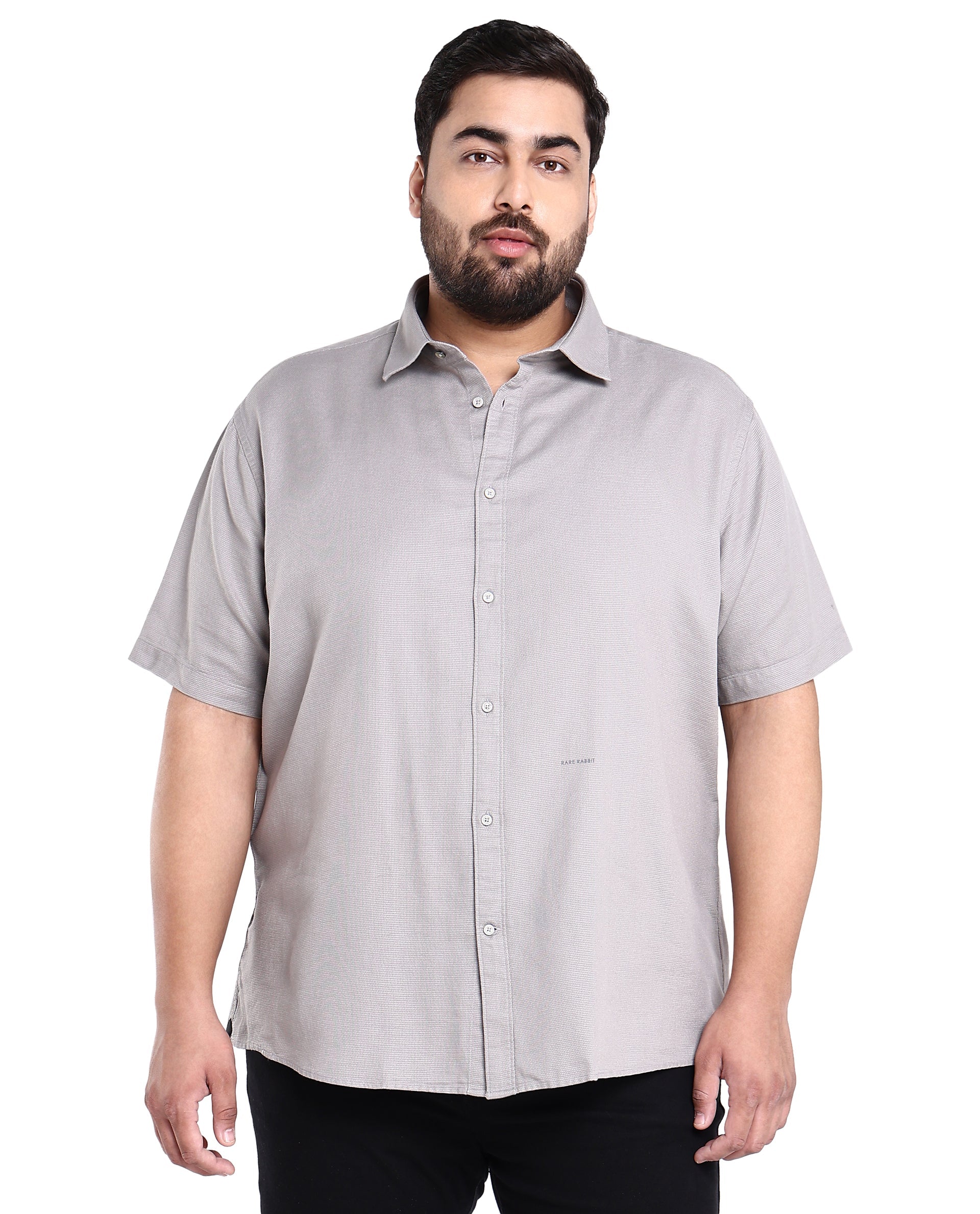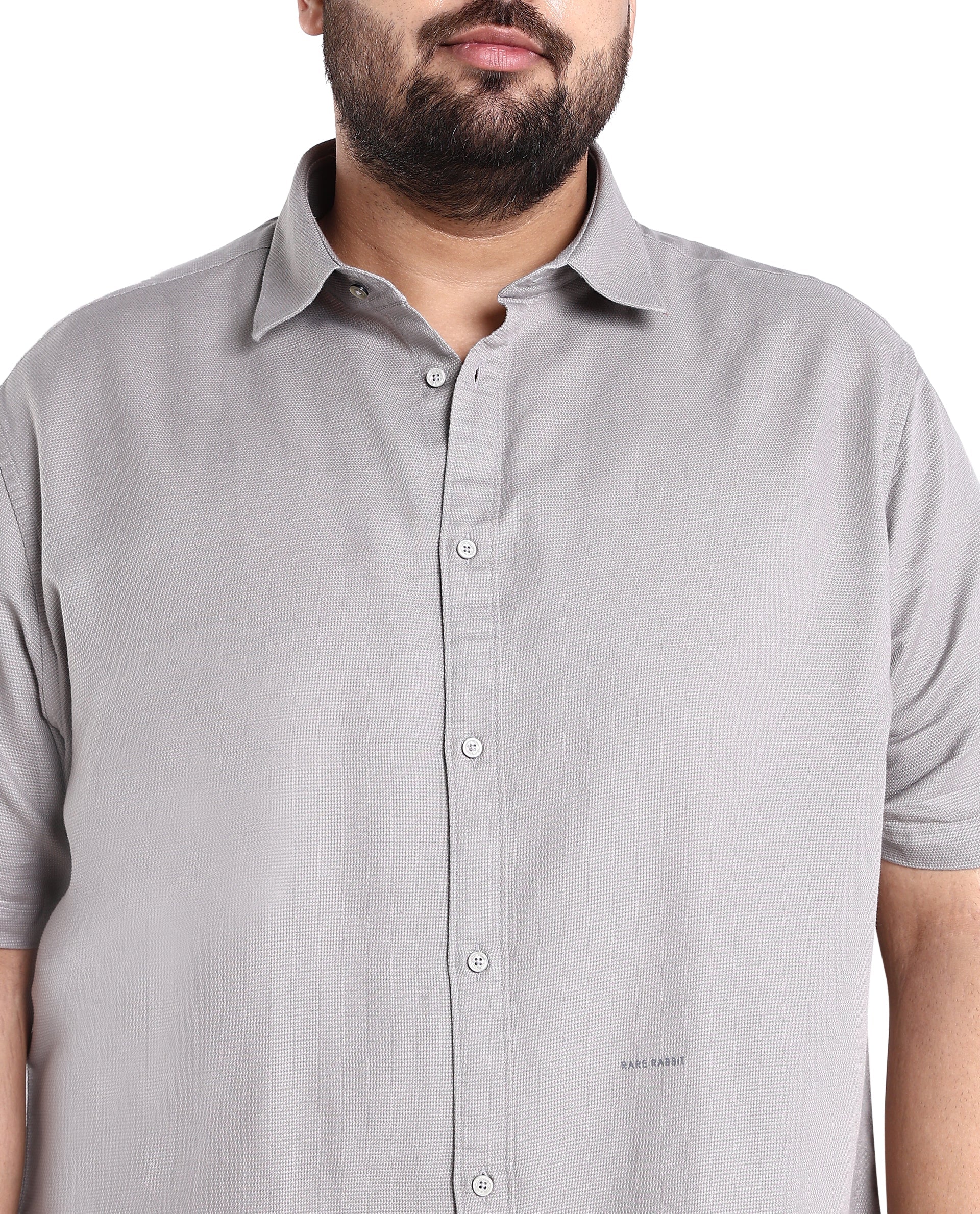 Rare Rabbit Men's Rissa Grey Cotton Fabric Half Sleeves Solid Dobby Shirt Plus Size