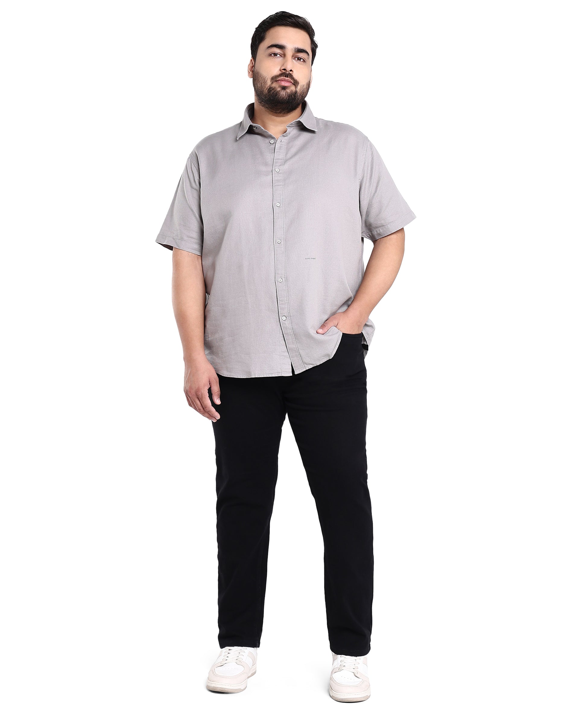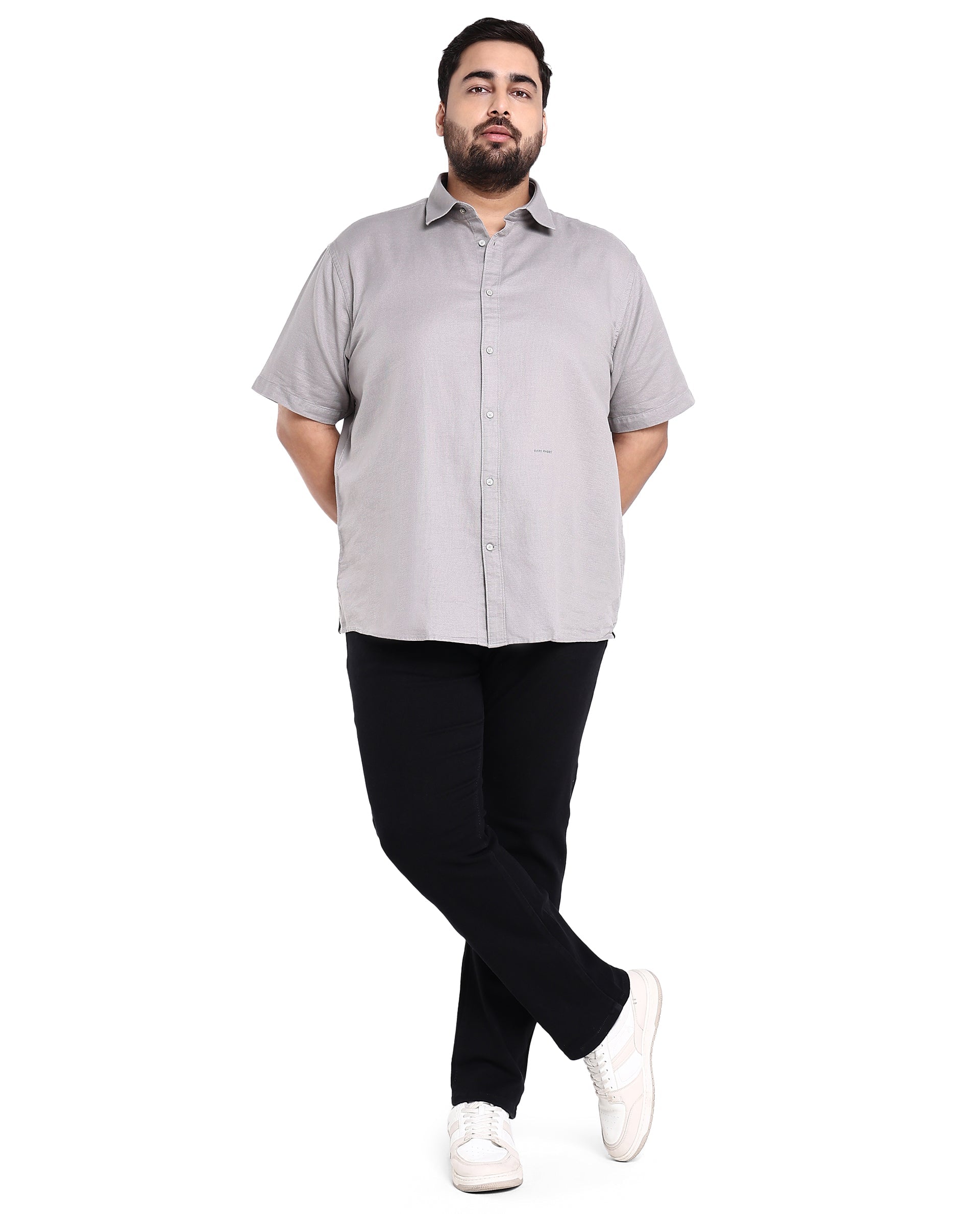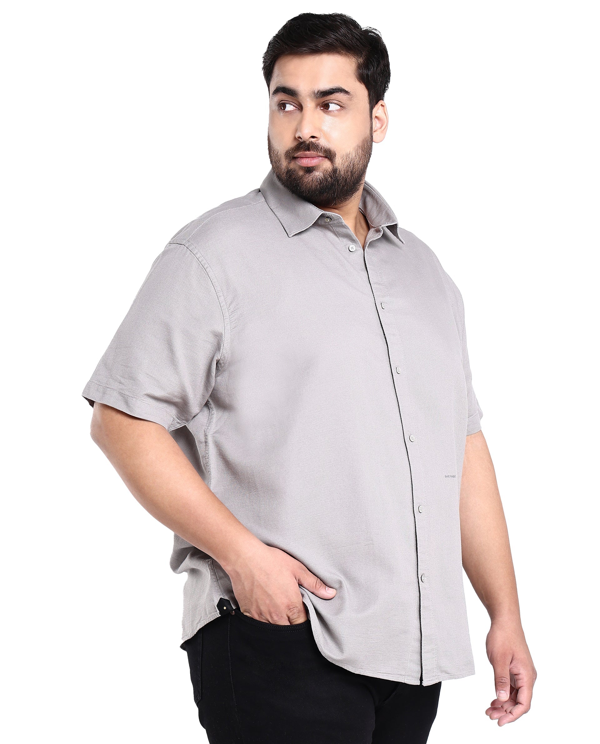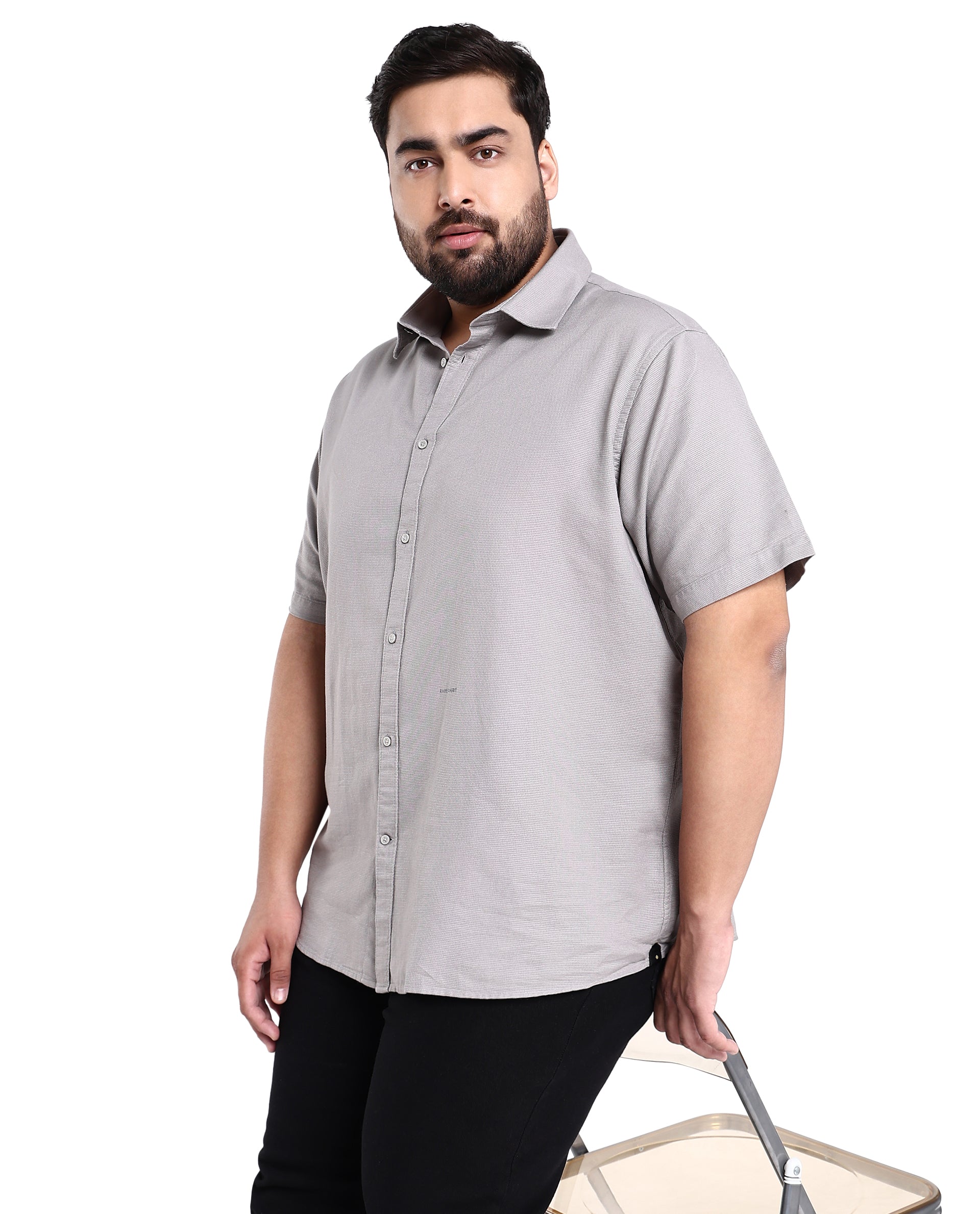 Rare Rabbit Men's Rissa Grey Cotton Fabric Half Sleeves Solid Dobby Shirt Plus Size