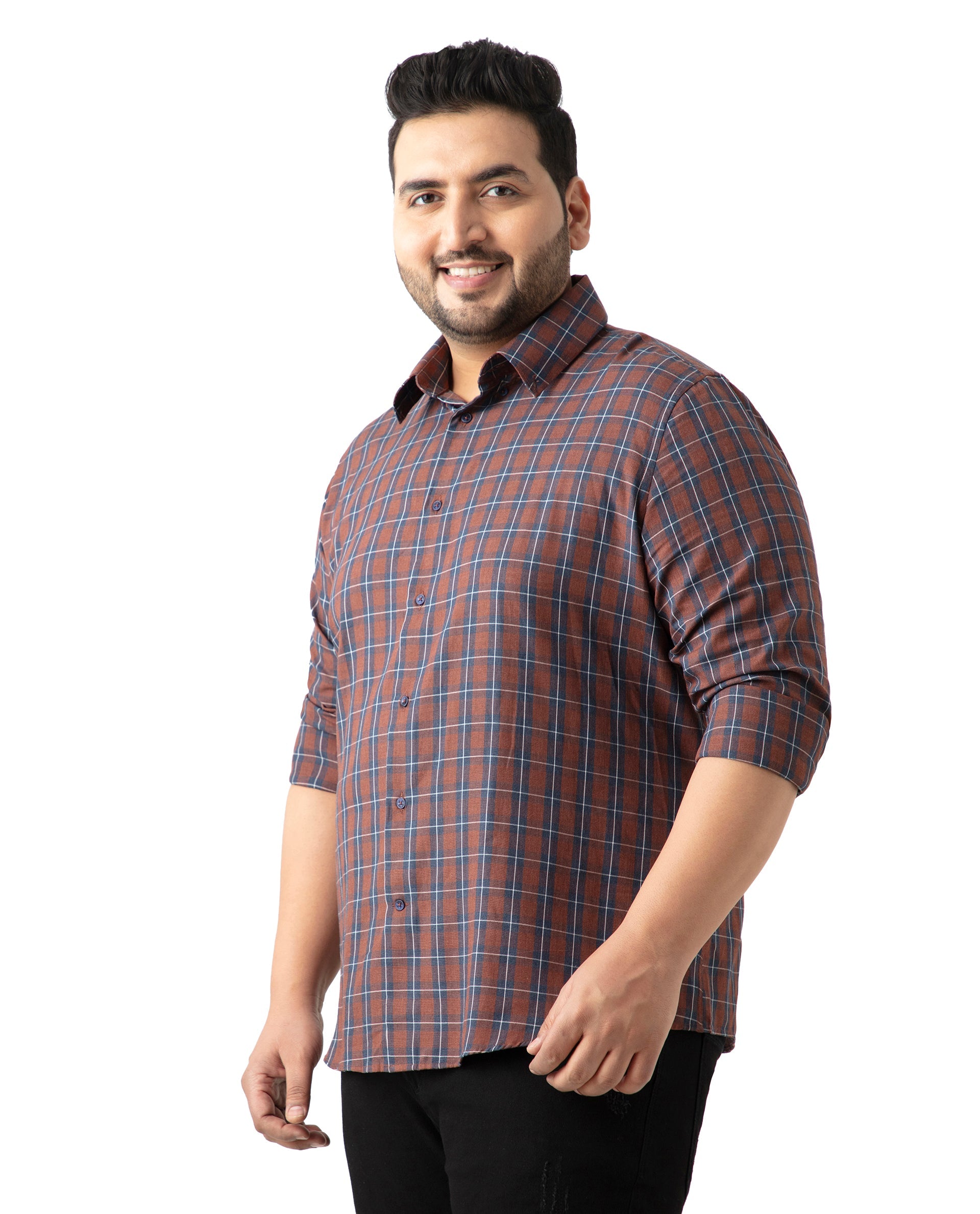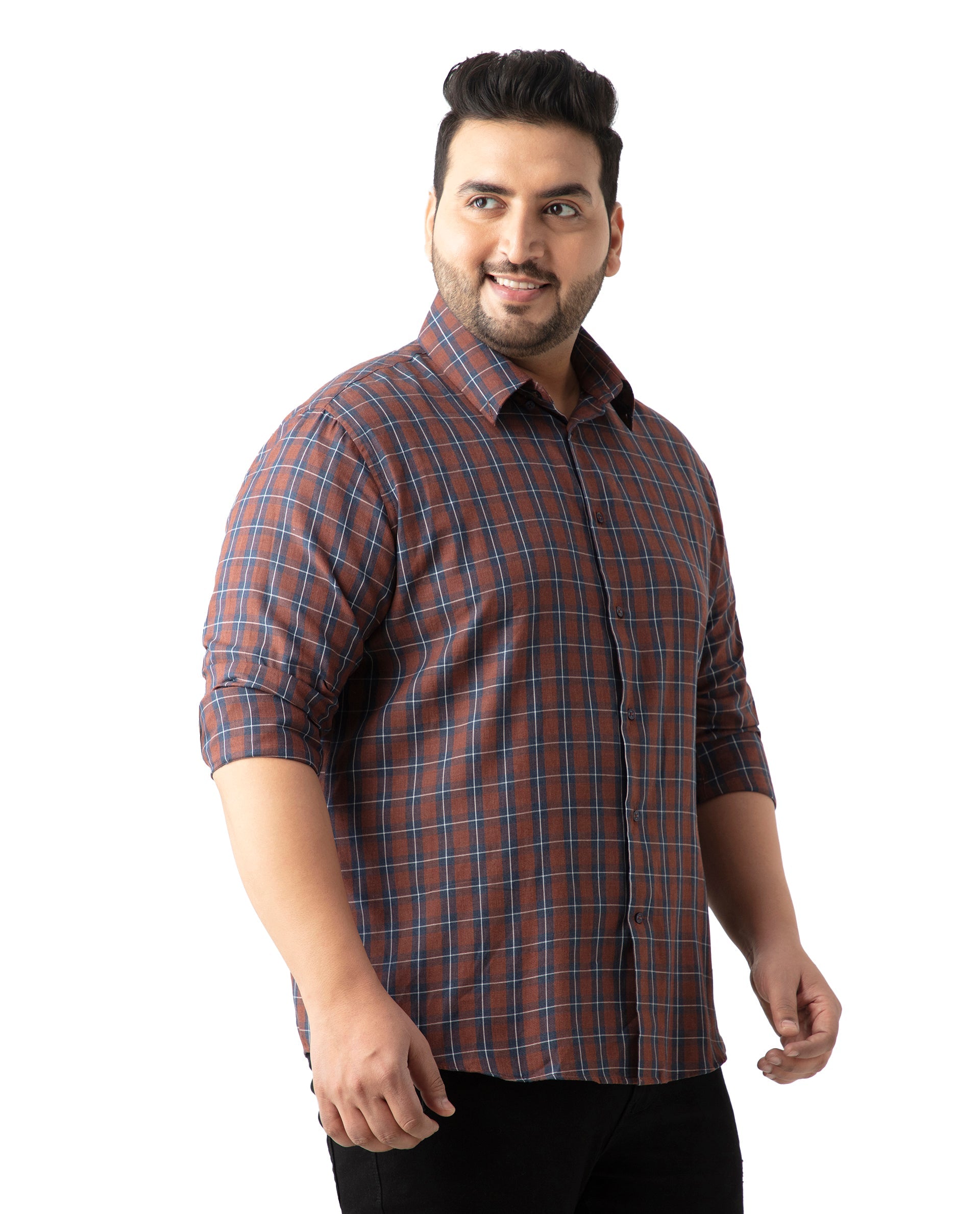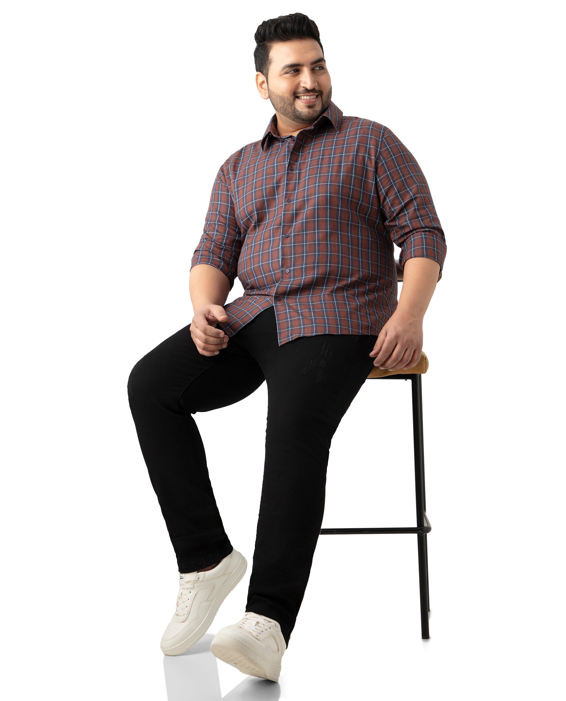 Upgrade your wardrobe with our Brown Checked Cotton Shirt, perfect for casual outings. Featuring a stylish spread collar and convenient button closure, this full-sleeve shirt offers a Plus Size fit for ultimate comfort. Crafted from high-quality cotton, it ensures breathability and durability. Ideal for any casual occasion, this checked shirt combines classic design with modern style. Shop now to add a versatile piece to your collection.