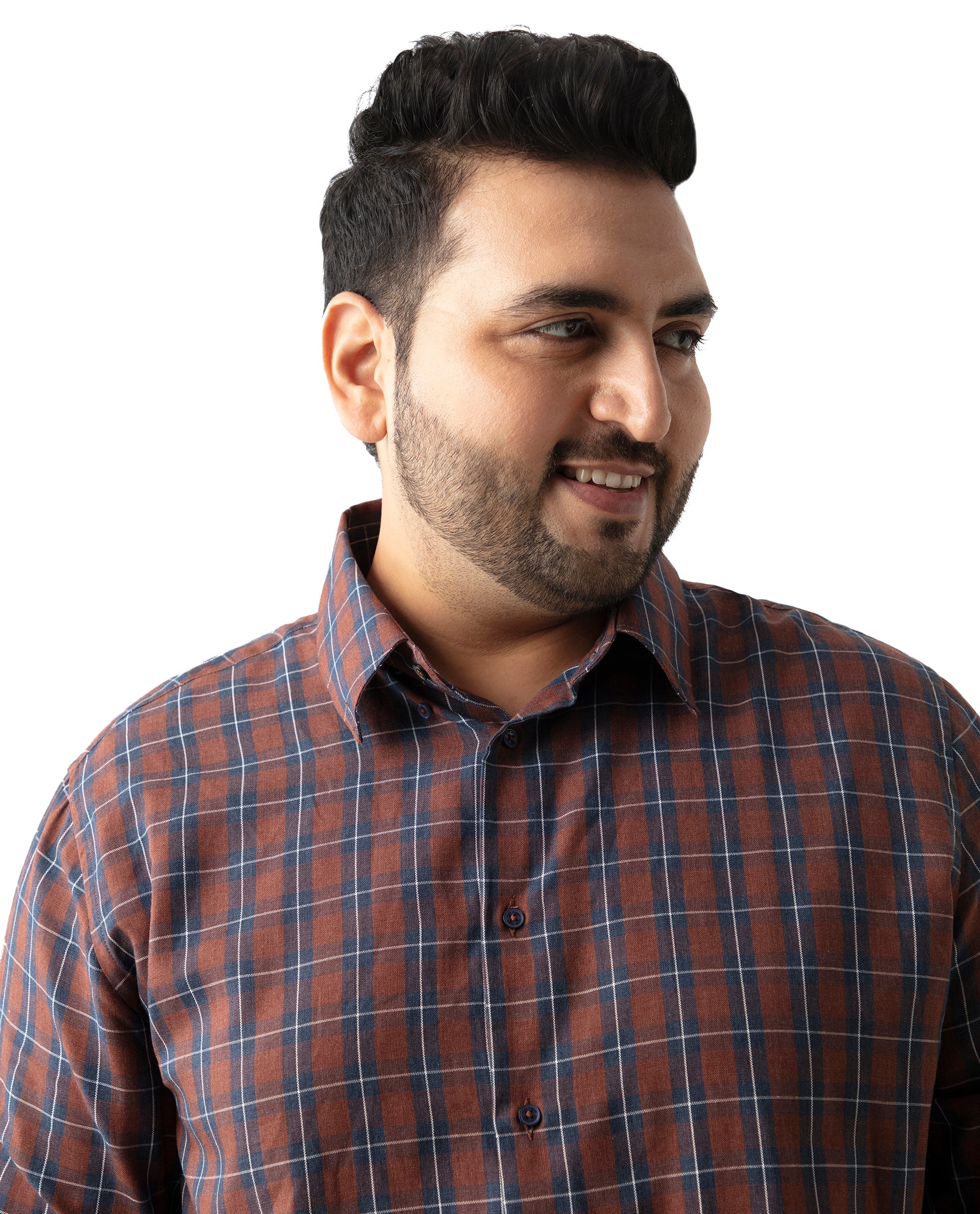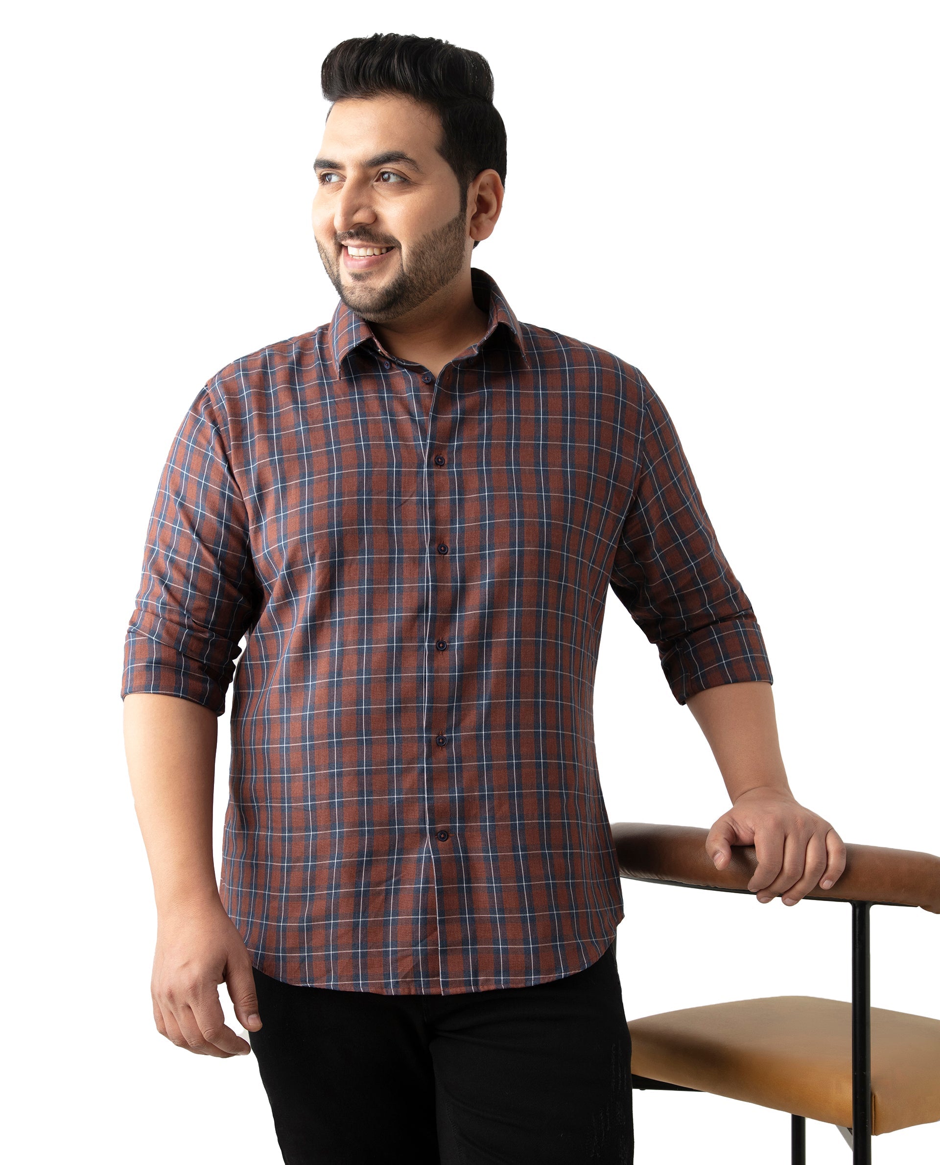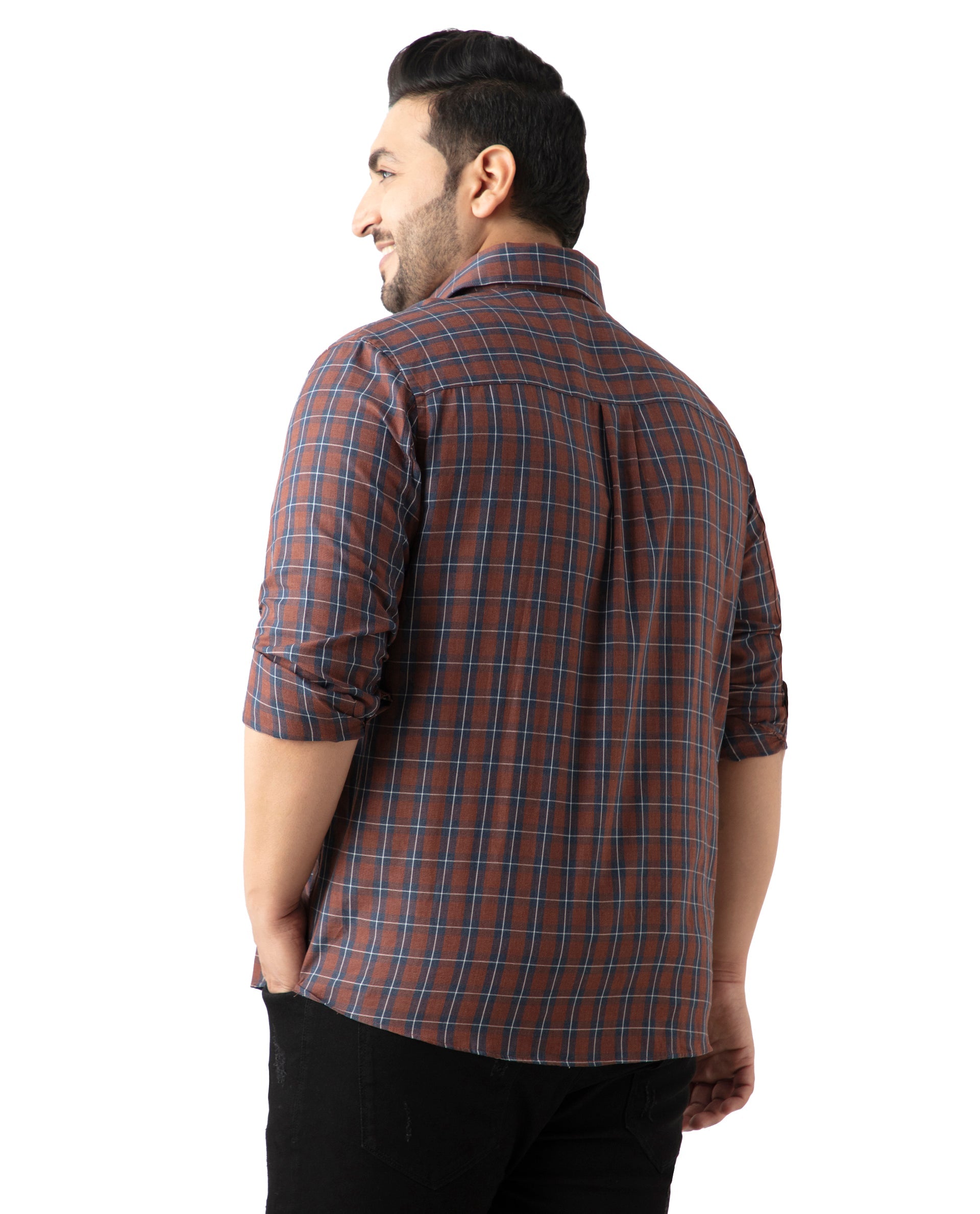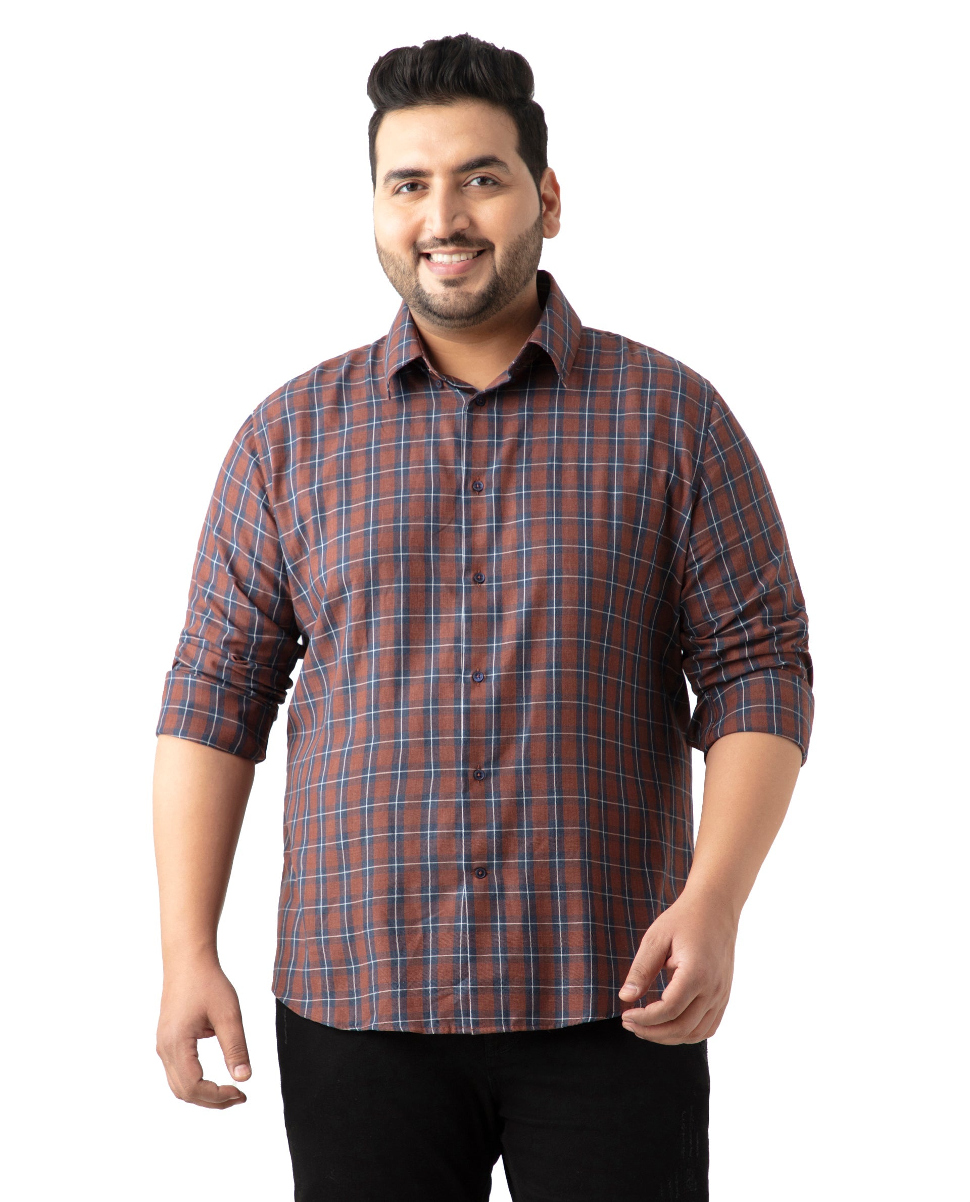 Upgrade your wardrobe with our Brown Checked Cotton Shirt, perfect for casual outings. Featuring a stylish spread collar and convenient button closure, this full-sleeve shirt offers a Plus Size fit for ultimate comfort. Crafted from high-quality cotton, it ensures breathability and durability. Ideal for any casual occasion, this checked shirt combines classic design with modern style. Shop now to add a versatile piece to your collection.