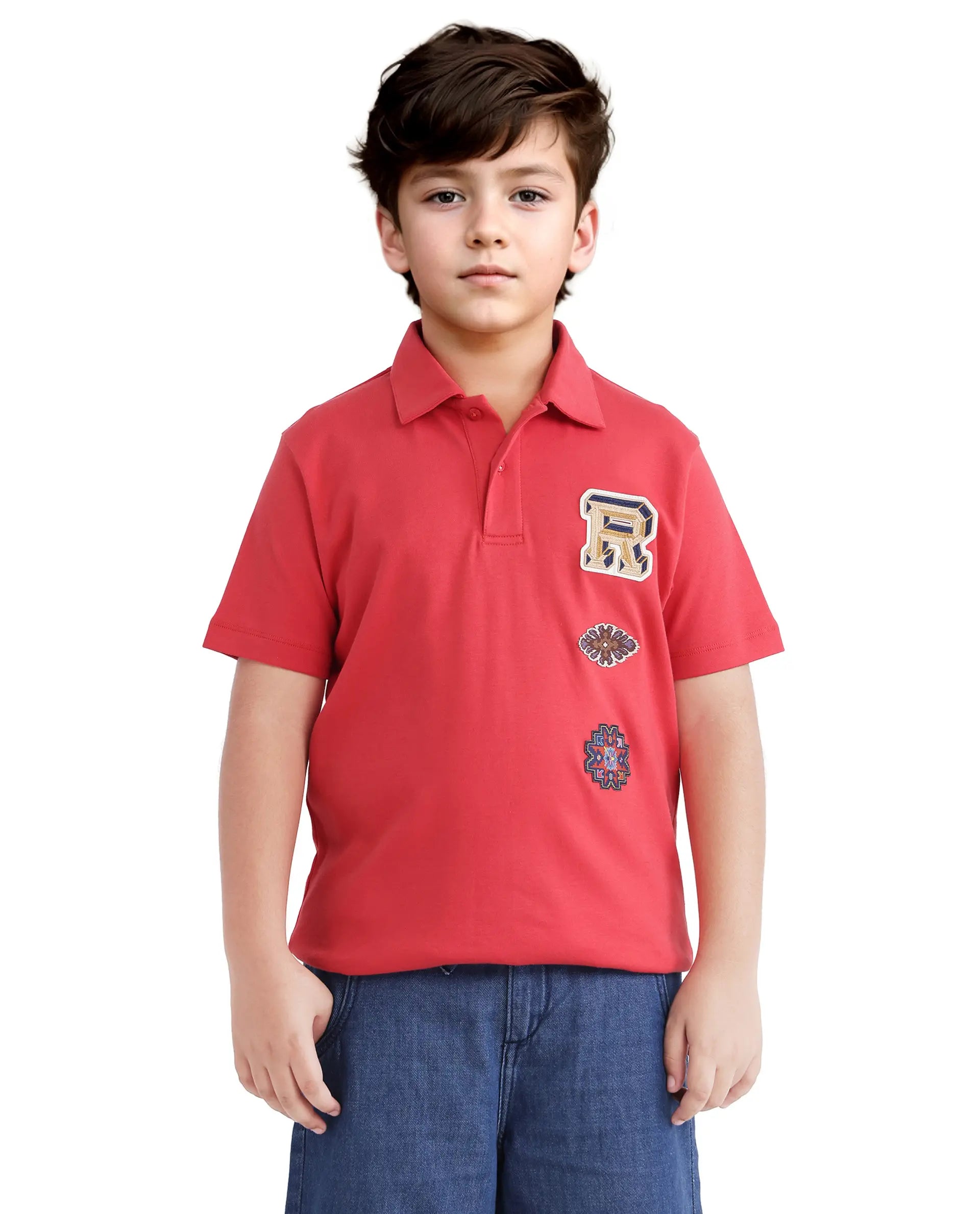 Rare Ones Kids Zyra Red Cotton Half Sleeve Button Closure Printed Regular Fit Polo