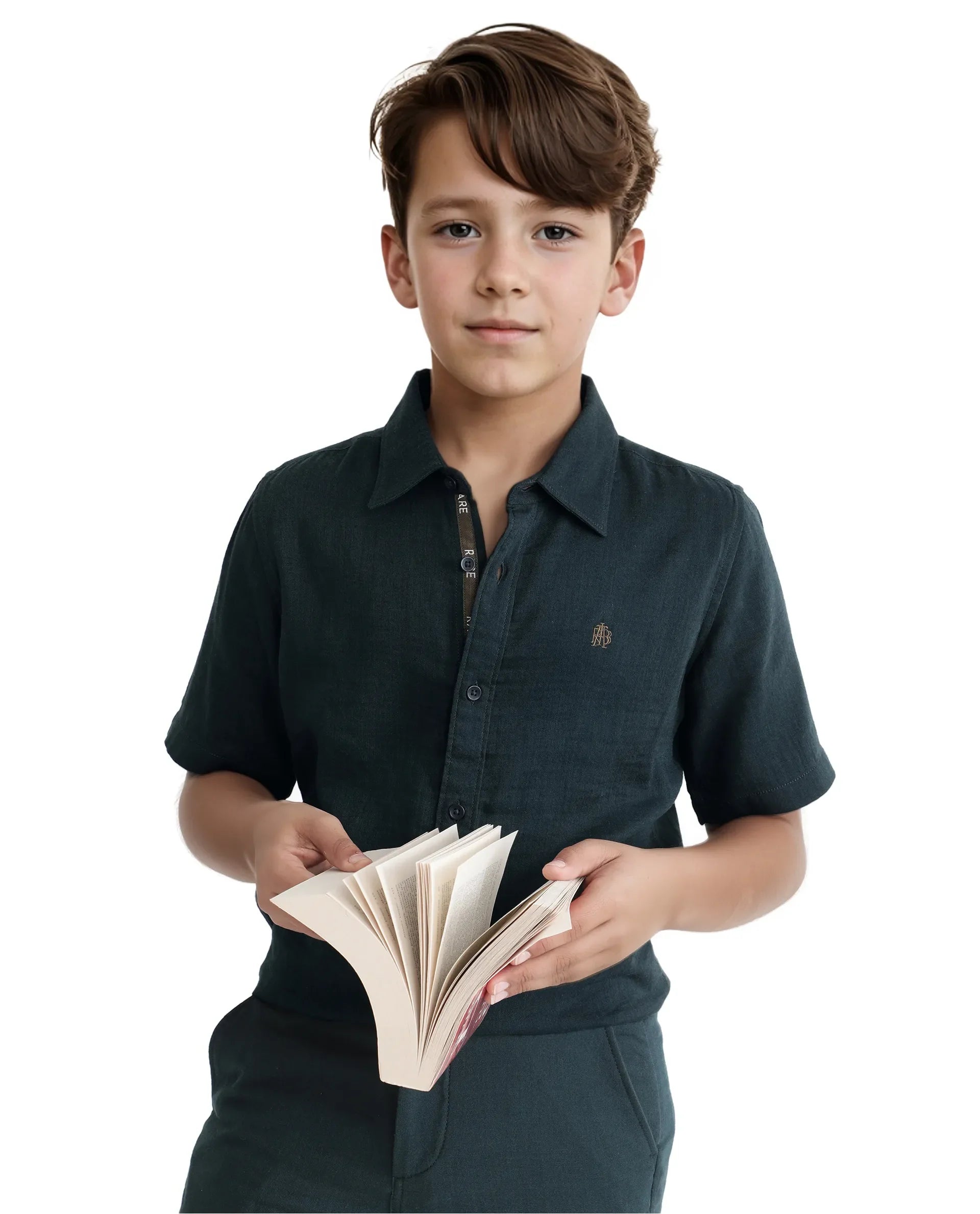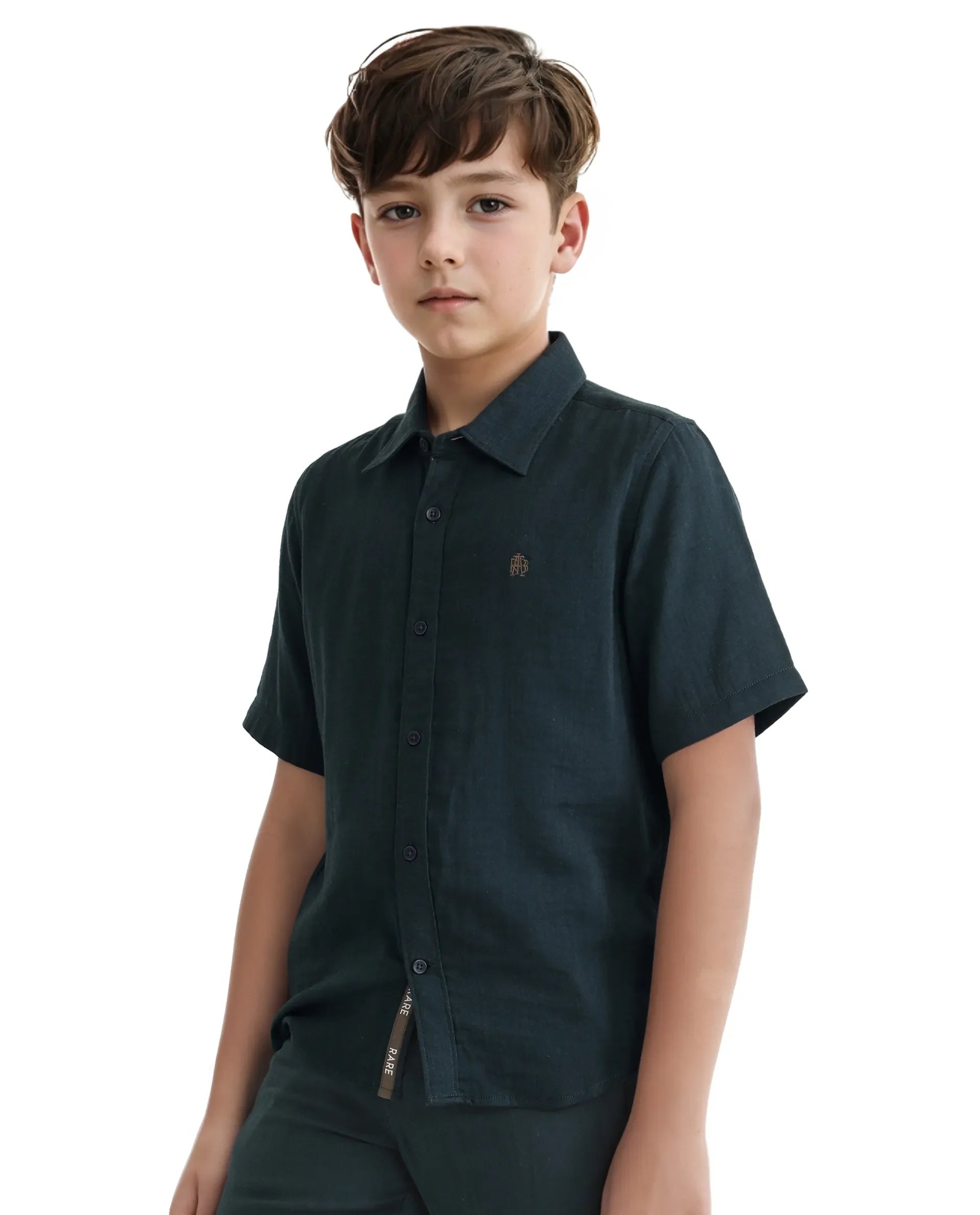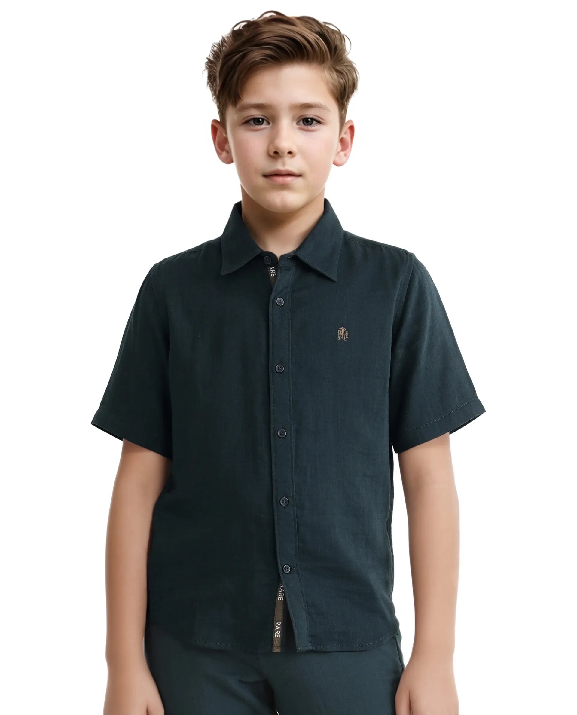 Rare Ones Kids Layerr Hs-K Teal Cotton Short Sleeve Spread Collar Solid Shirt