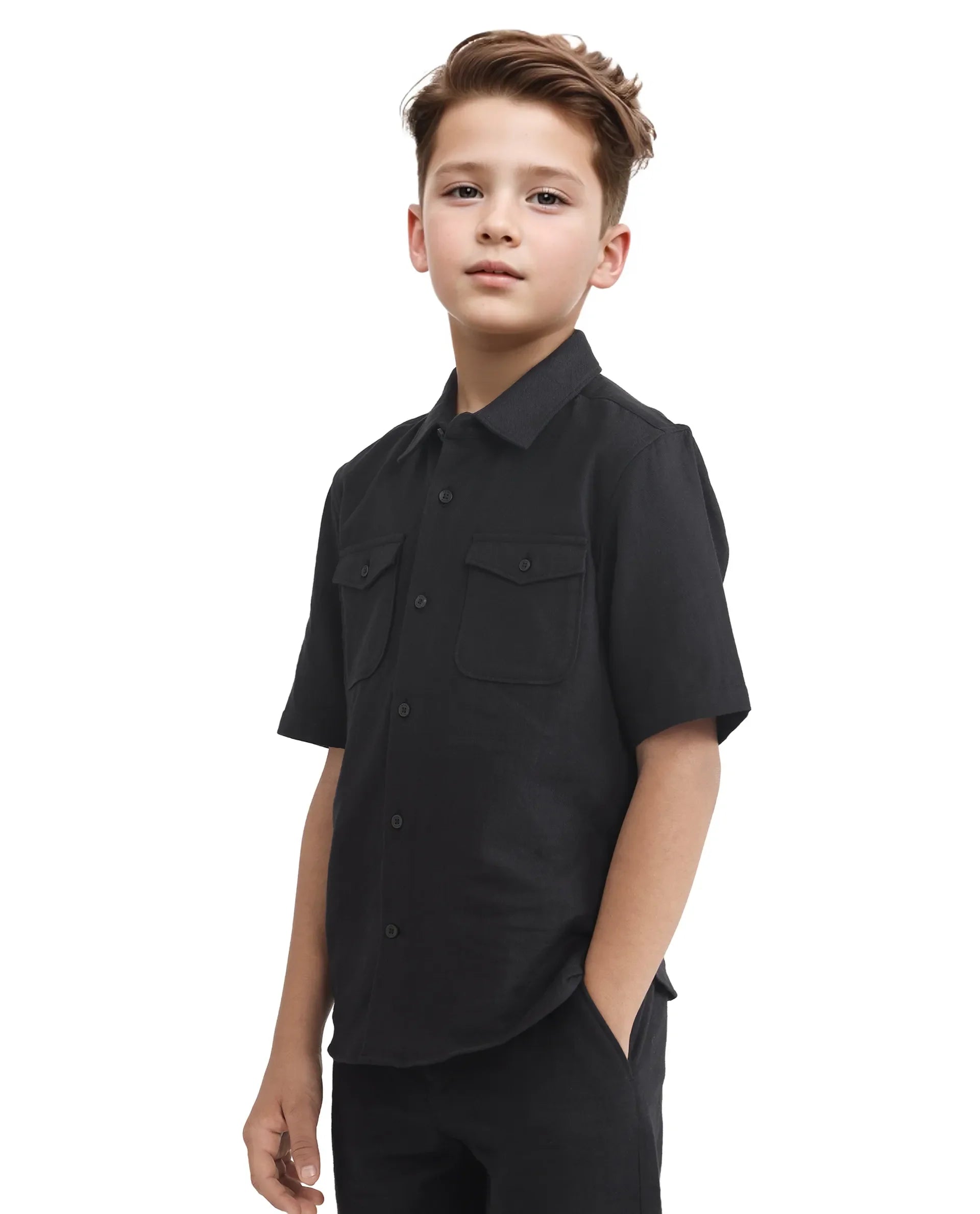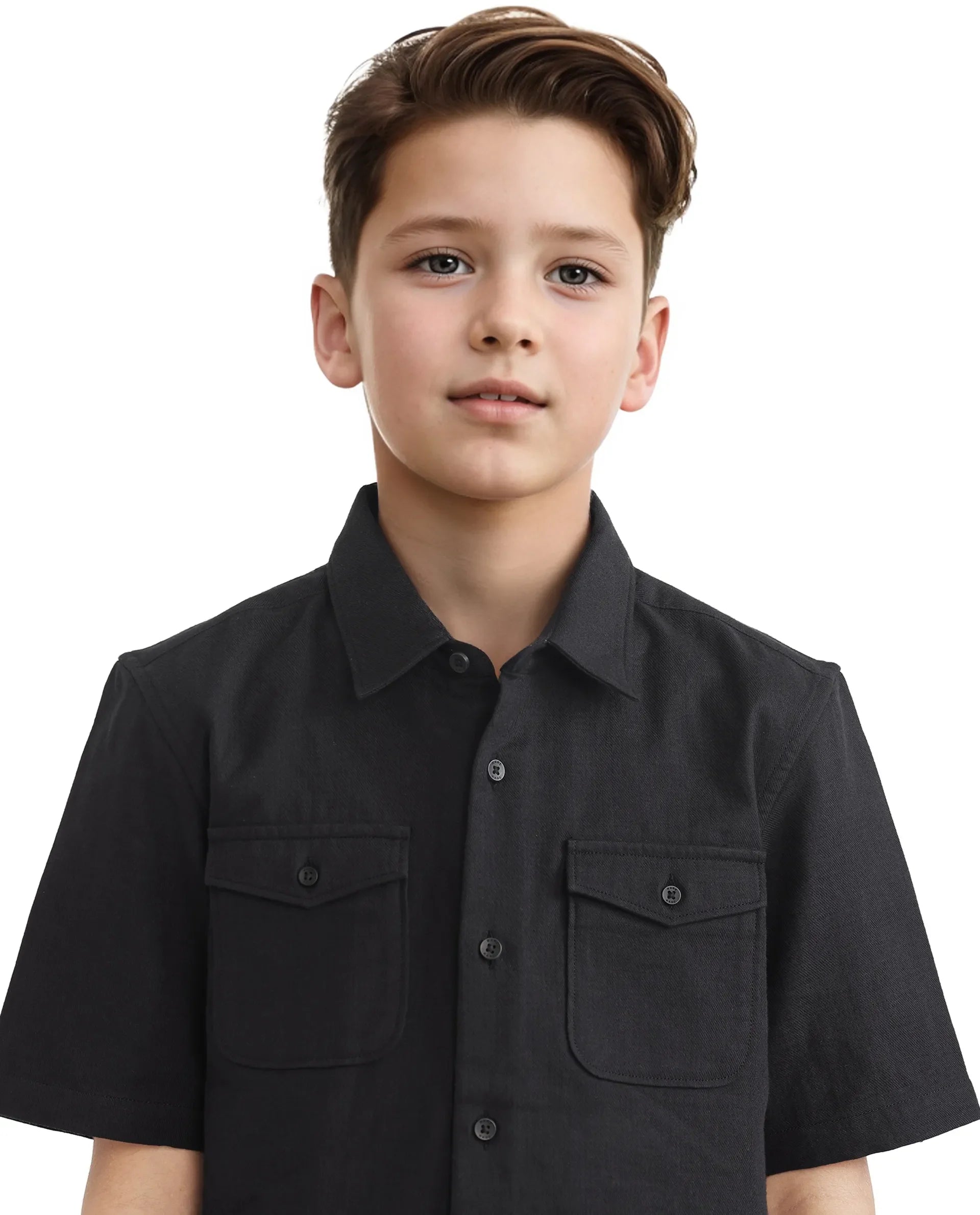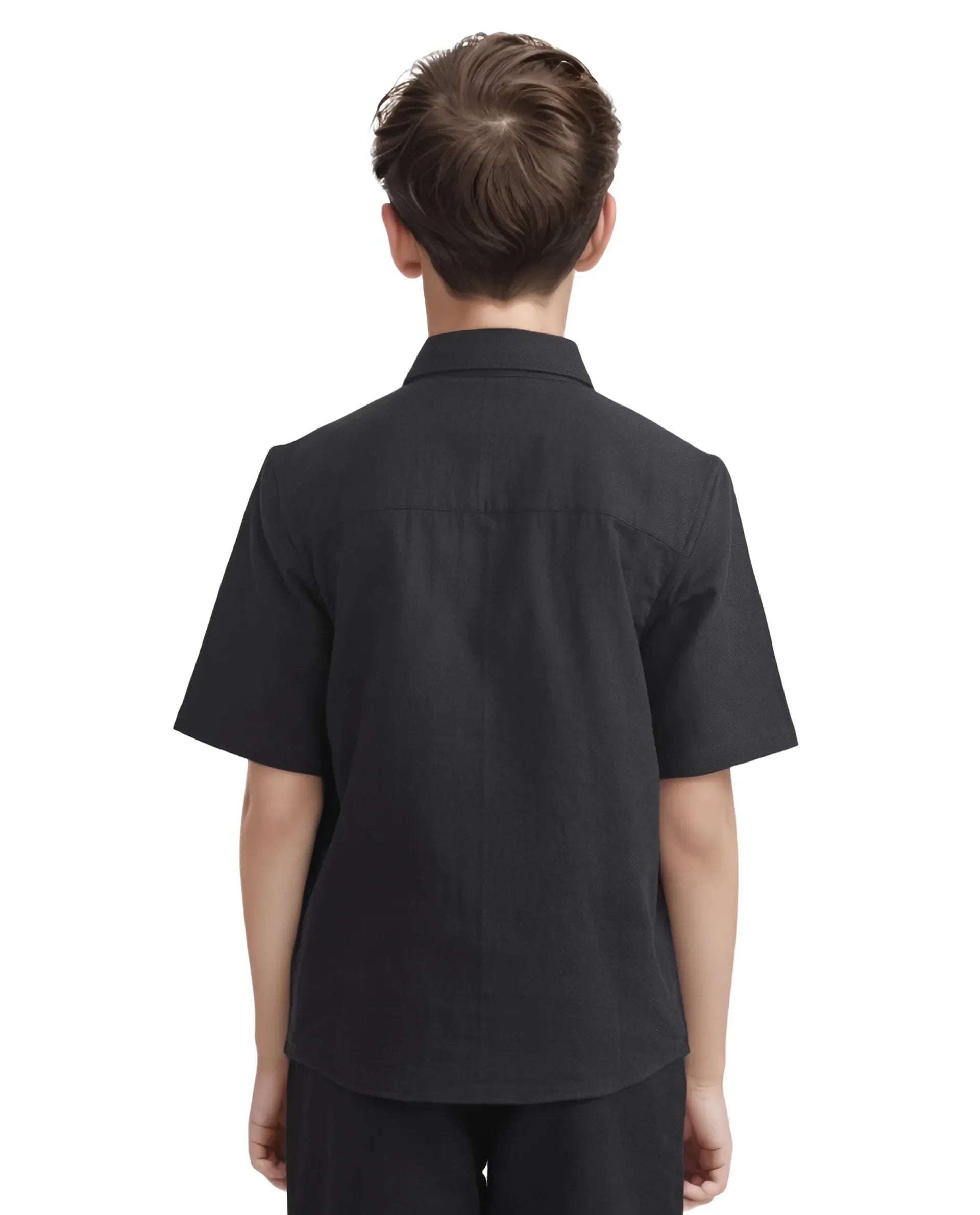 Rare Ones Kids Prest-K Black Cotton Short Sleeve Plain Regular Shirt