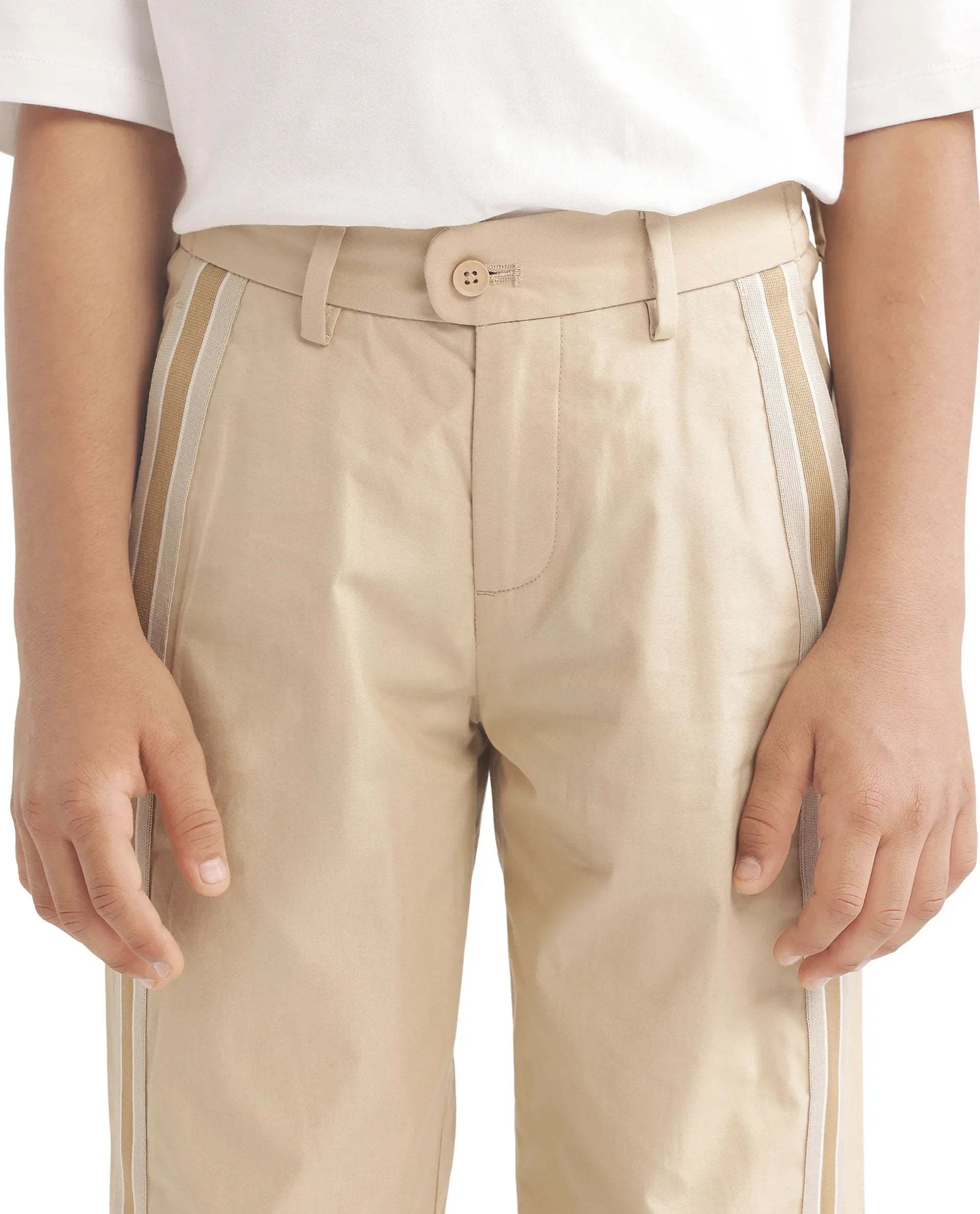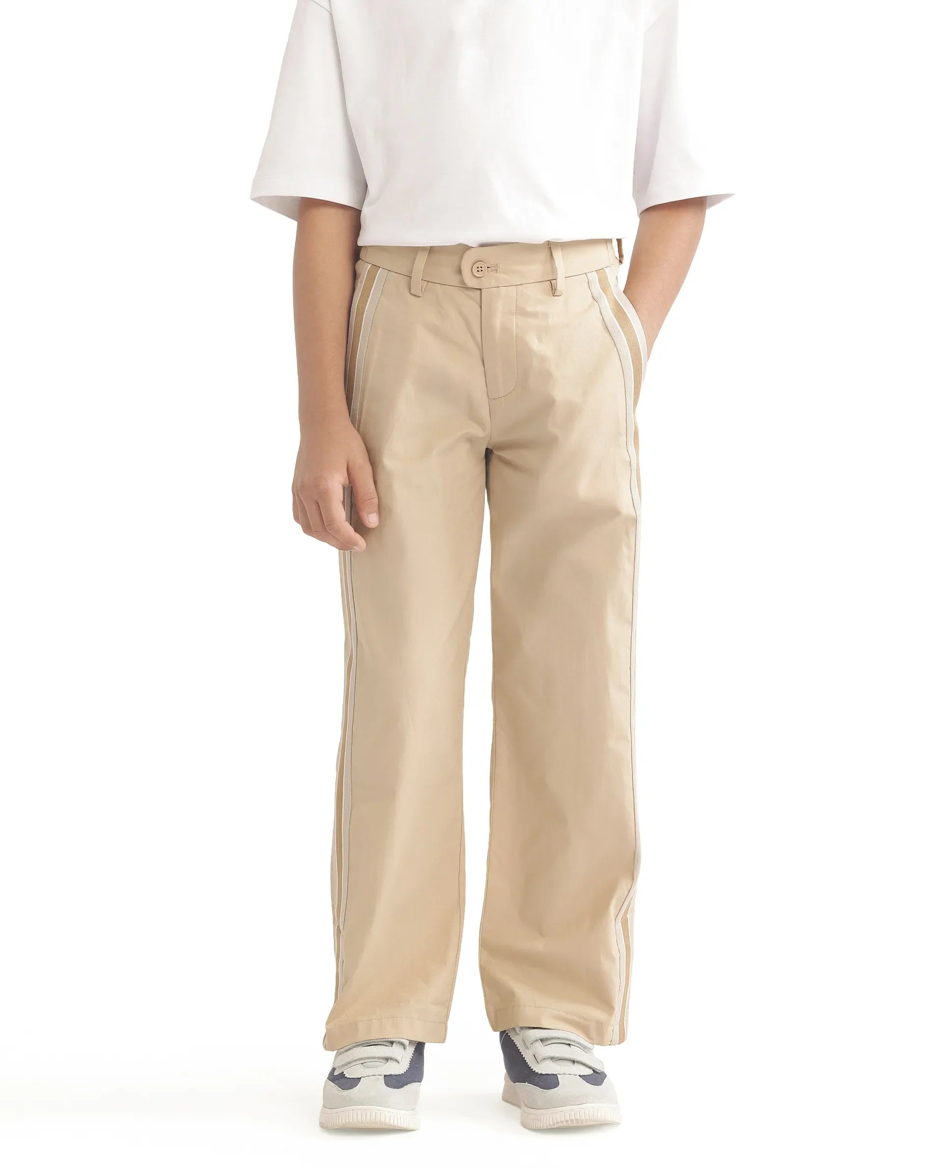 Rare Ones Kids Taper-B Beige Button & Zip Closure Regular Fit Tape Detailed Cotton Trouser