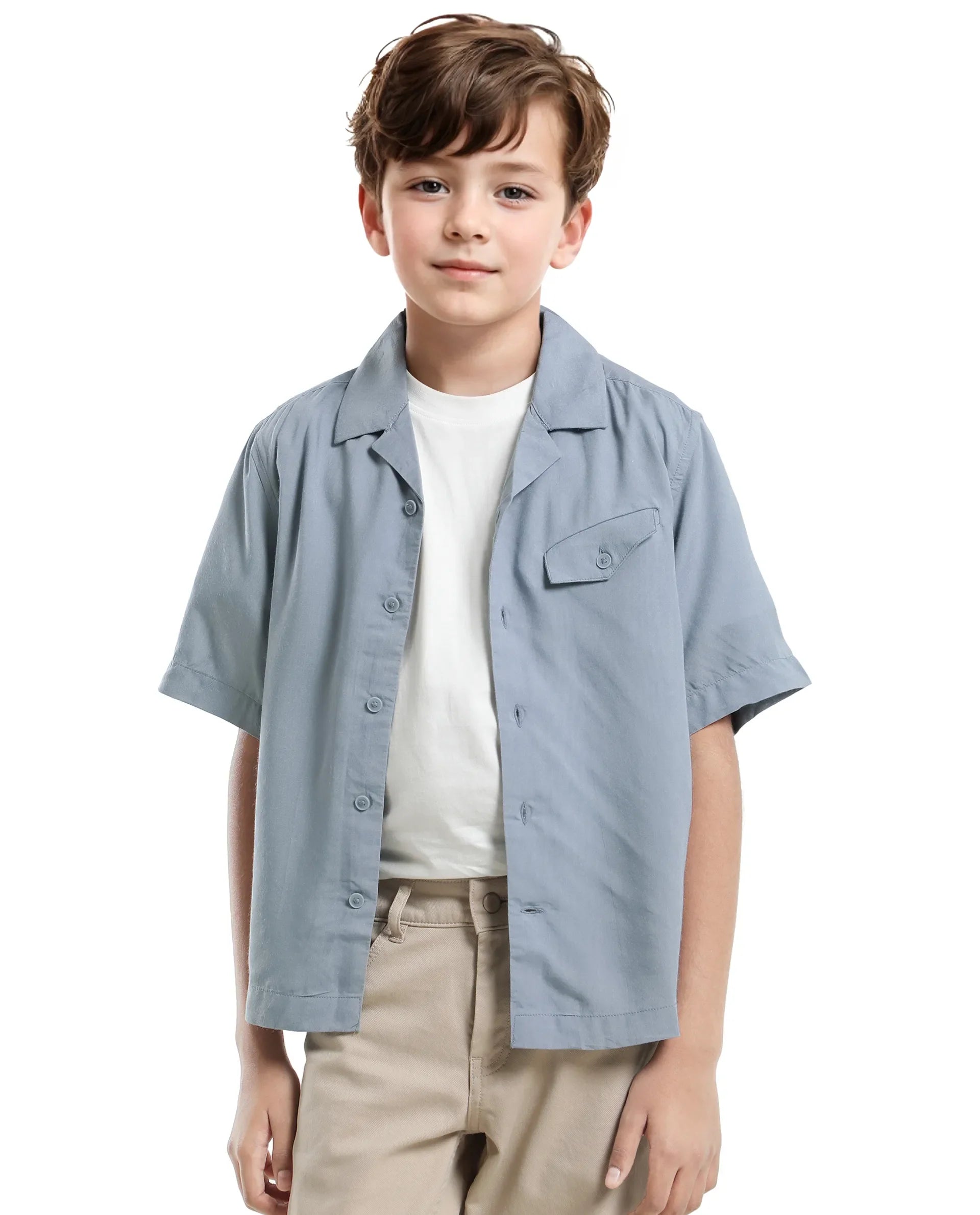Rare Ones Kids Dubex Dusky Blue Modal Short Sleeve Solid Shirt