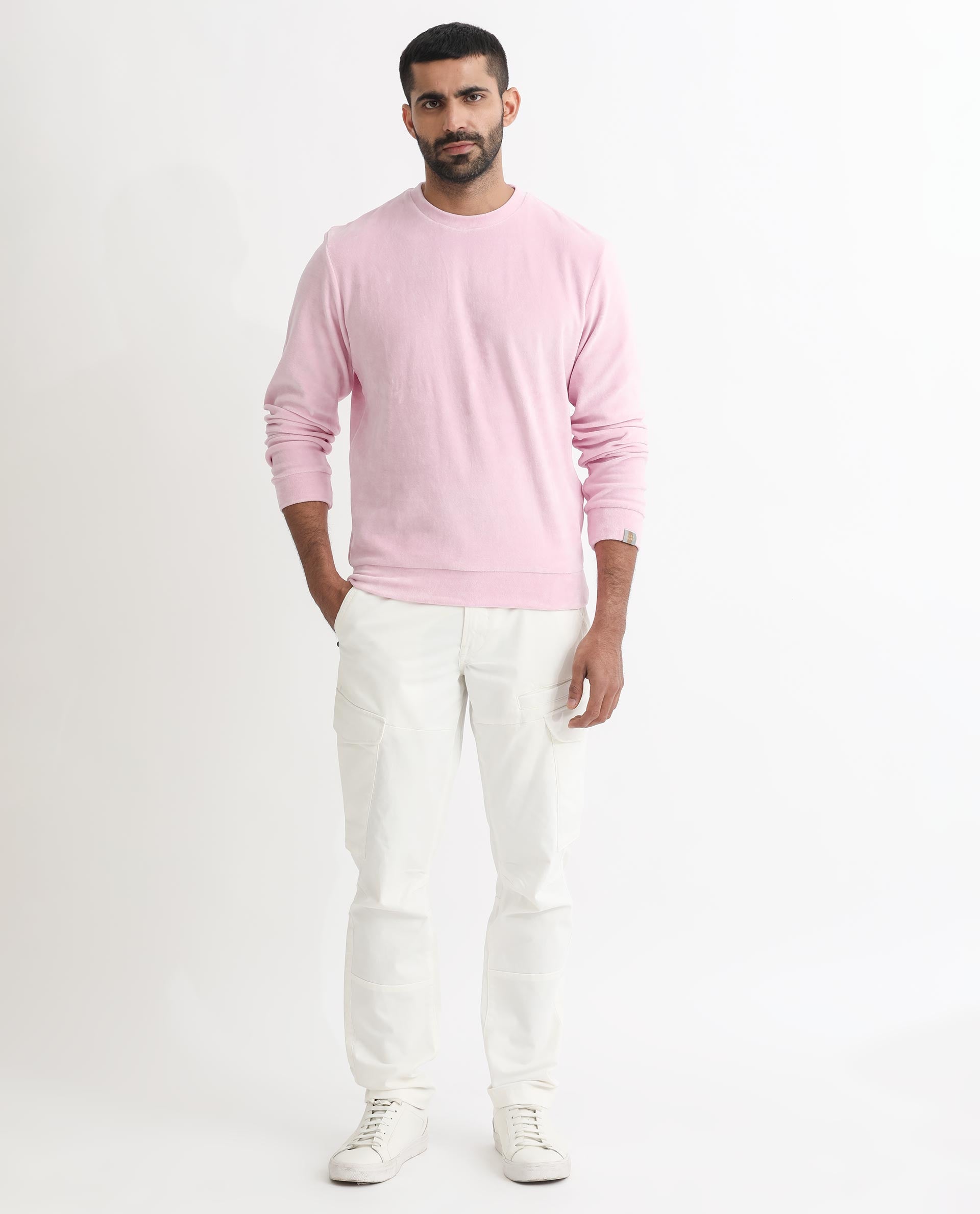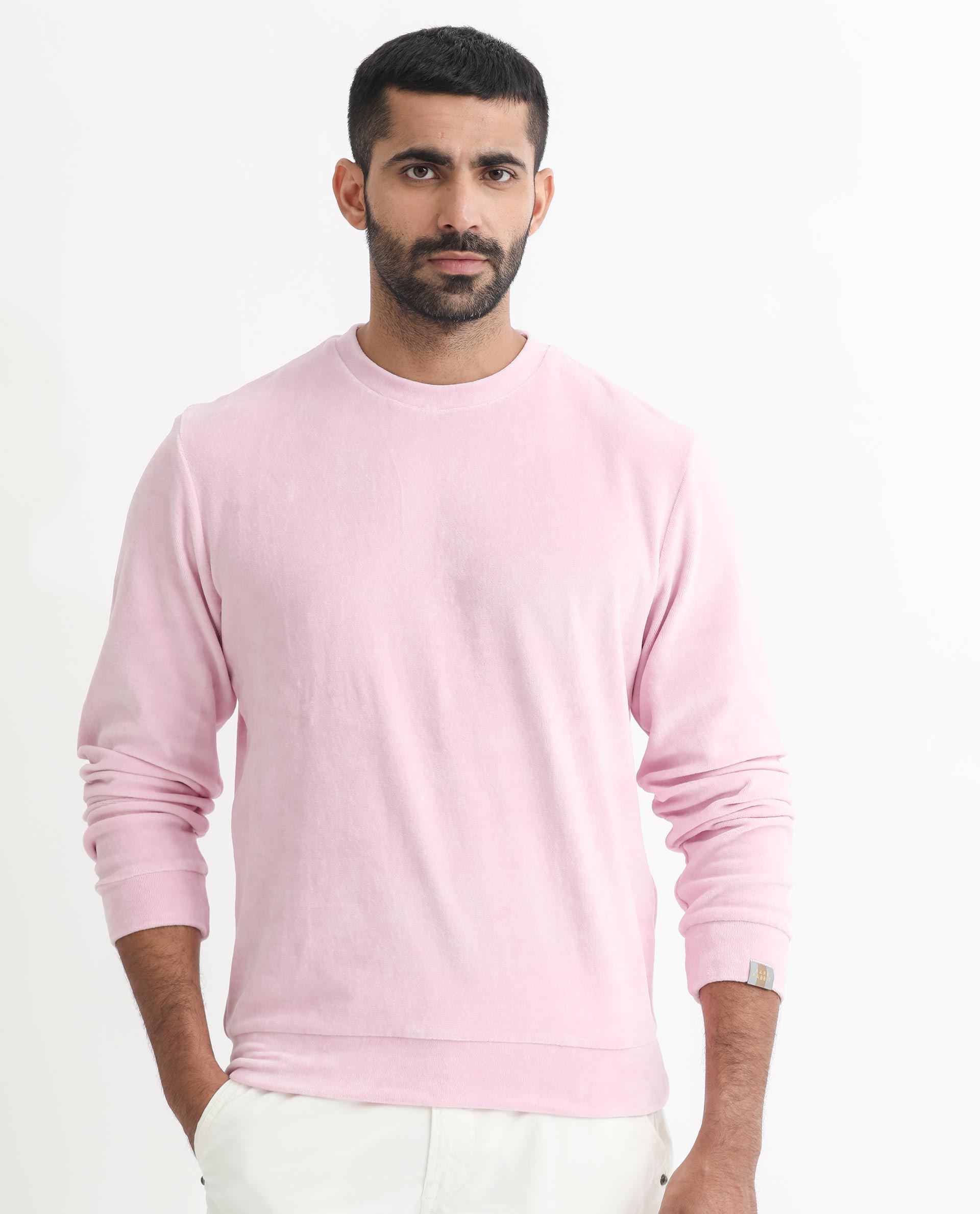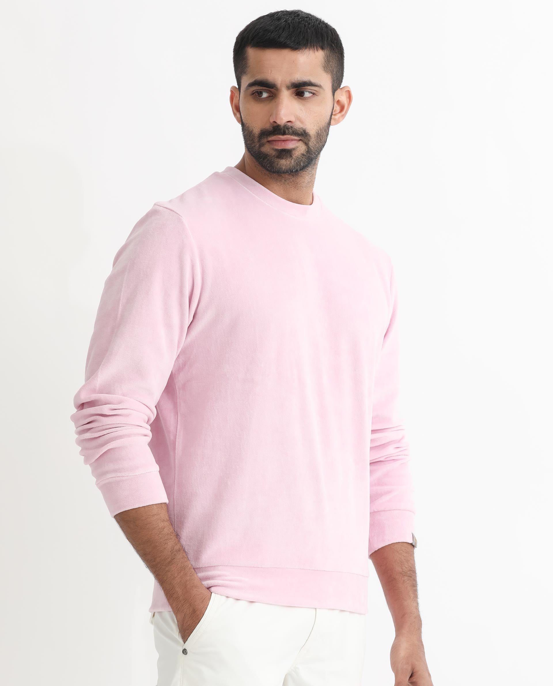 Rare Rabbit Mens Dube Pink Cotton Polyester Vellore Velvet Fabric Round Neck Full Sleeves Comfortable Fit Knitted Sweatshirt