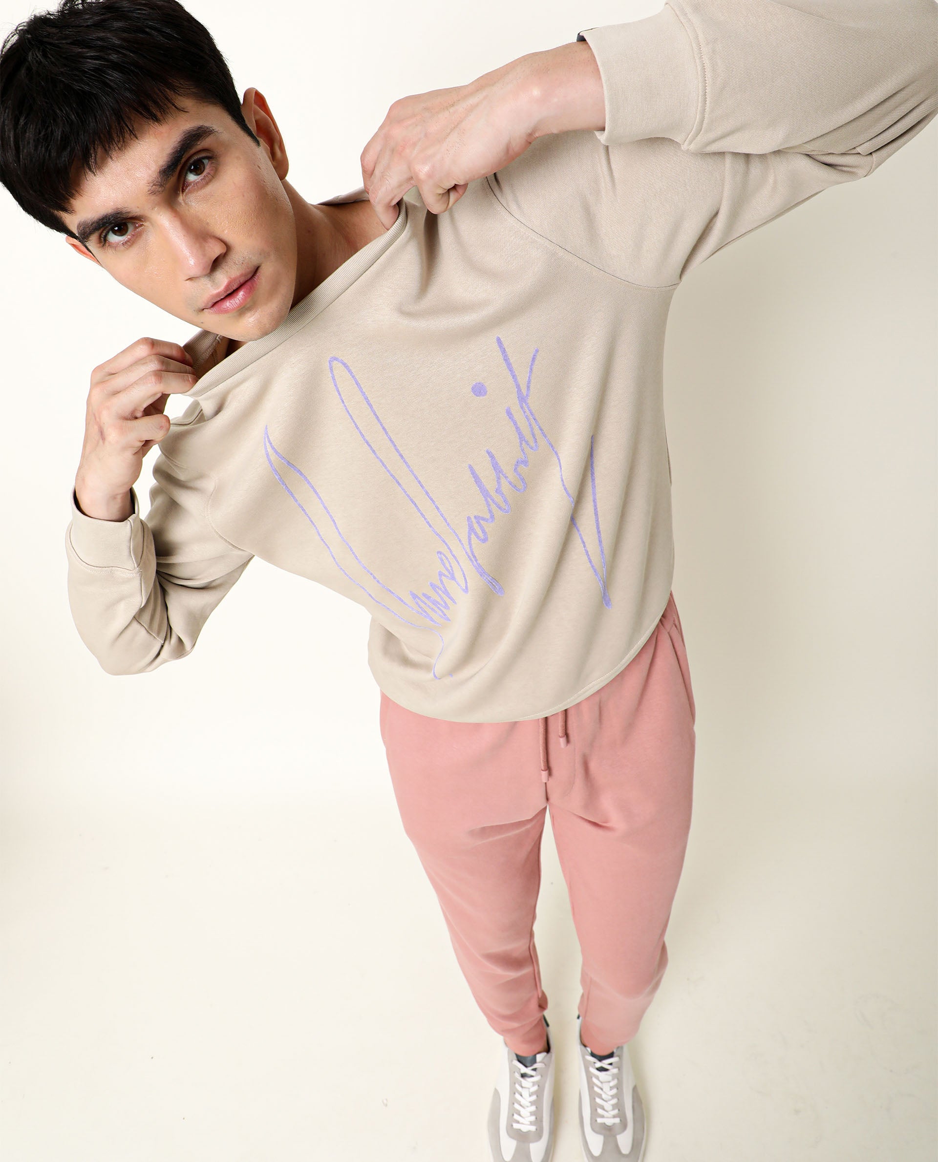 Rare Rabbit Men's Flocker Beige Cotton Polyester Fabric Full Sleeves Signature Branding Sweatshirt