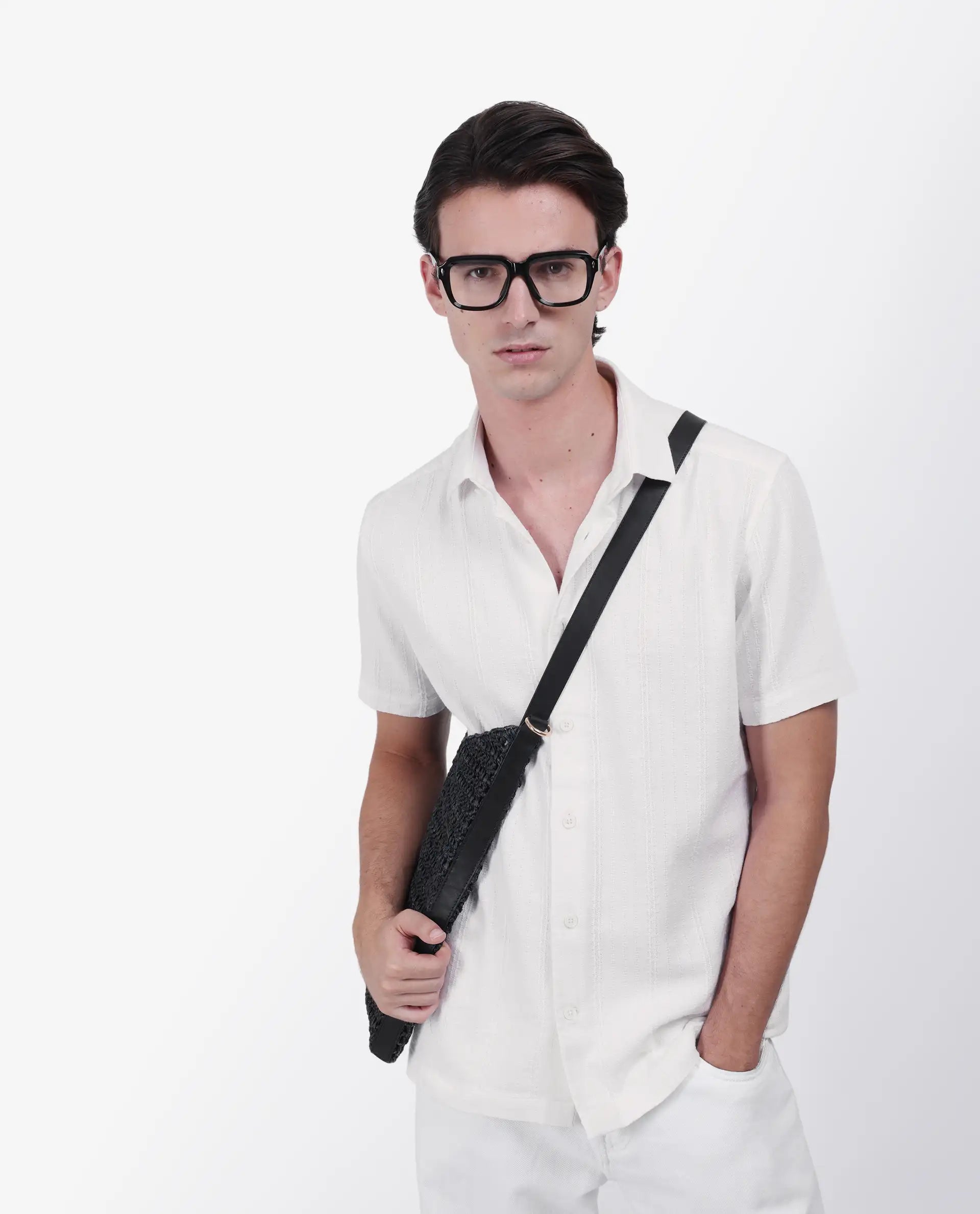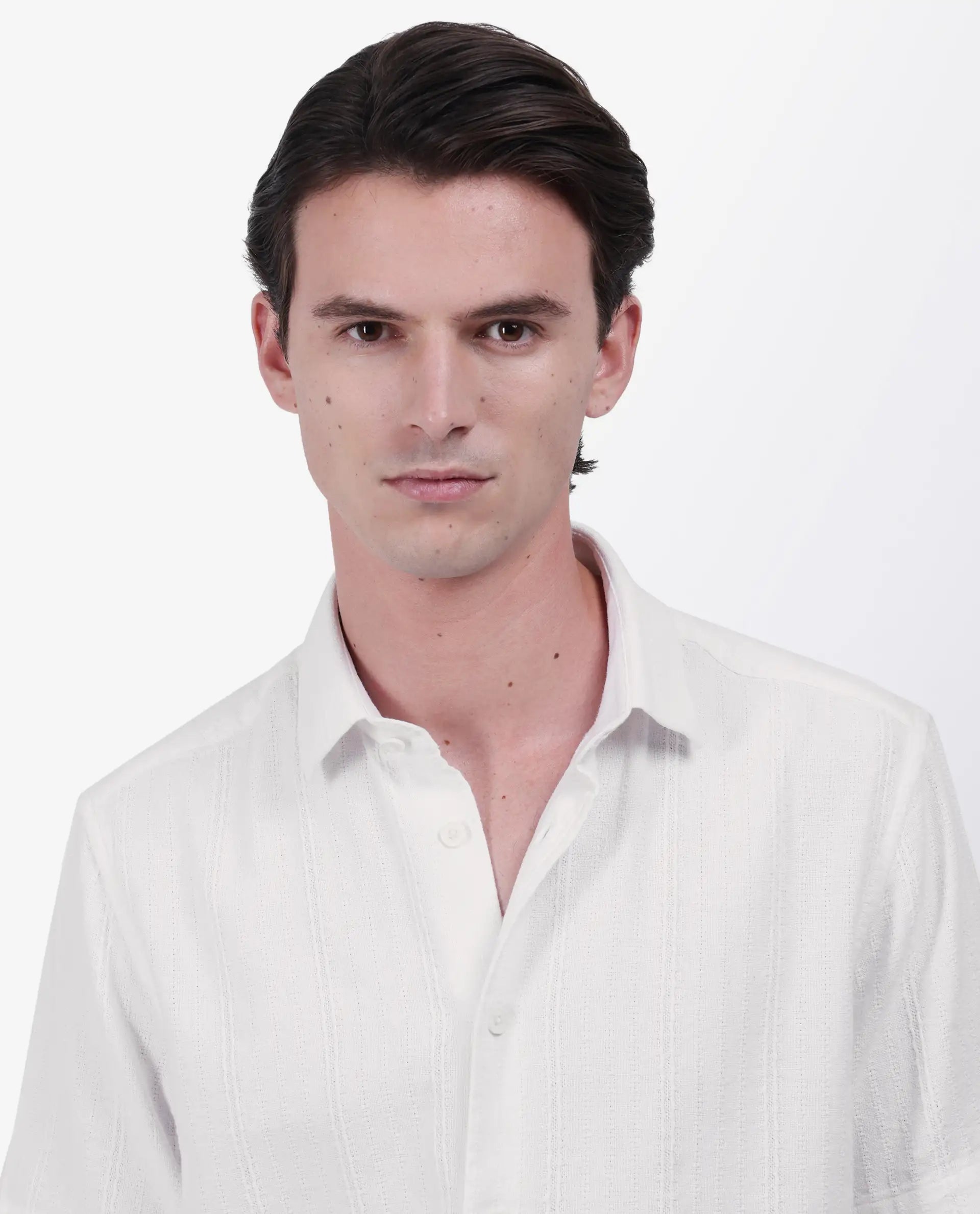 Rare Rabbit Men's Zolt White Cotton Fabric Short Sleeve Collared Neck Button Closure Striped Shirt