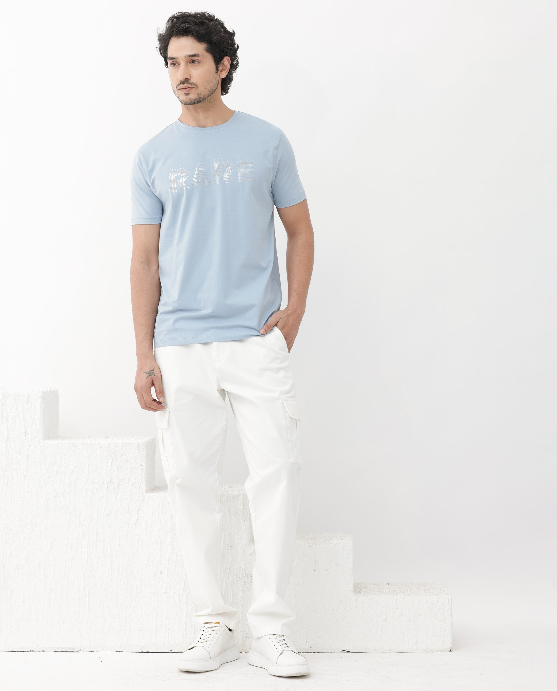 Rare Rabbit Mens Eso Light Blue Short Sleeve Graphic Print Regular Fit T-Shirt