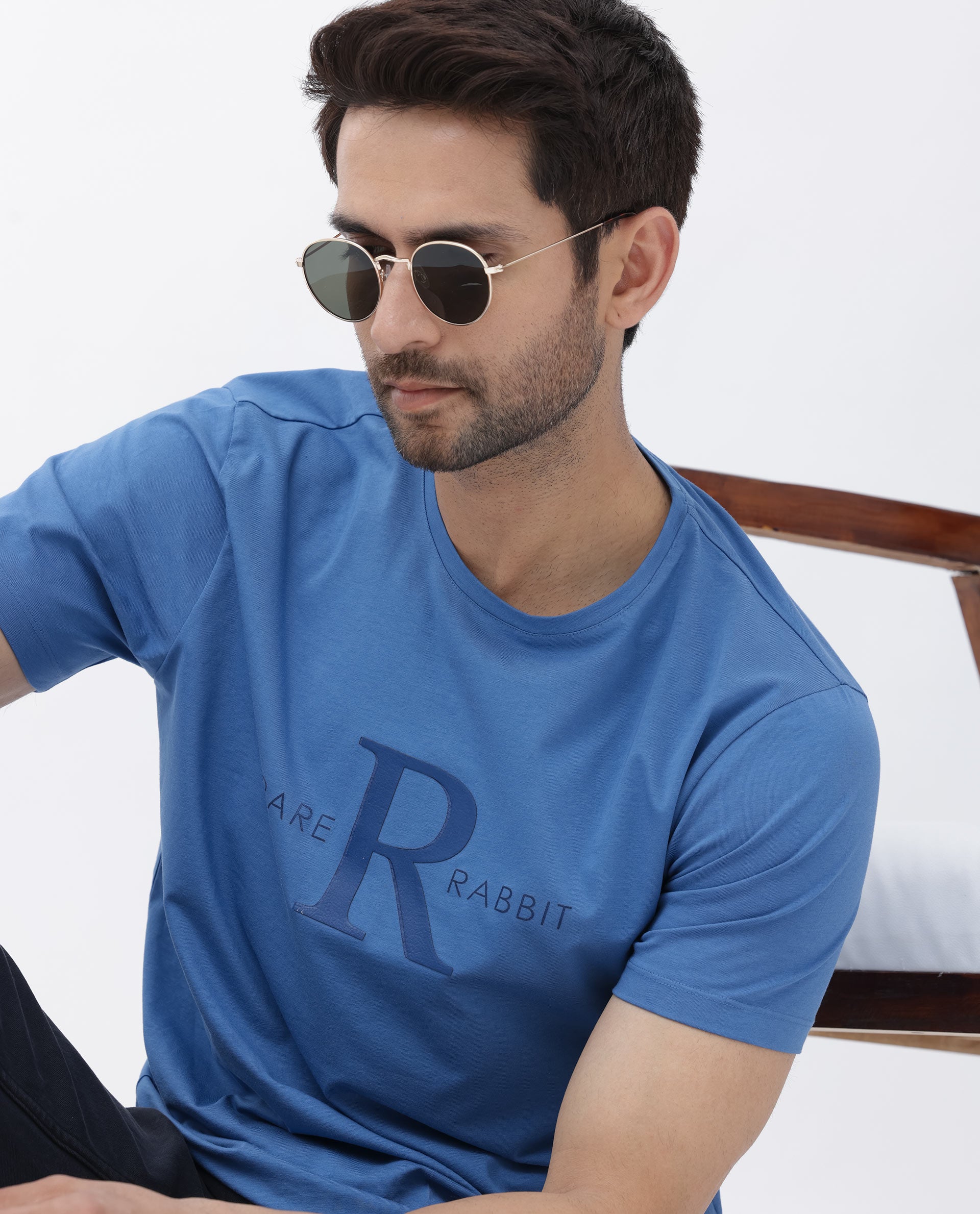Rare Rabbit Mens Sorin Turq Cotton Lycra Fabric Short Sleeve Regular Fit Graphic Print T-Shirt
