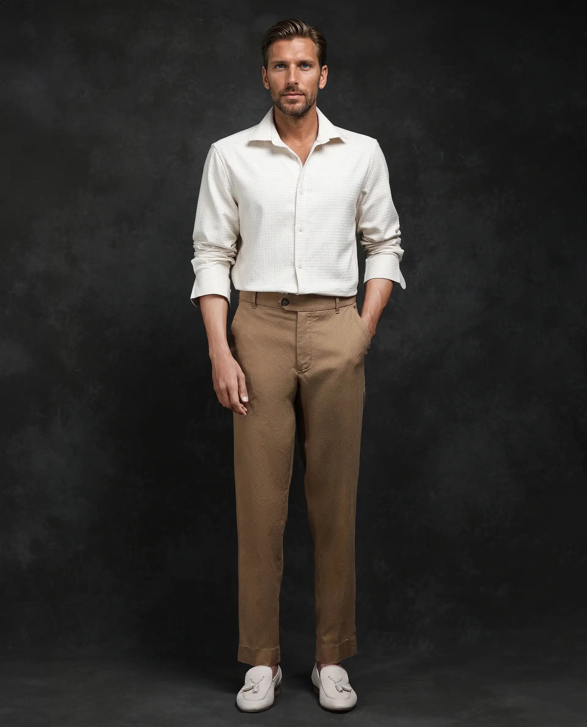 Upgrade your wardrobe with our Jacquard Trousers, crafted from premium Cotton Lycra fabric for a perfect blend of comfort and style. Designed for a sleek fit, these trousers feature a button and zip closure, ensuring a secure and polished look. Whether you're heading to a formal event or a stylish evening out, these trousers provide the ultimate sophistication with a touch of stretch for all-day ease. Pair them with a crisp shirt and loafers for an effortlessly dapper outfit.
