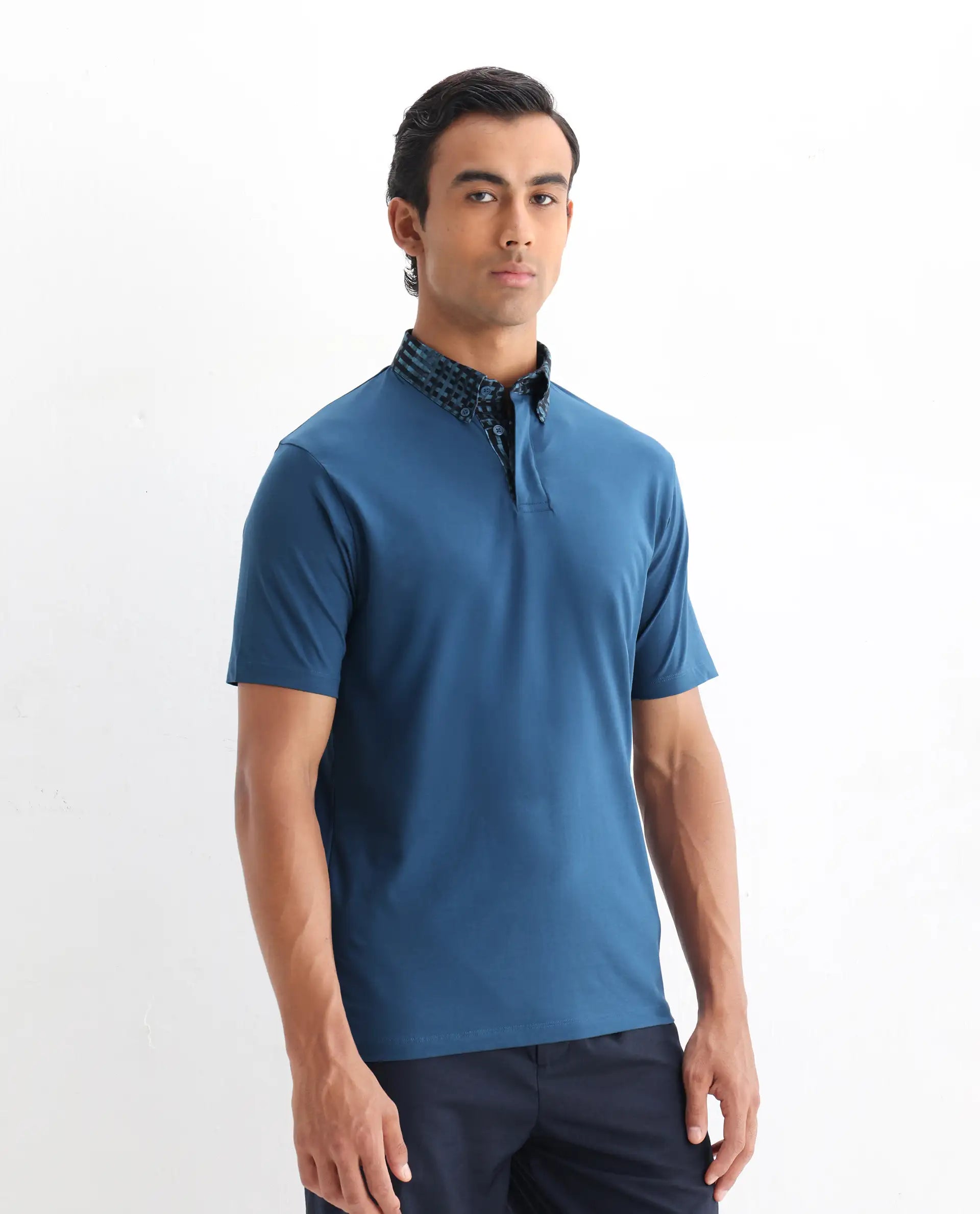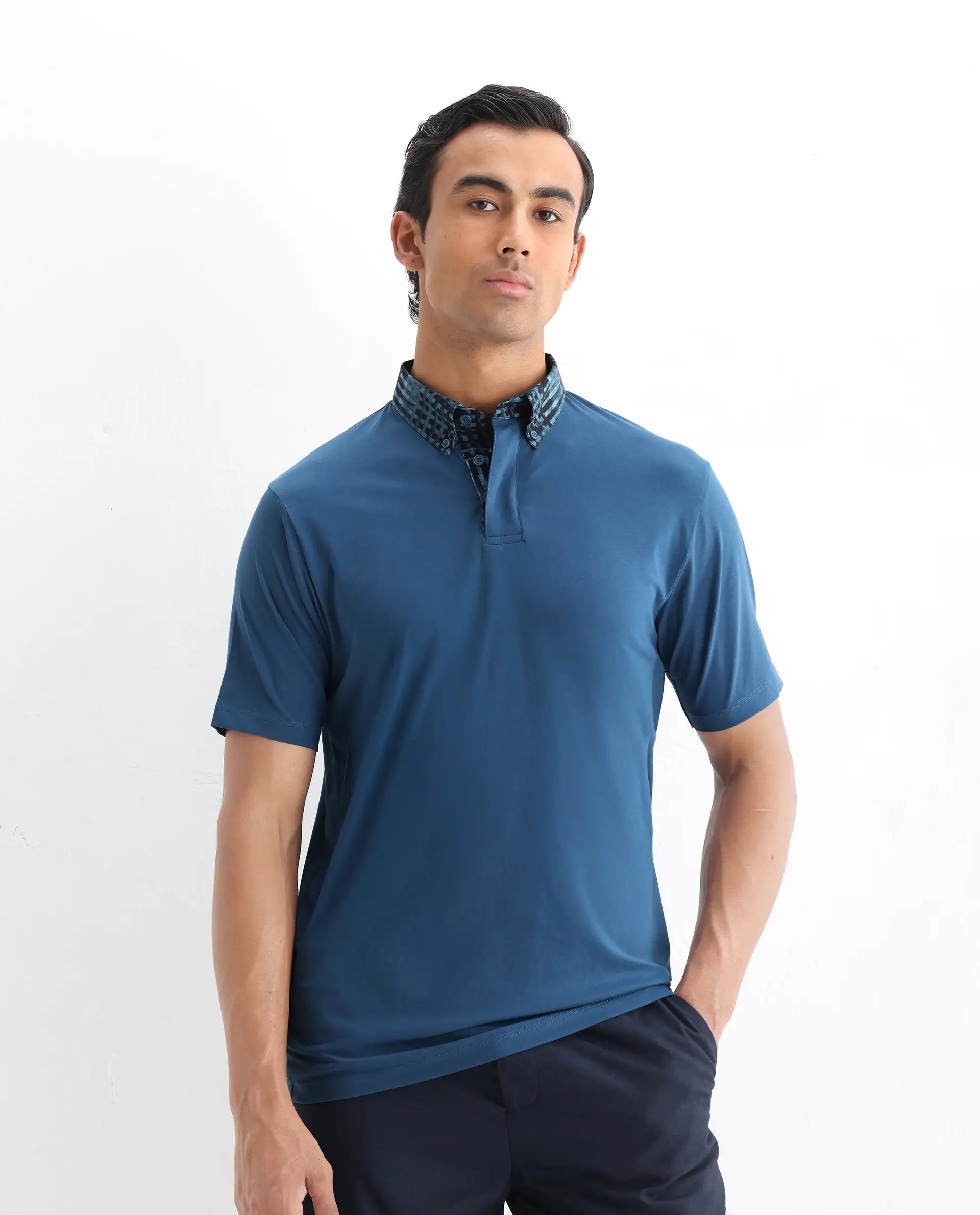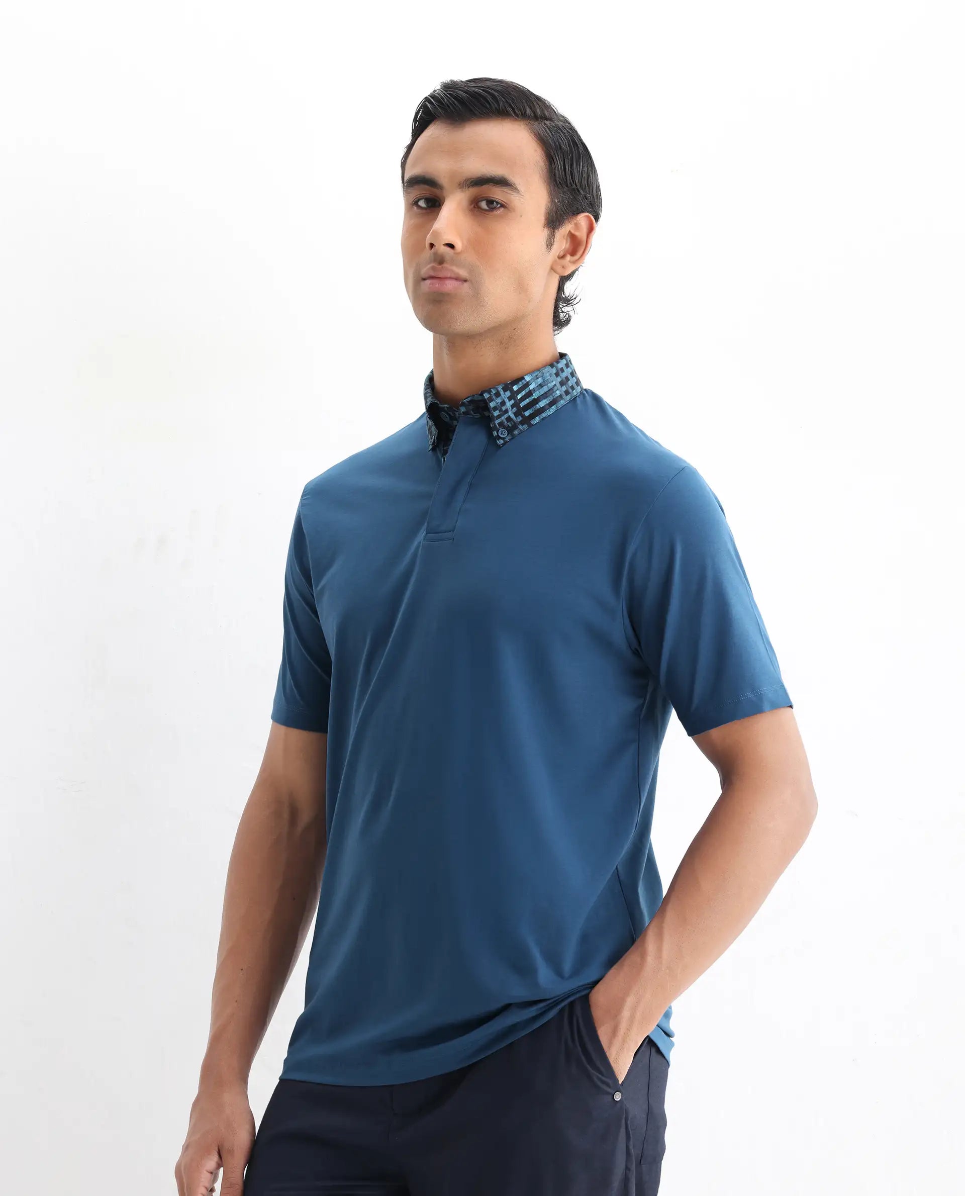 Elevate your wardrobe with our polo t-shirt, crafted from a premium cotton blend for ultimate comfort and style. This regular fit polo features a unique patterned collar, adding a touch of sophistication to your casual look. Perfect for any occasion, its versatile design pairs effortlessly with jeans or chinos. Experience the perfect blend of fashion and function with this must-have polo shirt. Shop now to enhance your collection with this timeless piece.