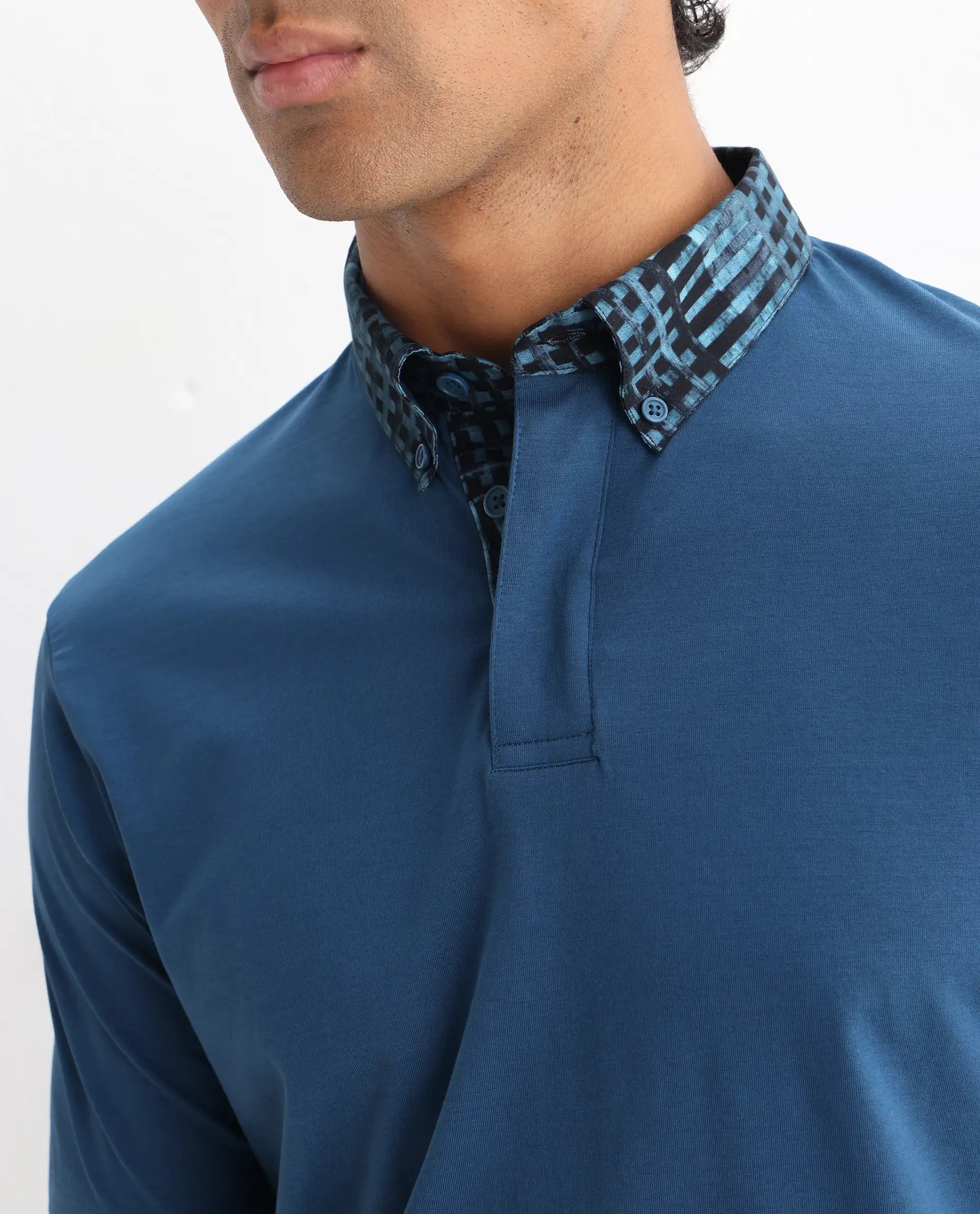 PRINTED COLLAR PLAIN POLO