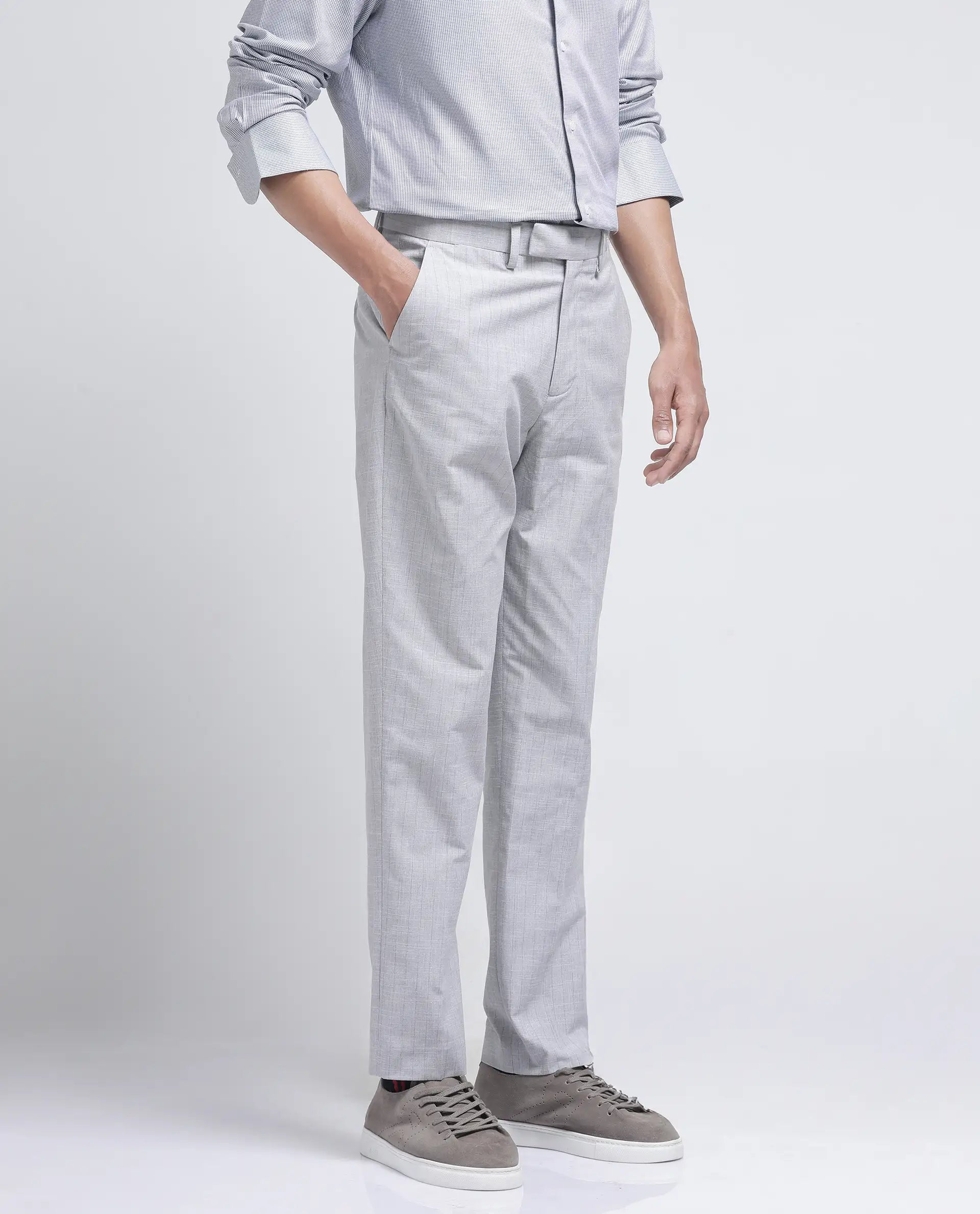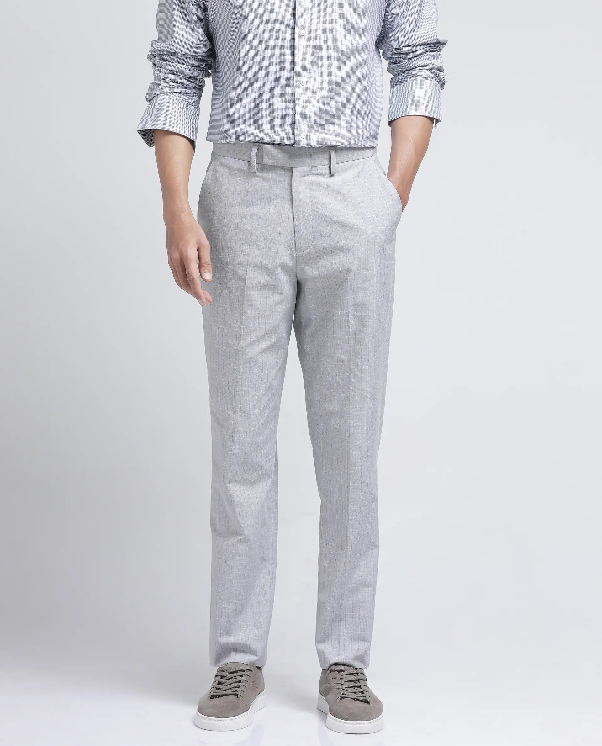 Rare Rabbit Men Zimba Grey Polyester Blend Straight Fit Formal Striped Trouser