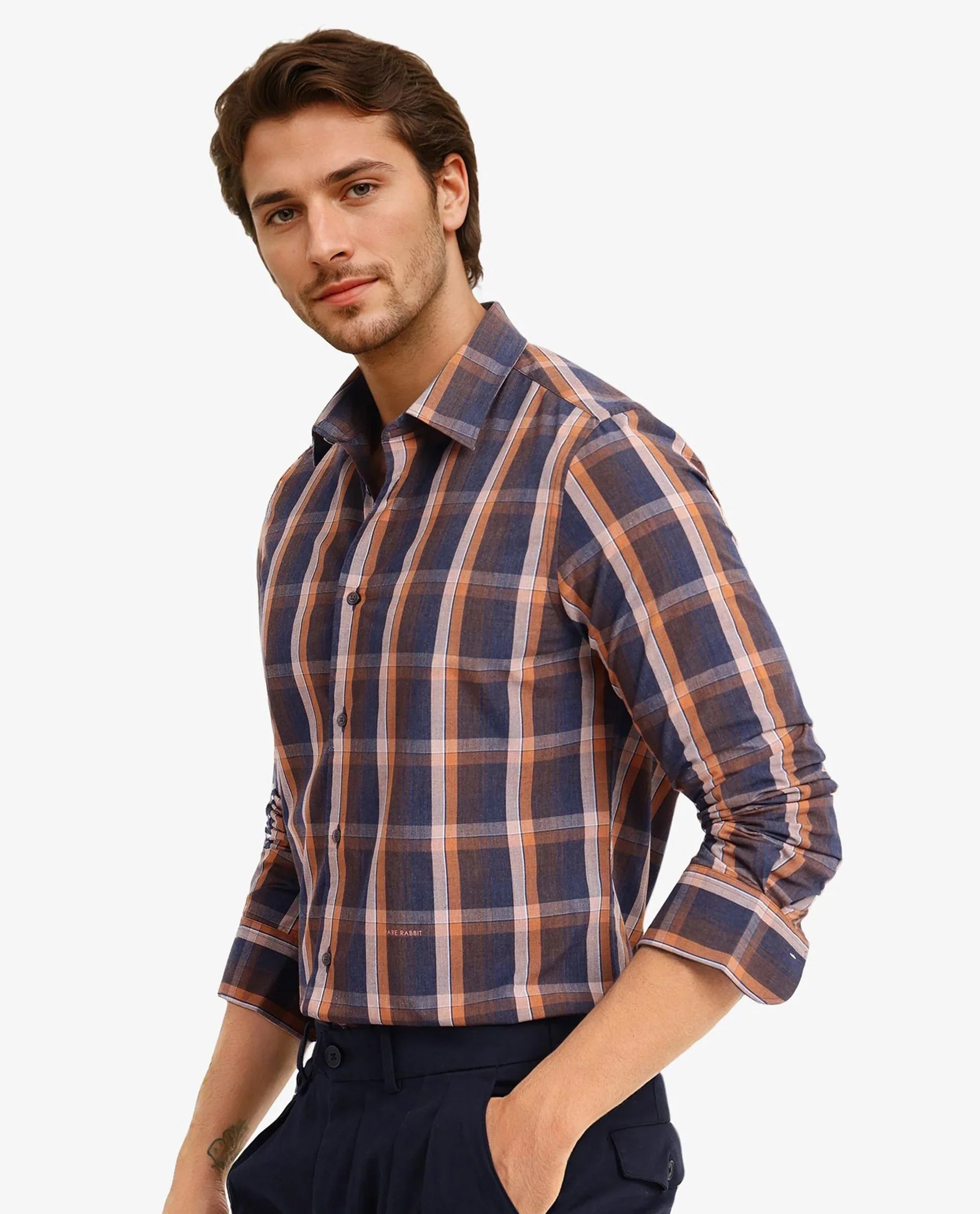 Rare Rabbit Men Bou Navy Cotton Polyester Fabric Full Sleeve Collared Neck Button Closure Regular Fit Checks Shirt