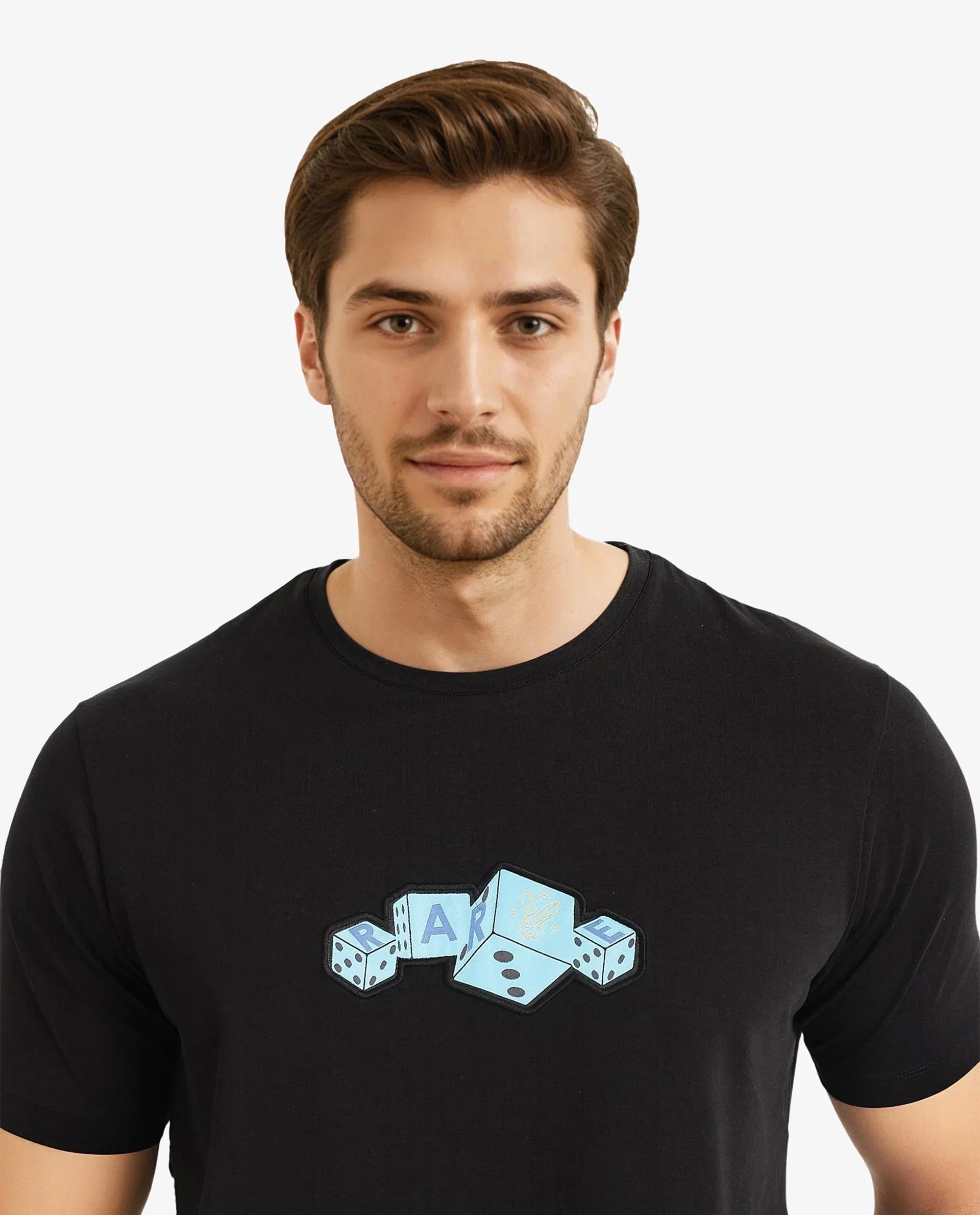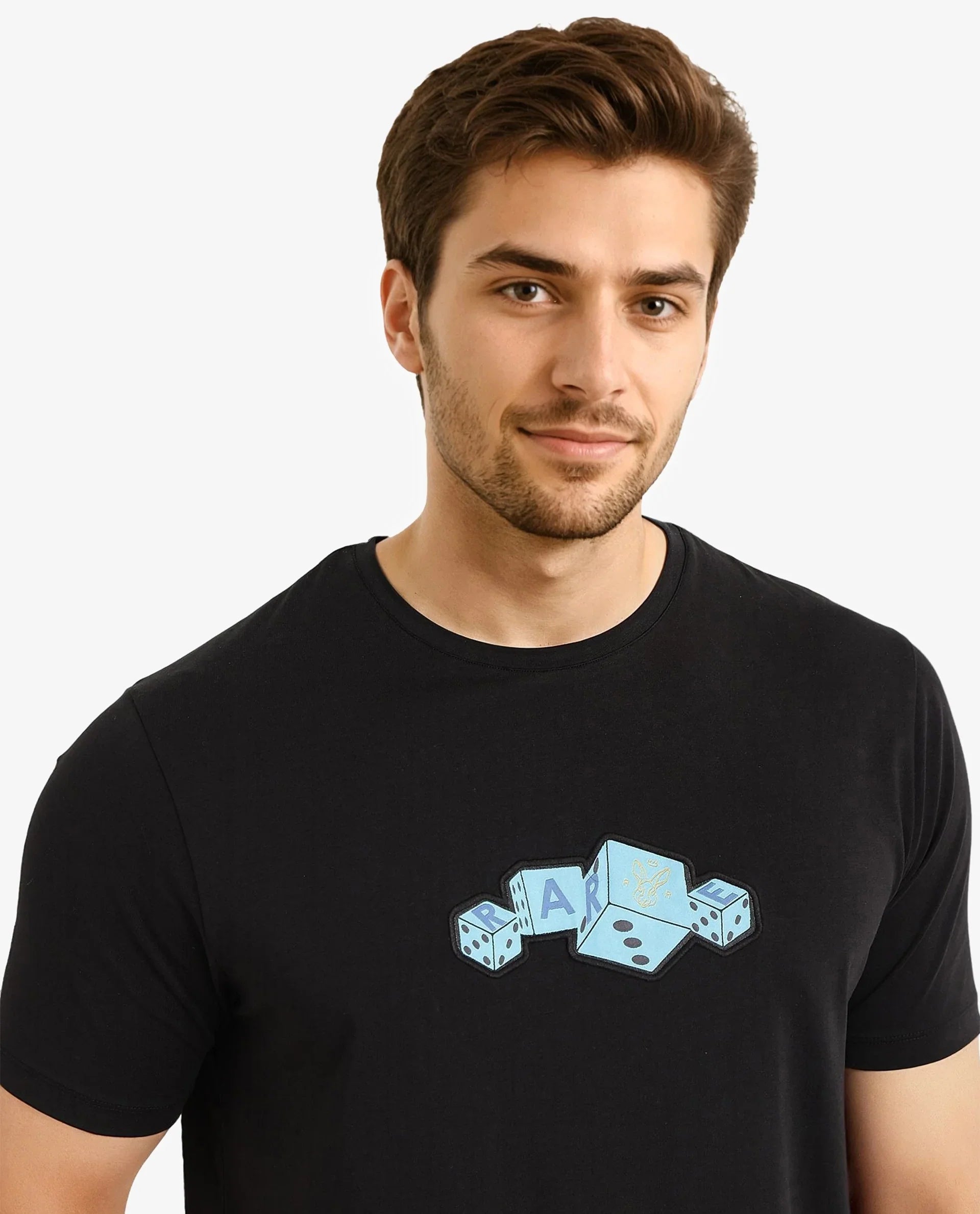 Roll the Dice on Style: Dice and Brand Graphic Tee. Elevate your casual wear with our unique graphic t-shirt. Crafted from a soft and stretchy cotton lycra blend, this regular-fit tee offers exceptional comfort and freedom of movement. The standout feature is the captivating dice graphic, featuring the word "rare" and your brand logo incorporated into the design. This playful yet sophisticated print adds a touch of personality to any outfit.