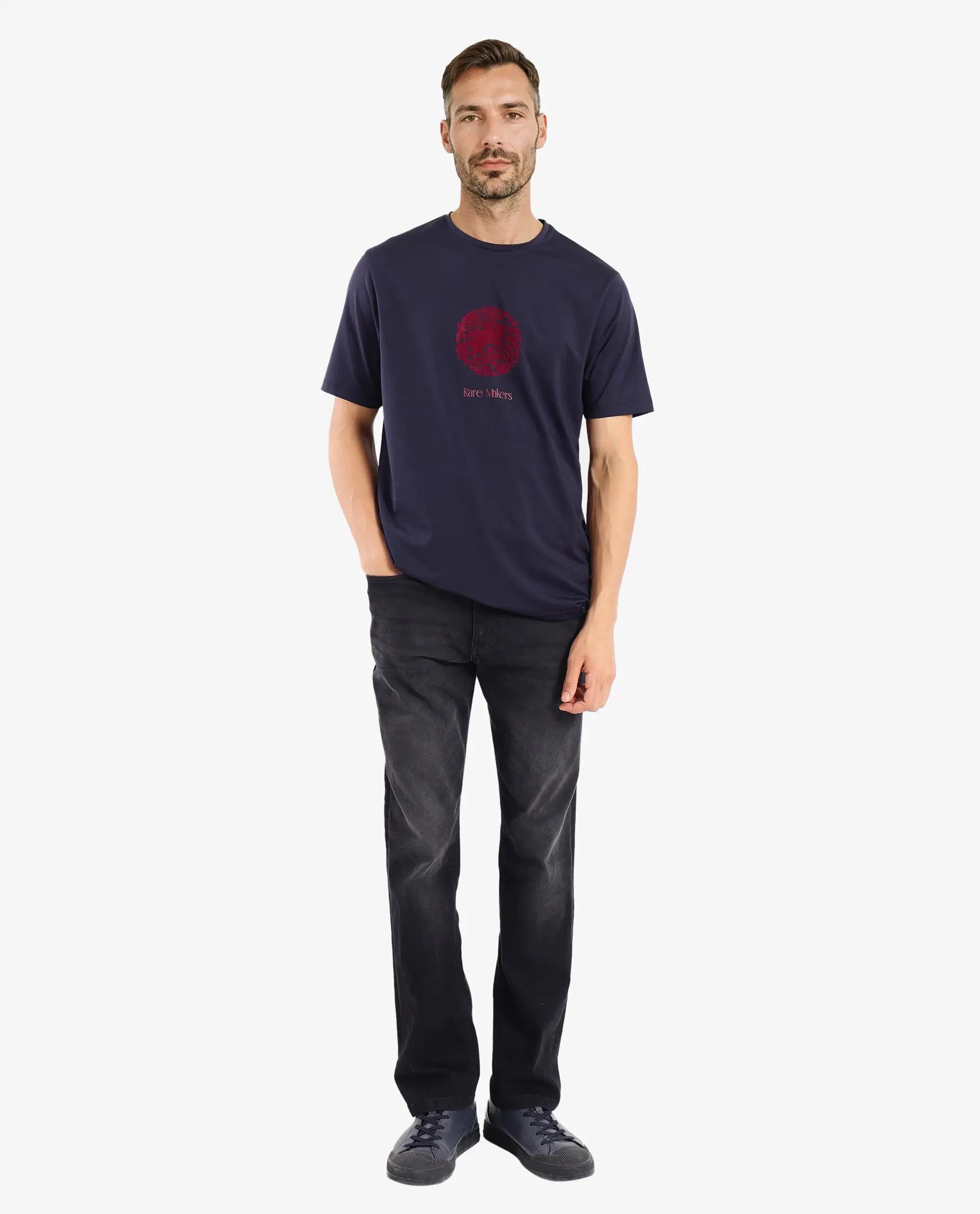 Rare Rabbit Men Make Navy Short Sleeve Crew Neck Regular Fit Graphic Print T-Shirt