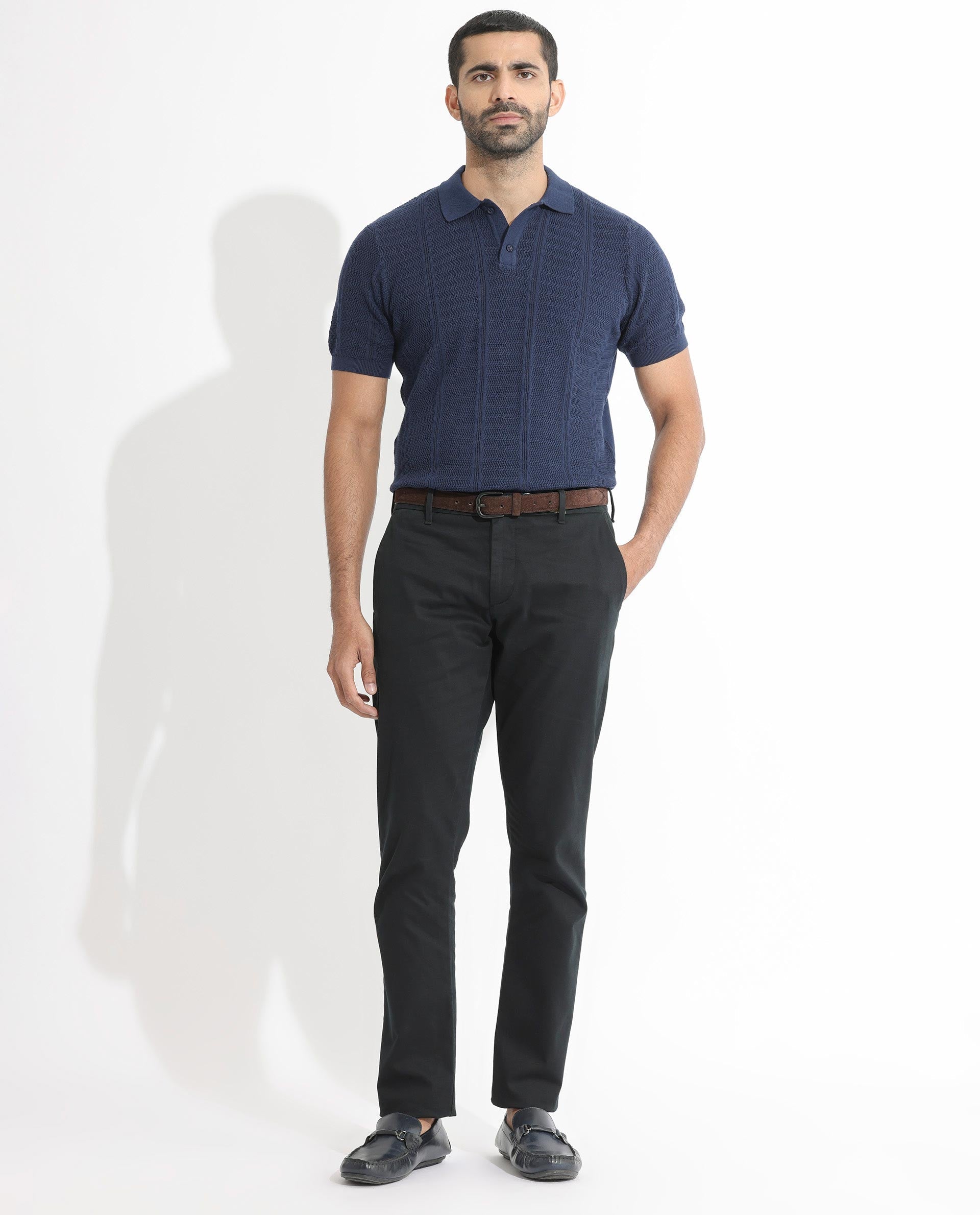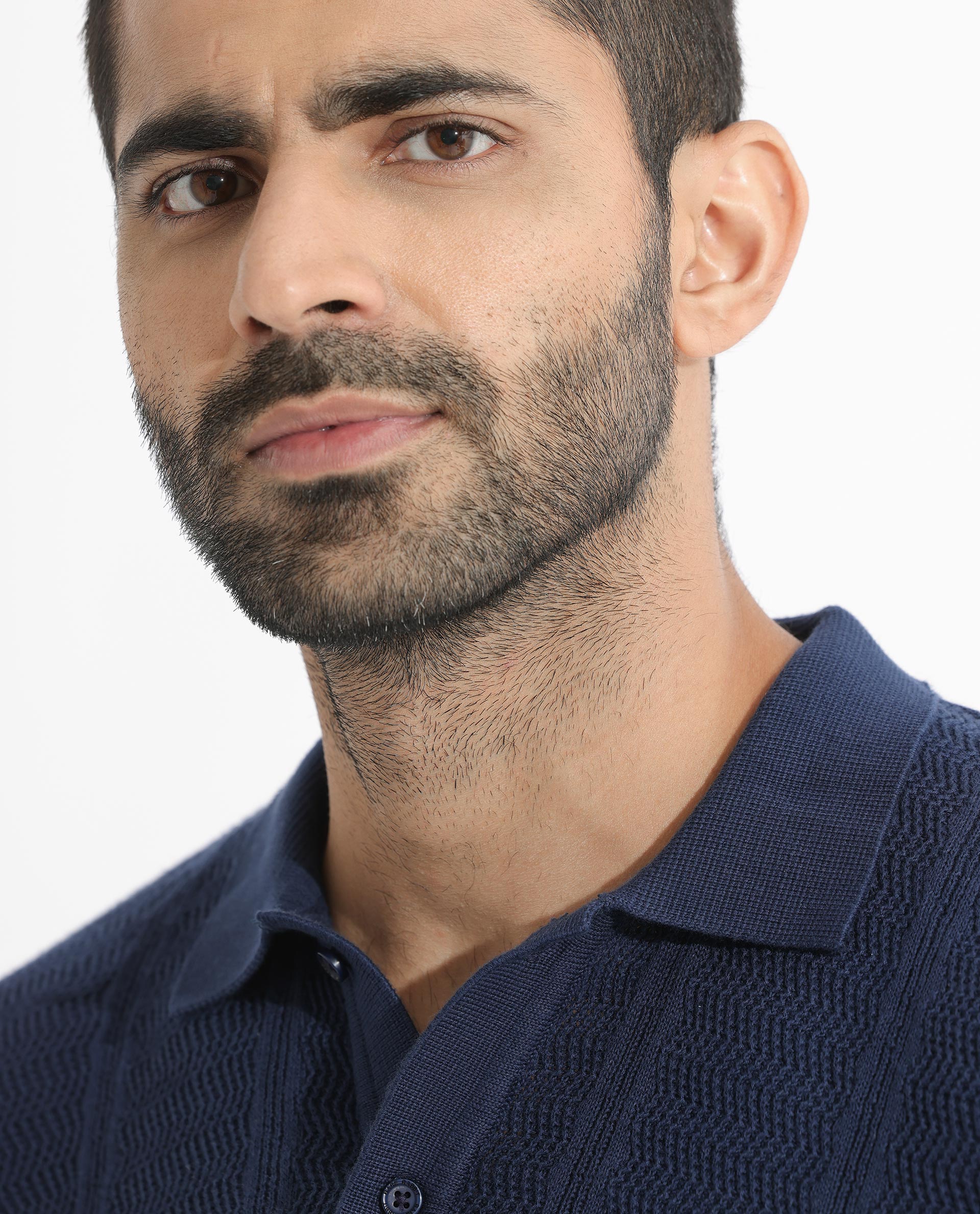 Discover the ultimate in casual elegance with our textured flat knit polo. Crafted from premium cotton, this half-sleeve polo offers a regular fit that ensures comfort and style. Featuring a classic spread collar and button closure, it's perfect for any casual occasion. The unique textured design adds a touch of sophistication, making it a versatile addition to your wardrobe. Ideal for pairing with jeans or chinos, this polo is a must-have for those who appreciate quality and style. Elevate your everyday look with this timeless piece. Shop now and experience the perfect blend of comfort and fashion.