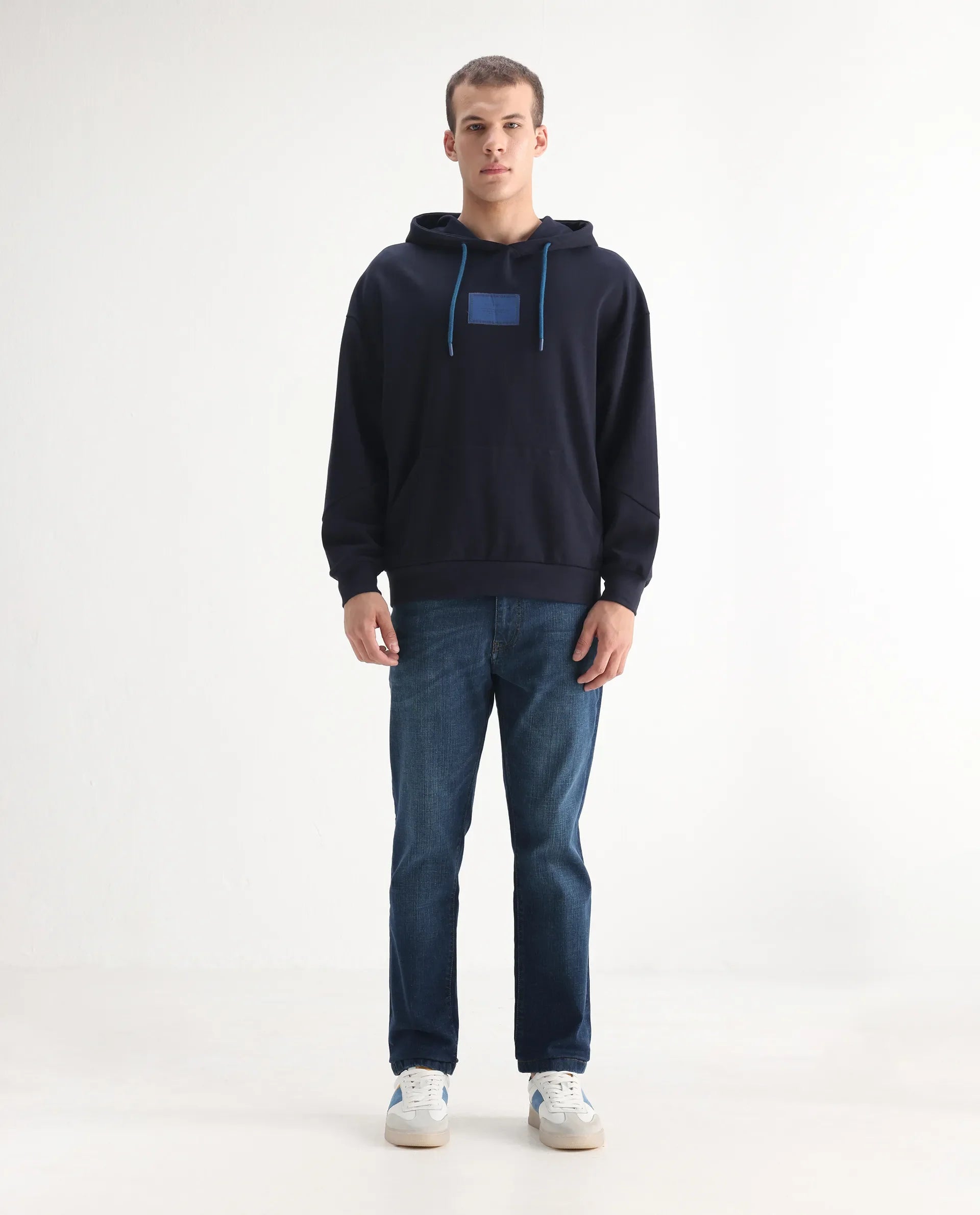 Rare Rabbit Men Axel Blue Cotton Blend Fabric Mid Rise Button and Zip Closure Mid Wash Plain Jeans