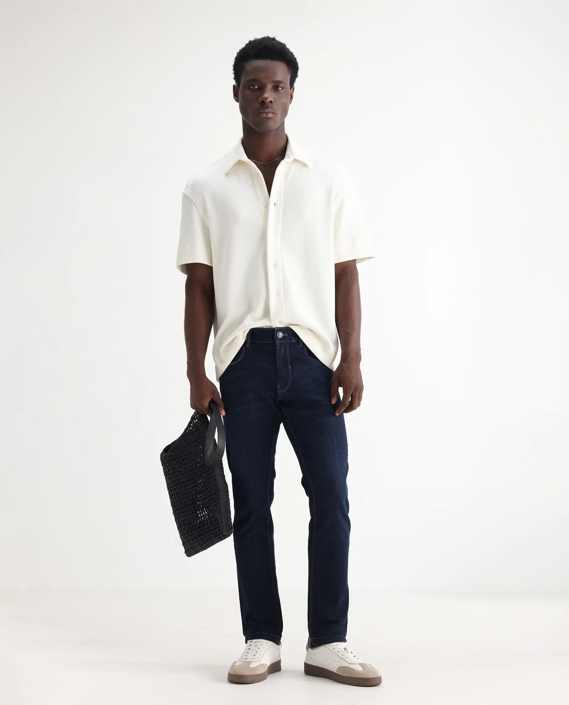 Discover the ultimate in style and comfort with our slim fit denim jeans, perfect for any casual occasion. Crafted from a premium cotton blend fabric, these jeans offer a perfect balance of durability and breathability. The button and zip closure ensures a secure fit, while the dark wash adds a touch of sophistication to your wardrobe. Ideal for everyday wear, these plain jeans are designed to complement any outfit, making them a versatile addition to your collection. Whether you're heading out for a casual day or a night out, these jeans provide a sleek and modern look. Elevate your fashion game with these must-have slim fit jeans, designed for those who appreciate quality and style.