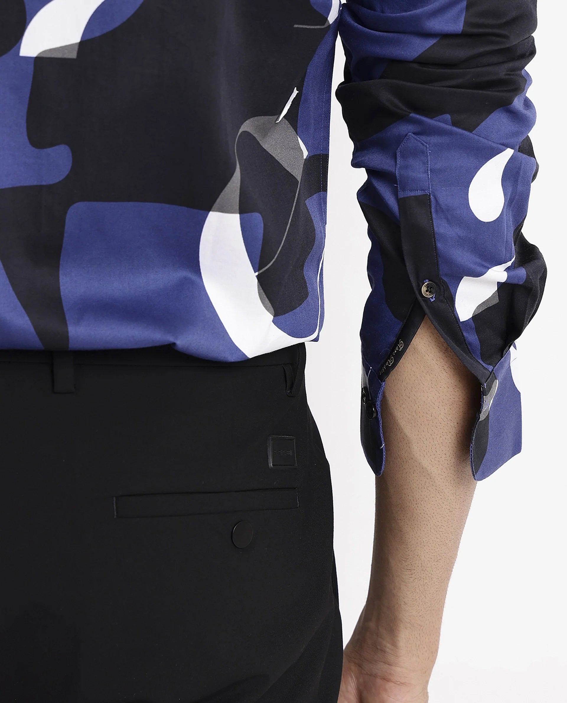 Rare Rabbit Men's Canton Blue Full Sleeves Abstract Print Statement Shirt