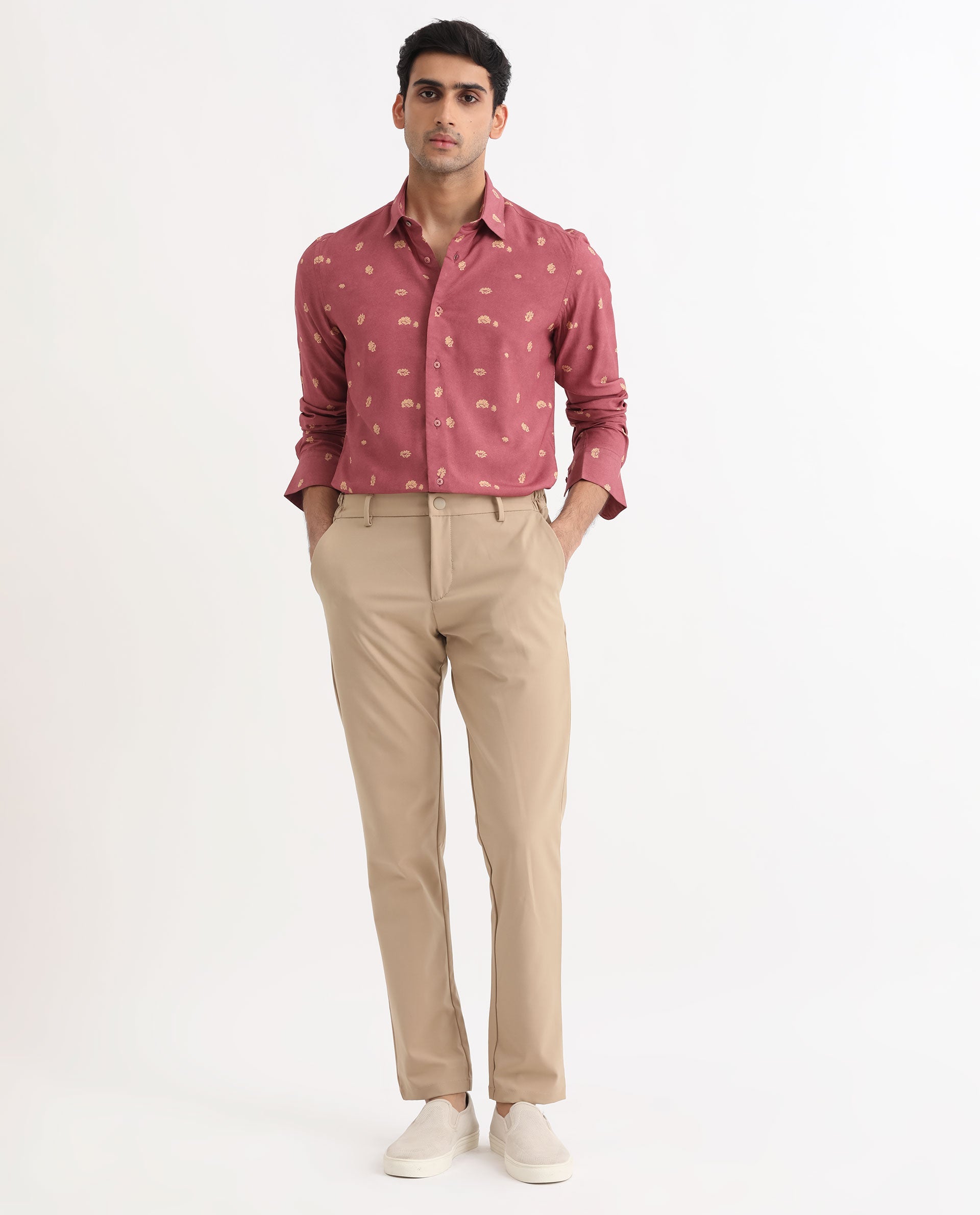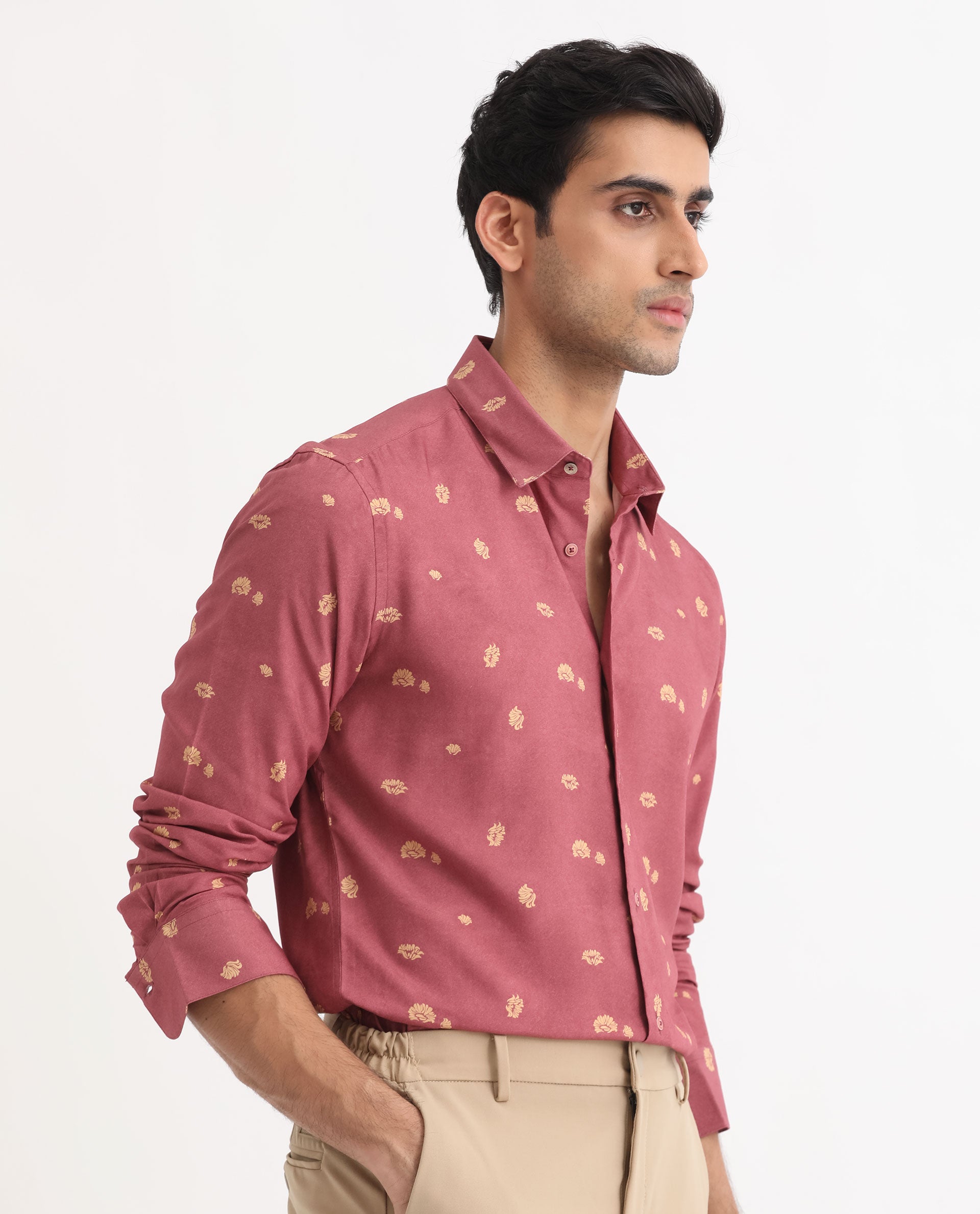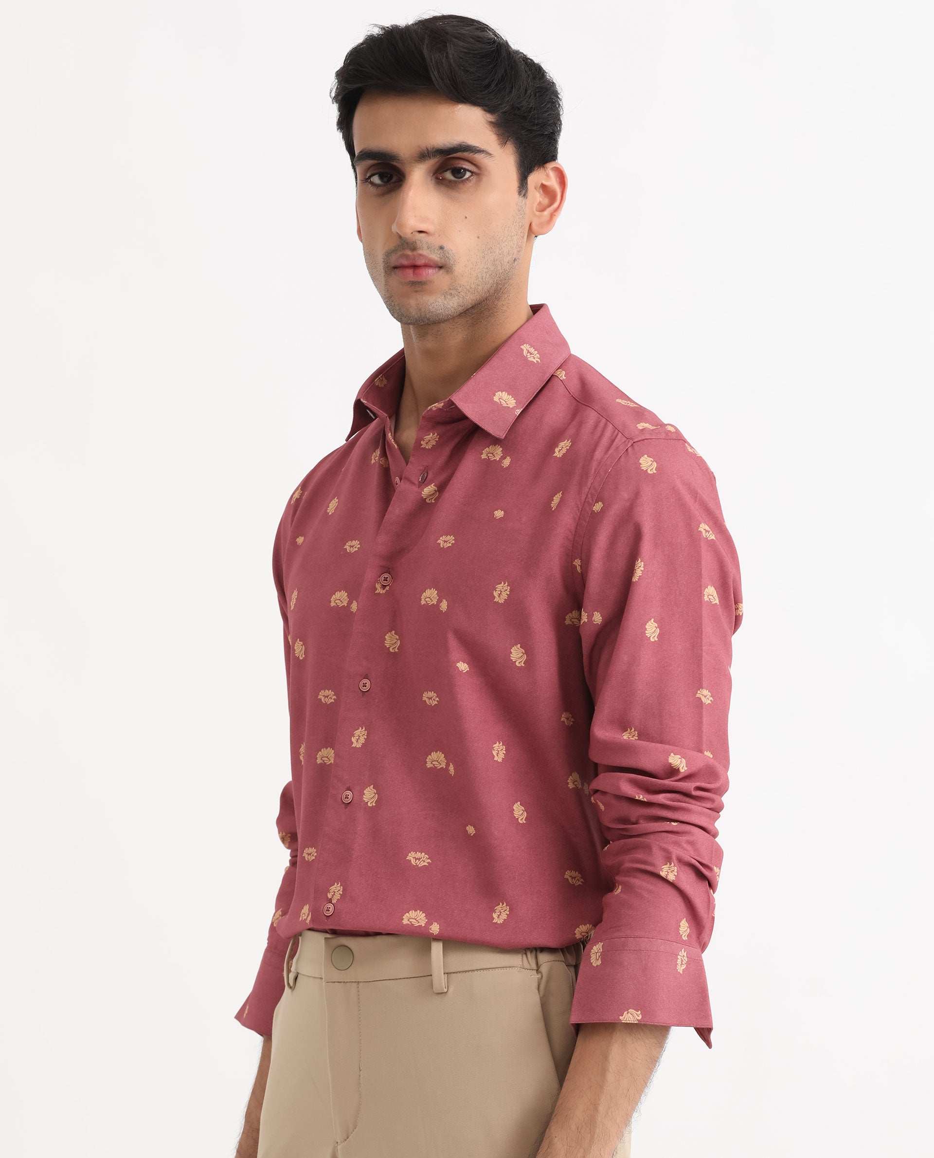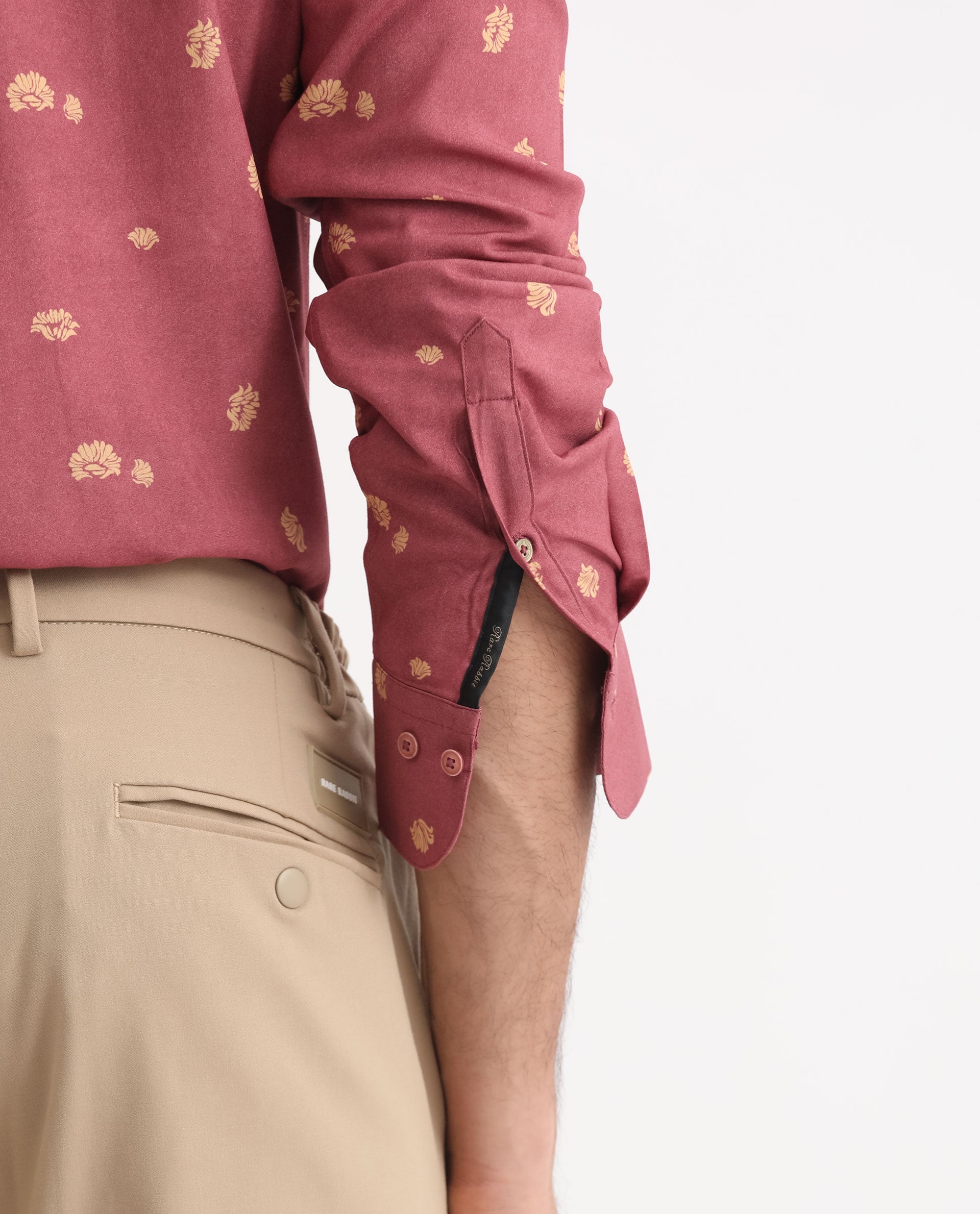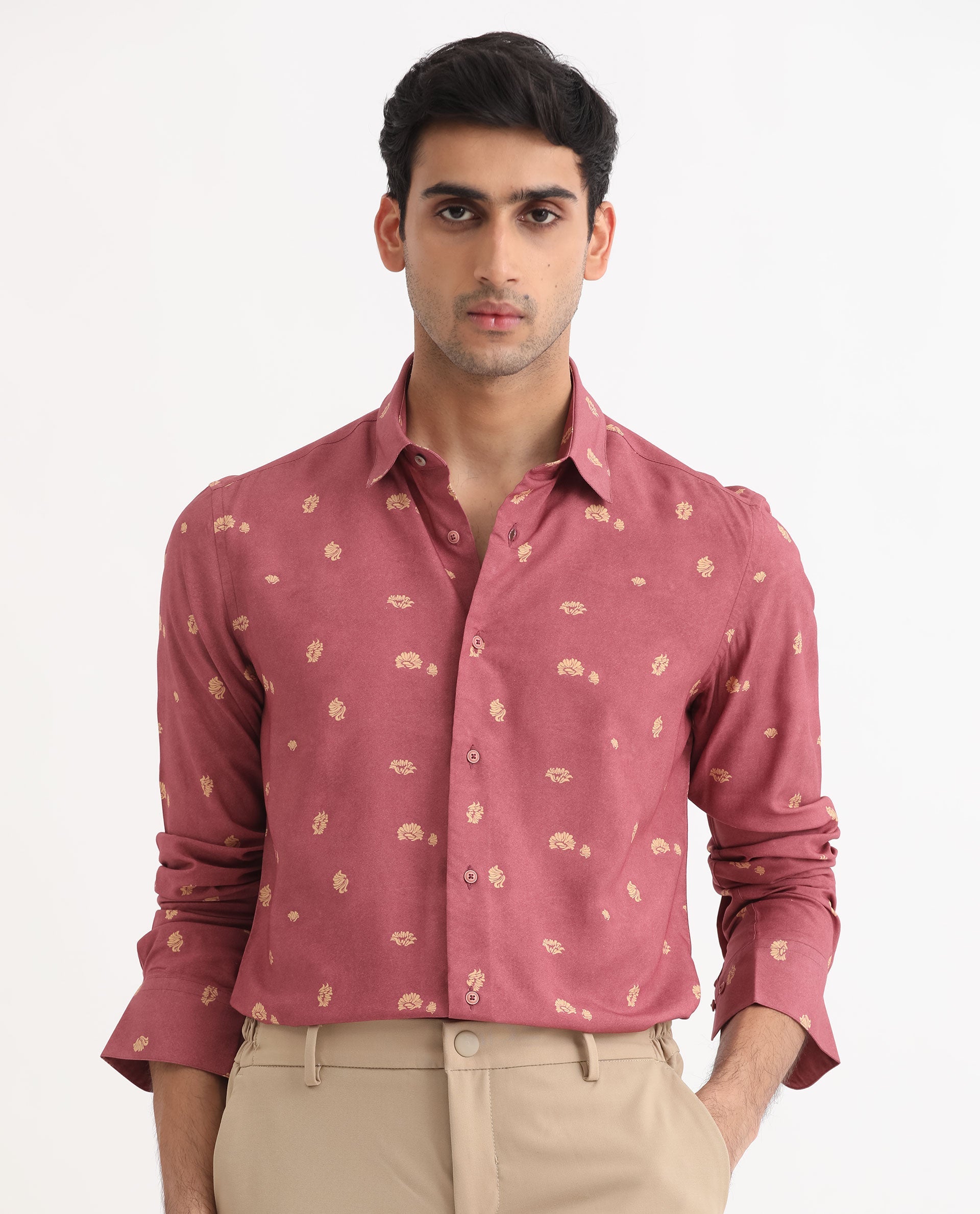 Rare Rabbit Embodee Dark Red Viscose Fabric Floral Print Full Sleeves Shirt