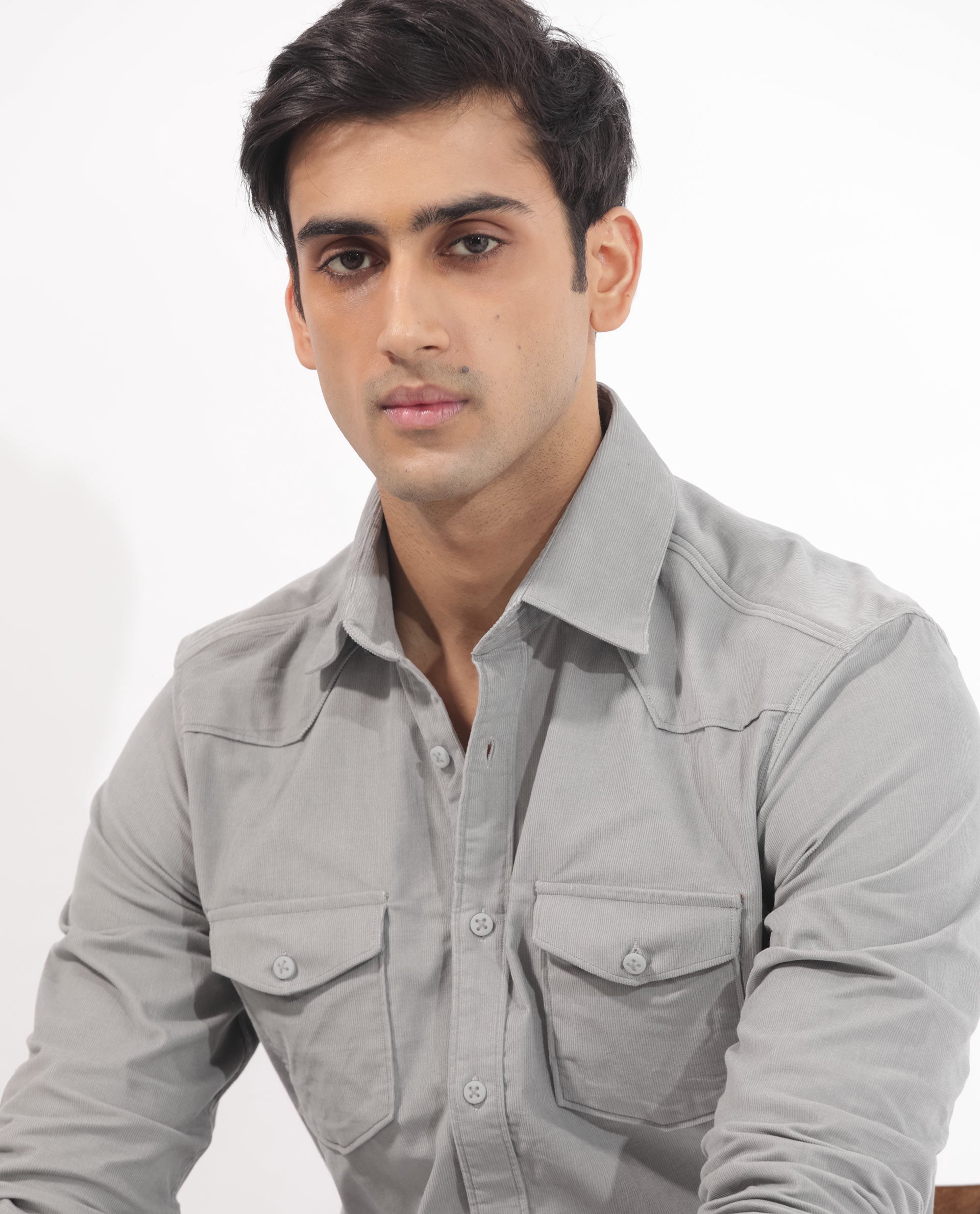 Rare Rabbit Men's Halle Grey Cotton Fabric Full Sleeves Corduroy Shirt