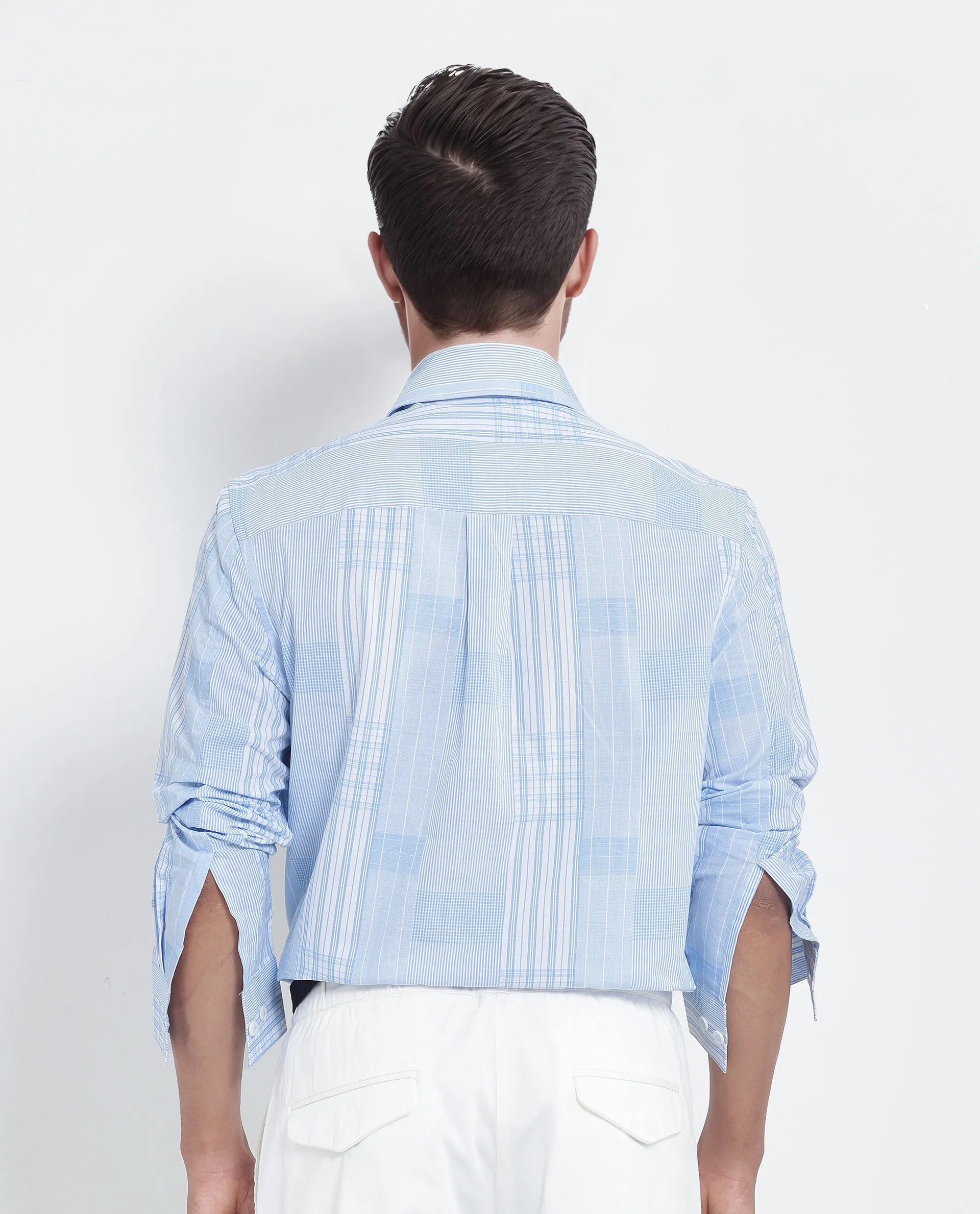 Discover timeless style with our Regular Fit Checks Shirt, featuring a classic spread collar and full sleeves. Crafted from premium cotton, this shirt offers comfort and breathability, perfect for any occasion. The light blue check pattern adds a touch of sophistication, making it a versatile addition to your wardrobe. Ideal for both formal and casual settings, pair it with tailored trousers or jeans for a polished look. Elevate your fashion game with this must-have piece.