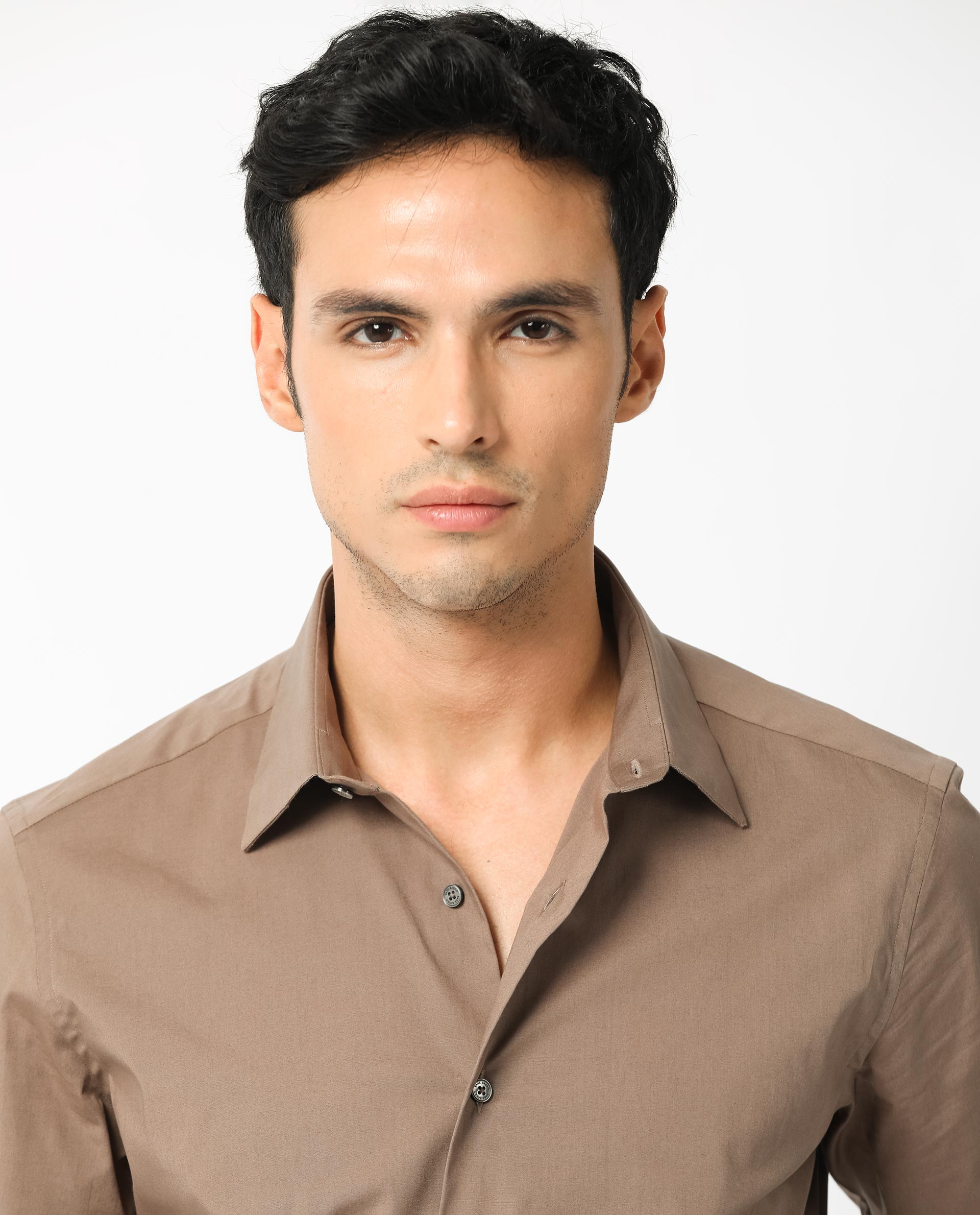 Rare Rabbit Men's Neutonss Brown Full Sleeve Collared Neck Regular Fit Plain Formal Shirt