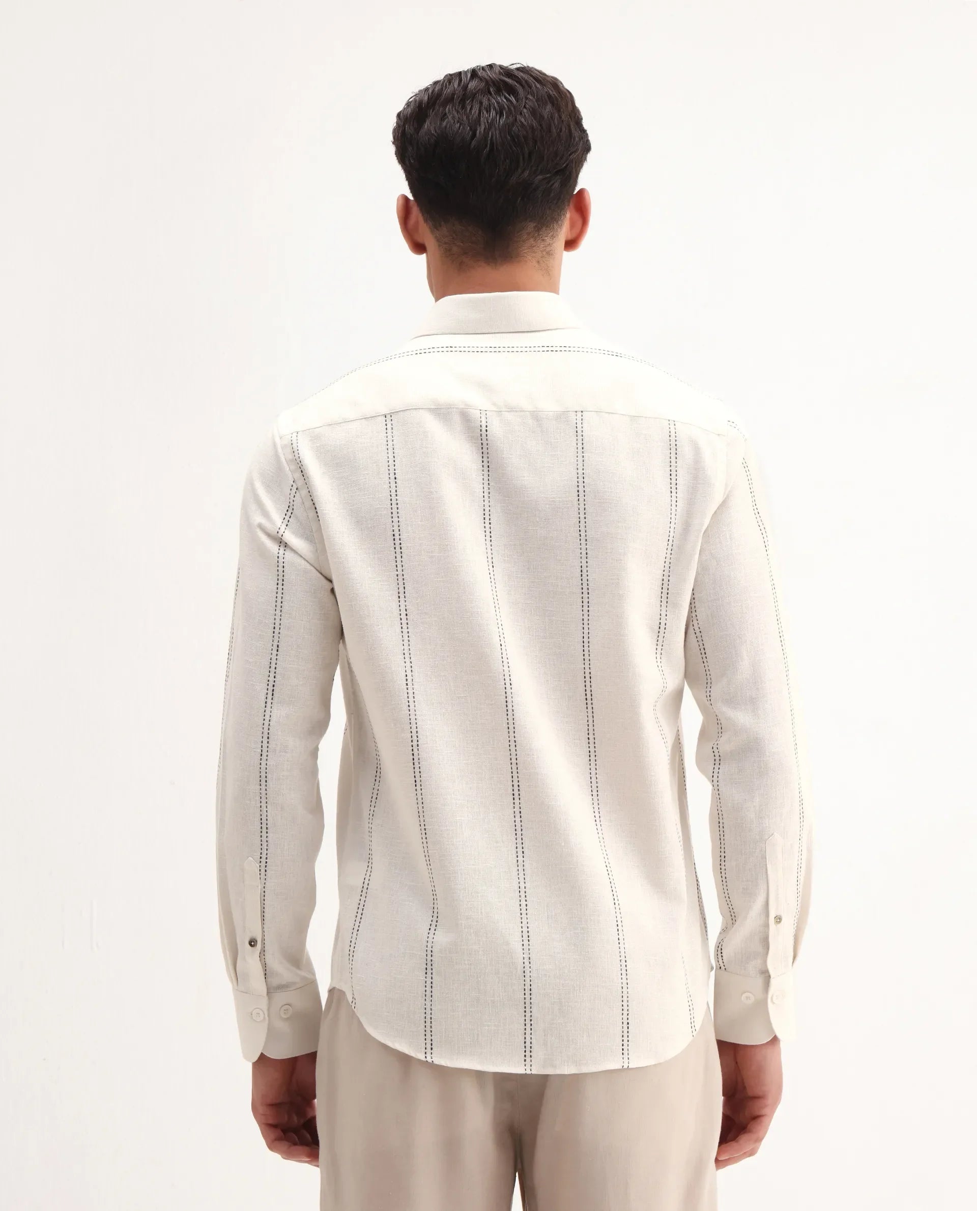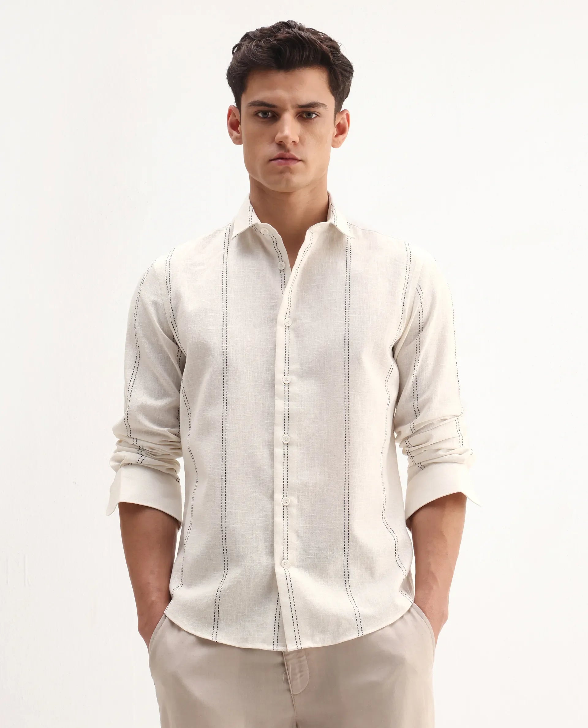 Rare Rabbit Men's Riog White Poly Blend Fabric Full Sleeve Collared Neck Striped Shirt