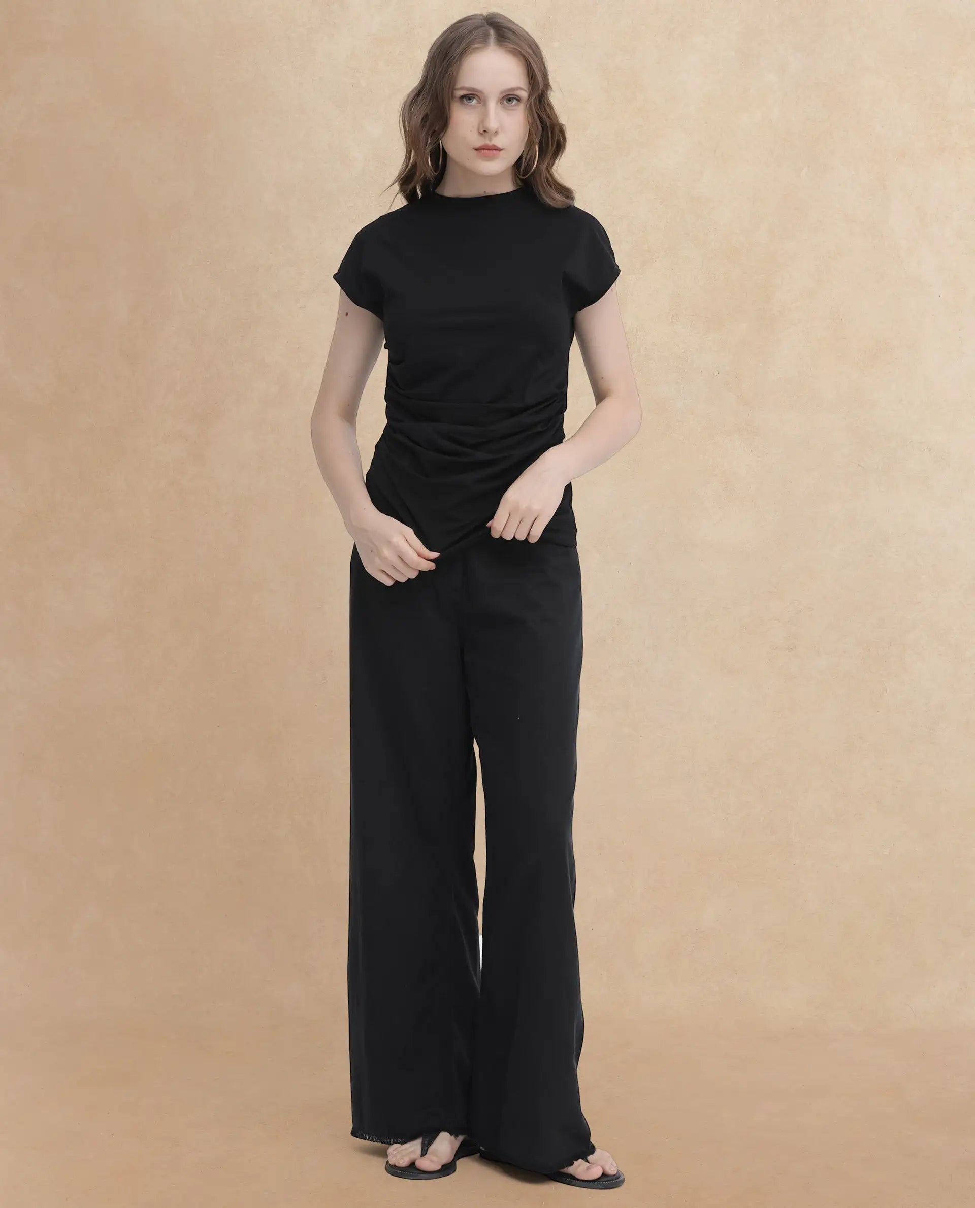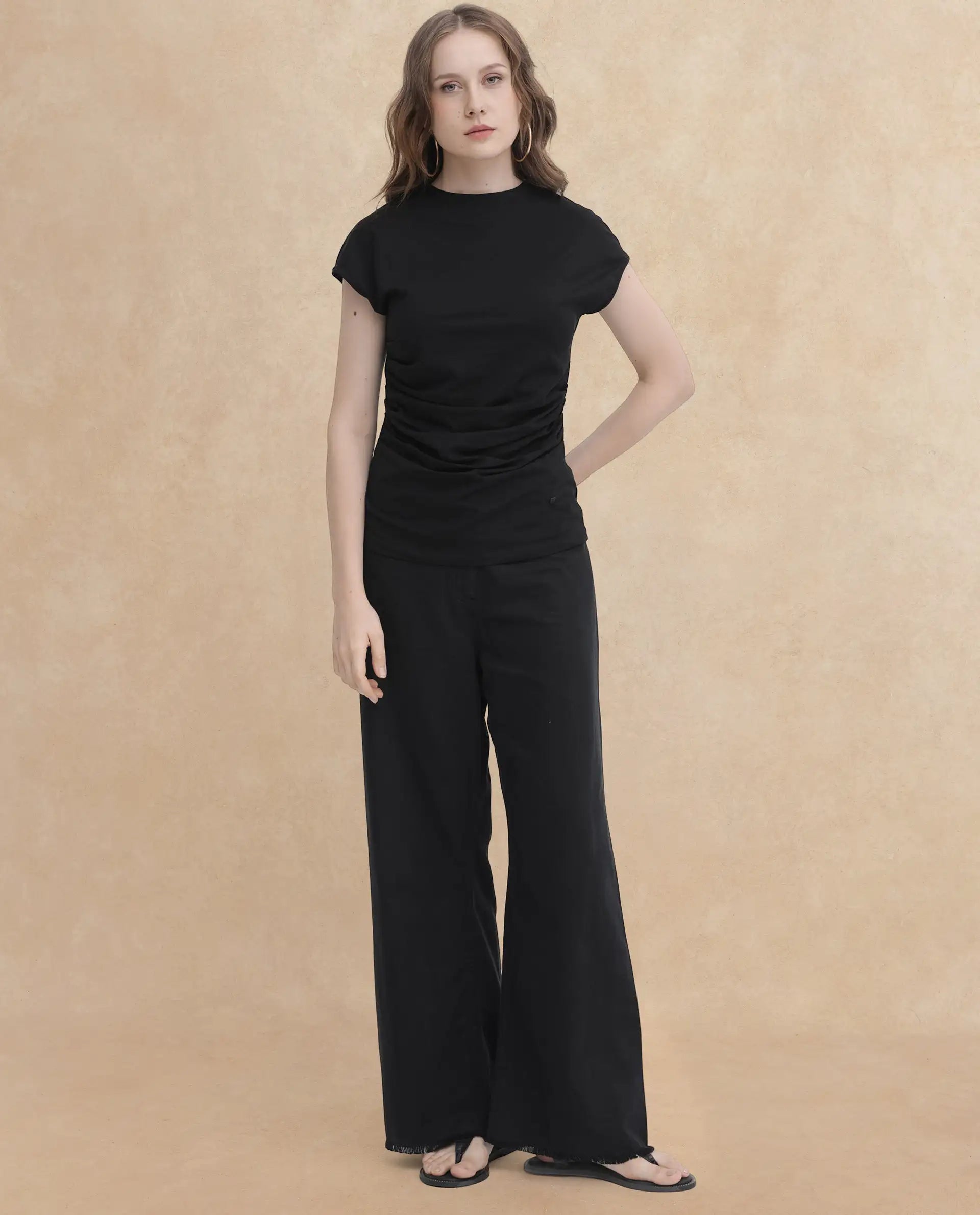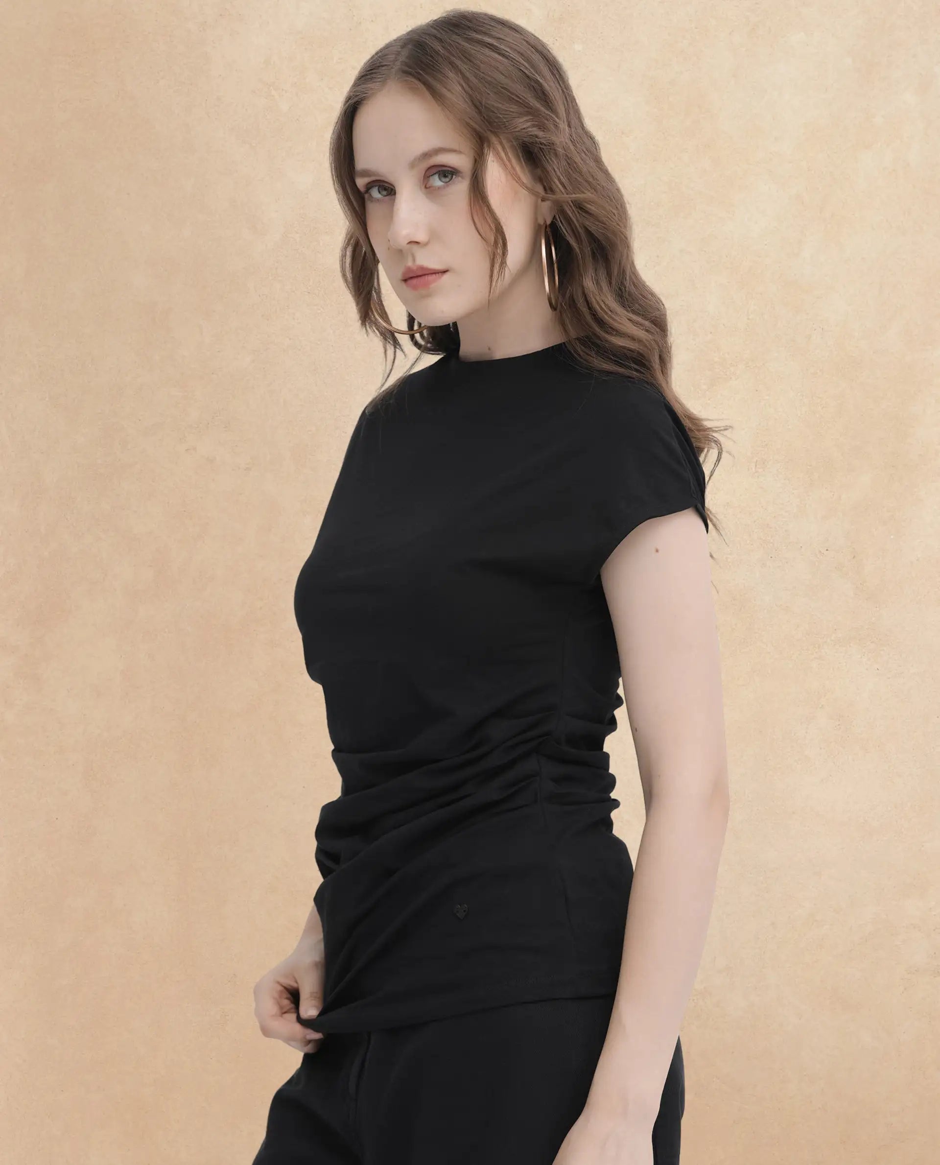 Rareism Womens Granden Black Top Sleeveless Crew Neck Solid