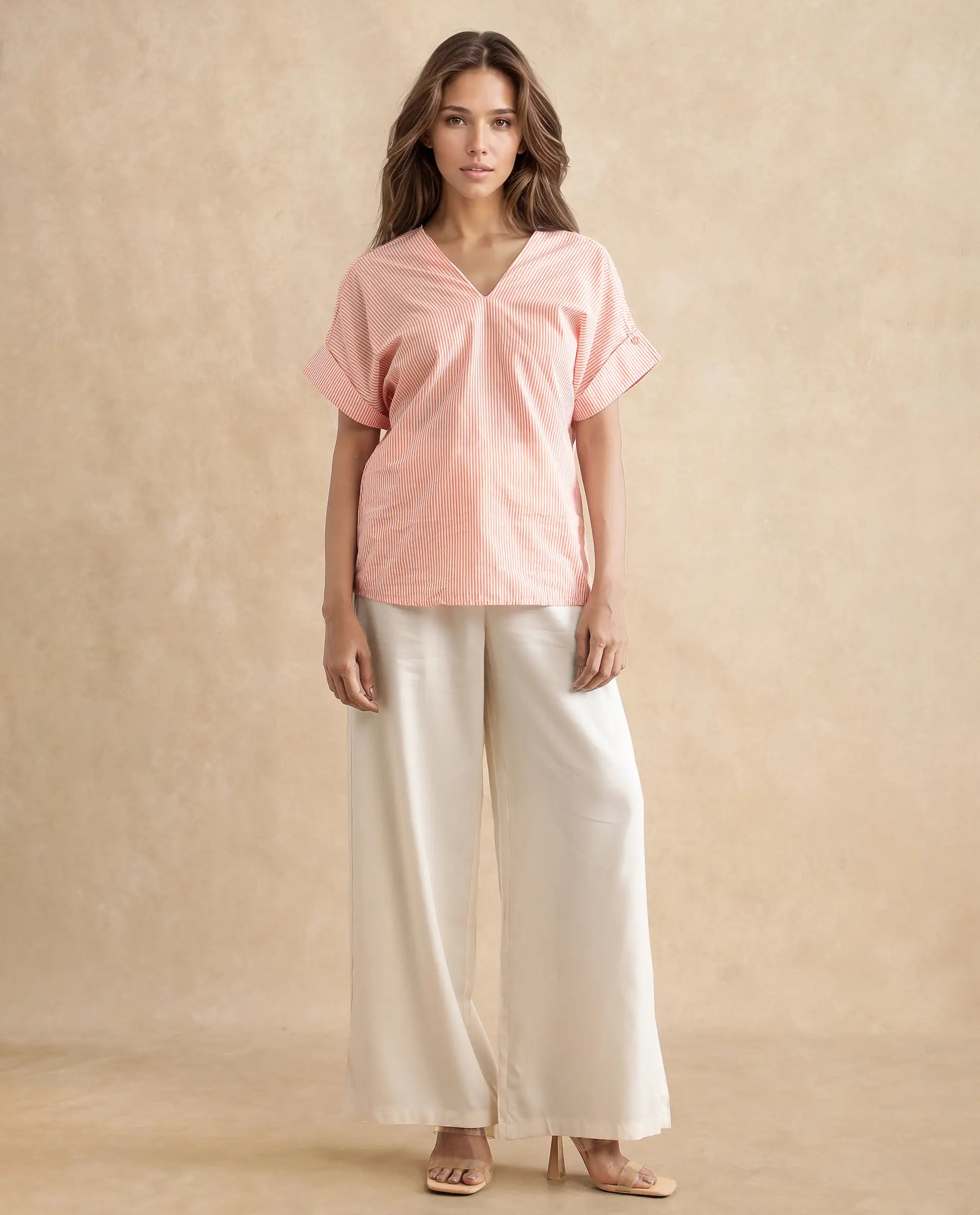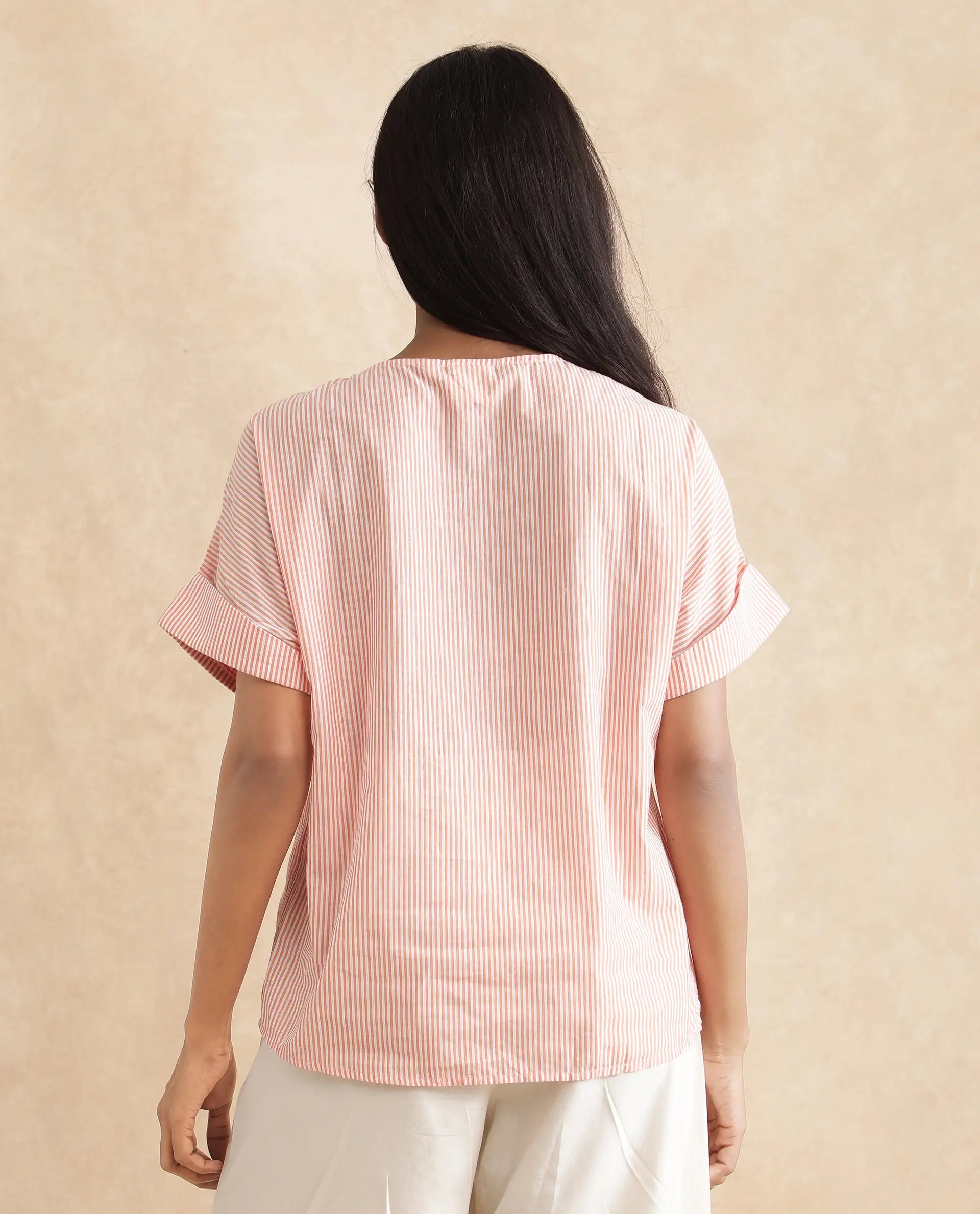 2. Stylish Stripes: The classic striped pattern adds a timeless and sophisticated touch, elevating the overall look of the top.